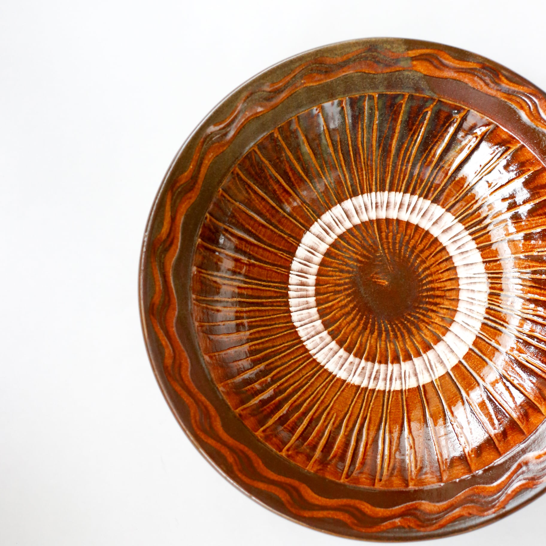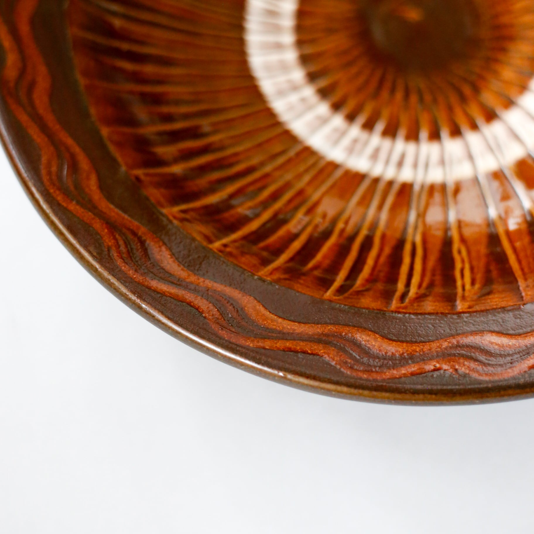 小鹿田焼 - 尺皿 刷毛目 × 櫛描き / 飴 (made in Japan)
