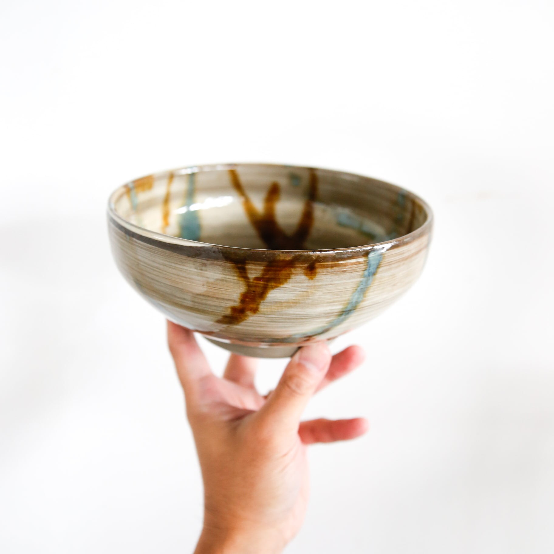 小鹿田焼 - 6寸丸鉢 打ち掛け / 白 (made in Japan)