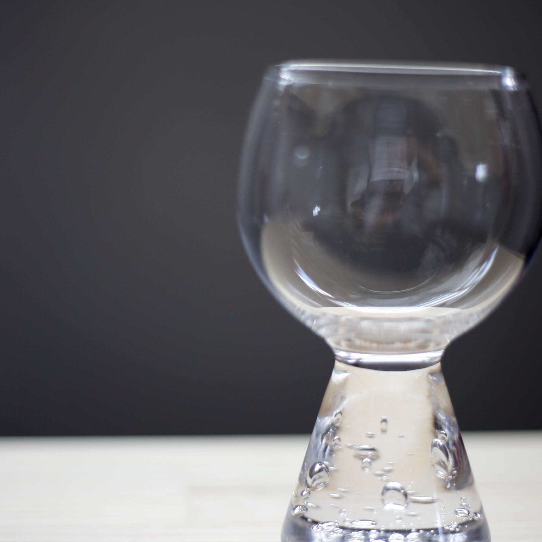 どっしりとしたステム(脚)には意図的に気泡を閉じ込めた
