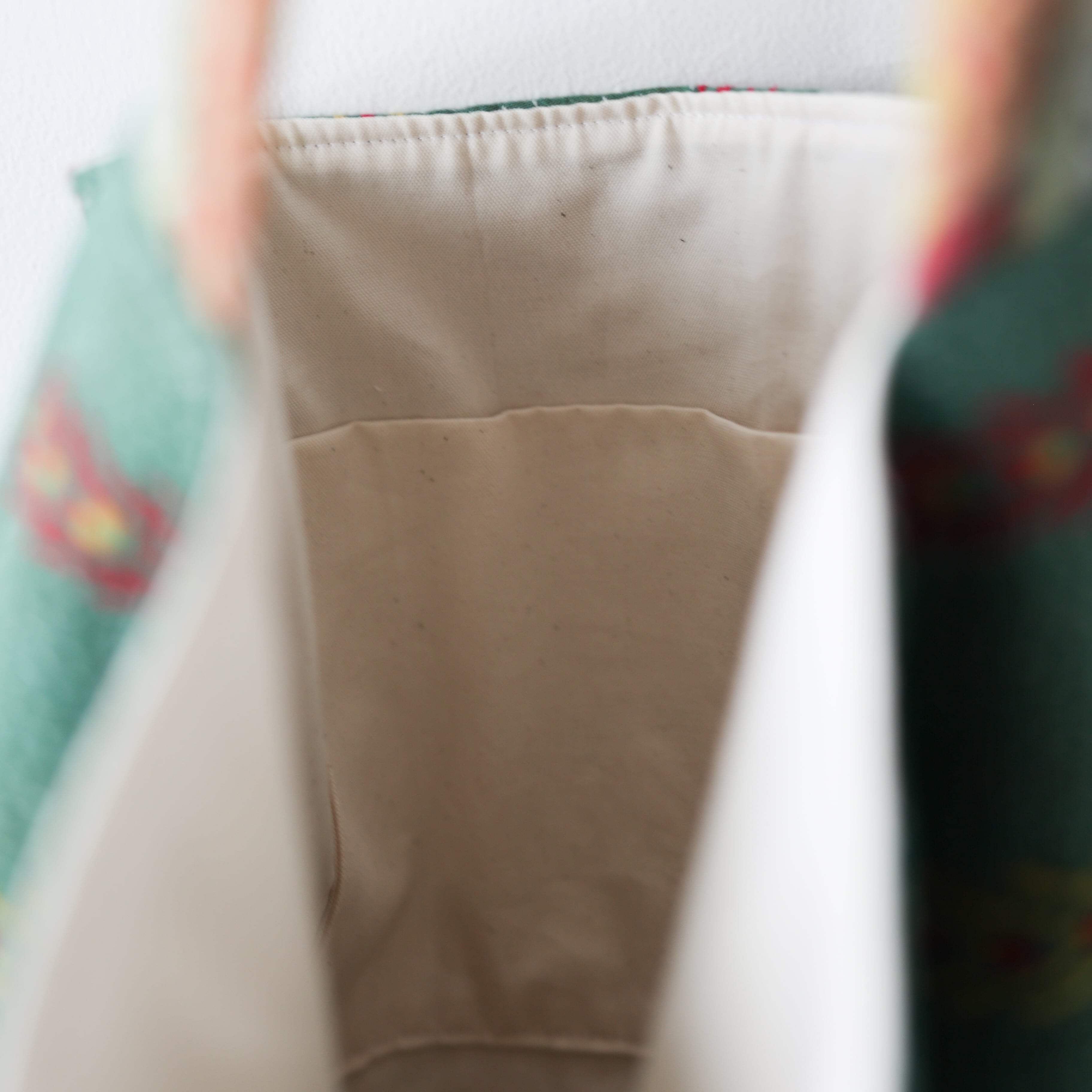 素晴らしいファブリックを用いて制作されたショルダーバッグ
