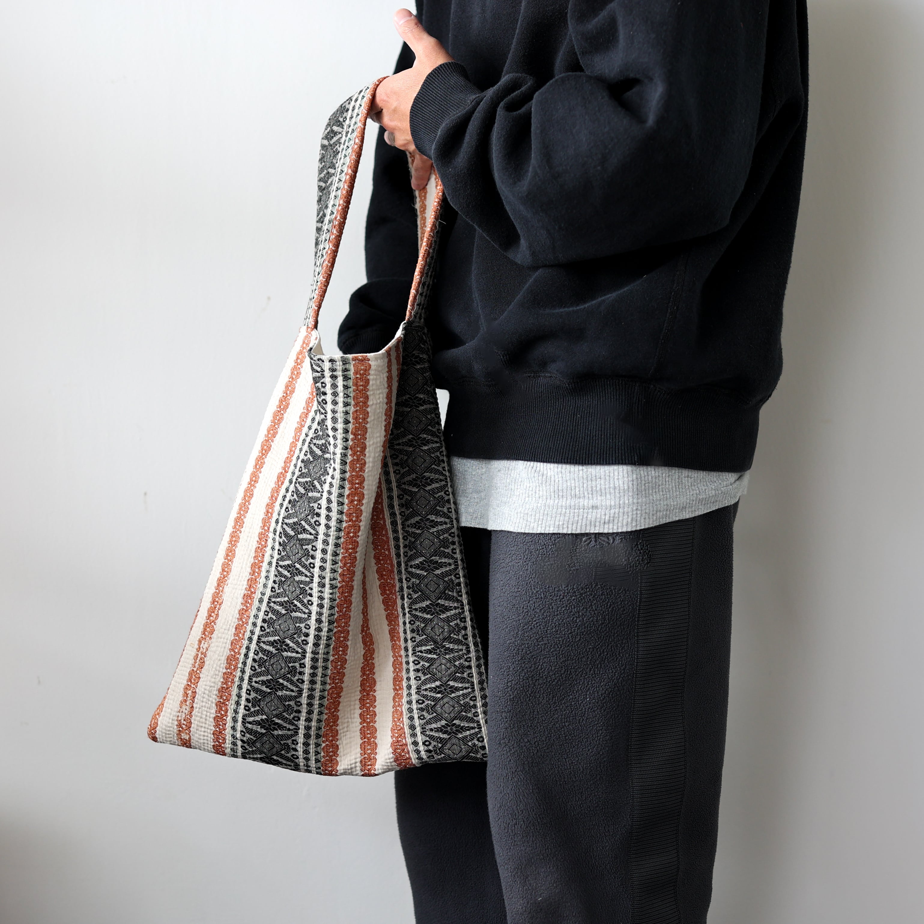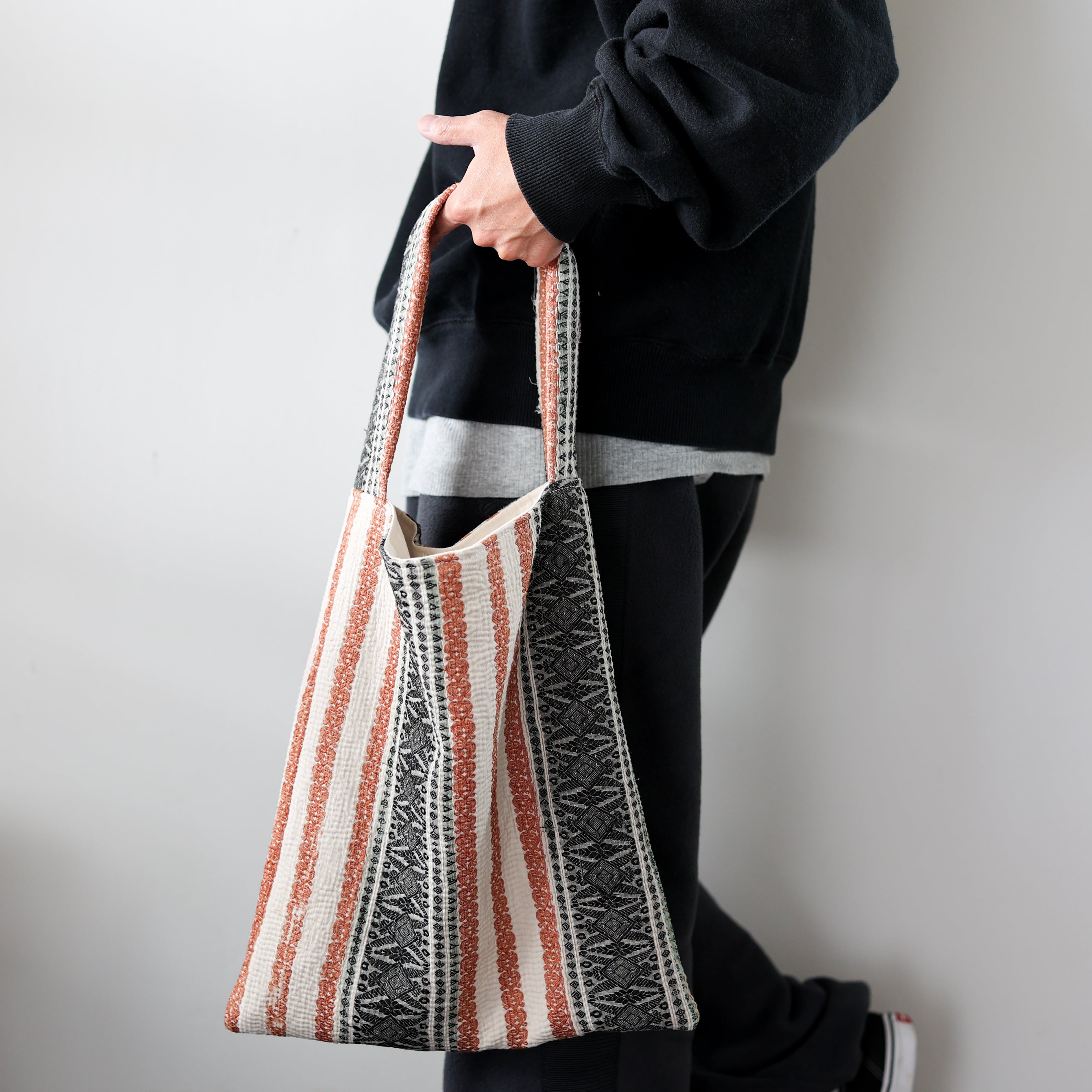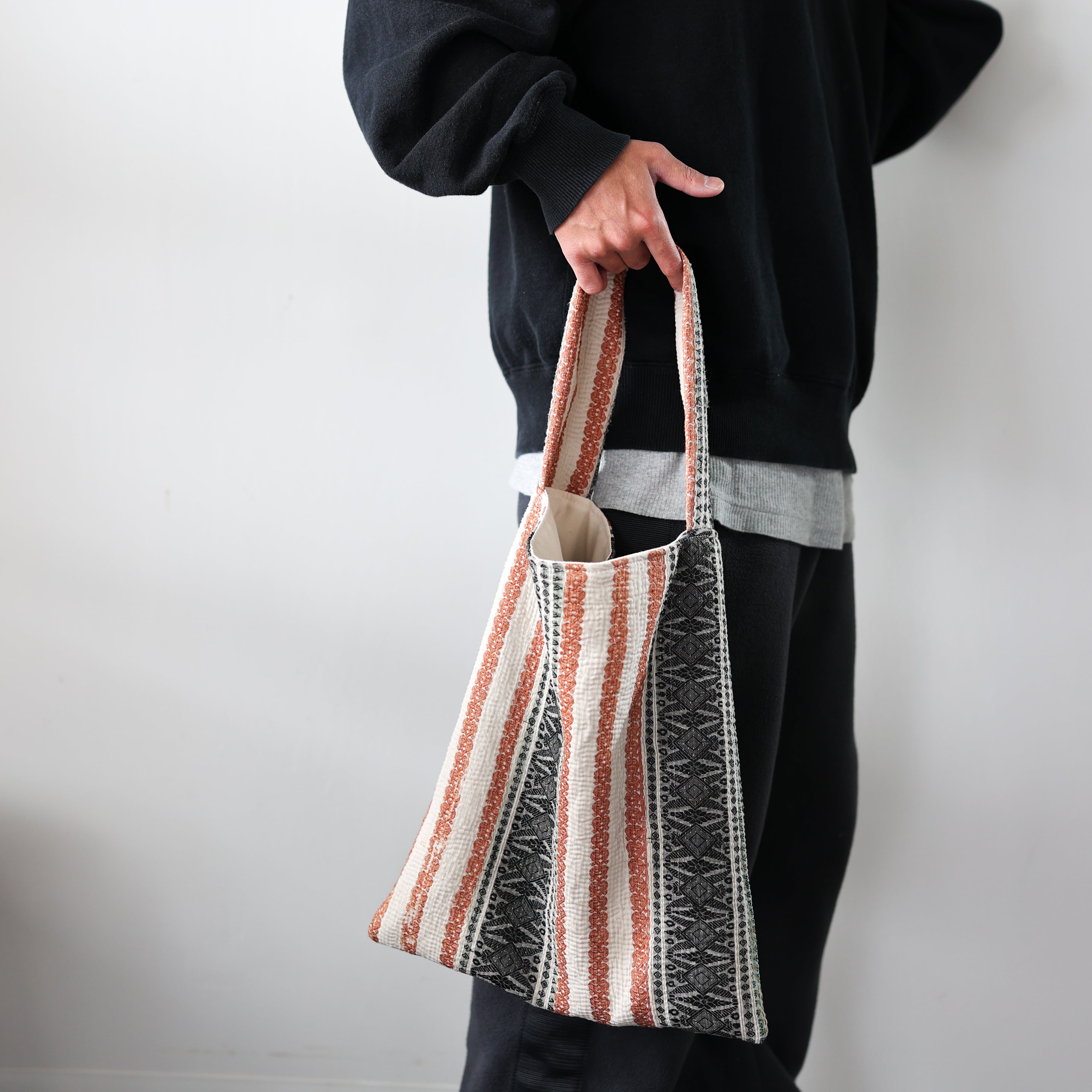 素晴らしいファブリックを用いて制作されたワンハンドルのバッグ