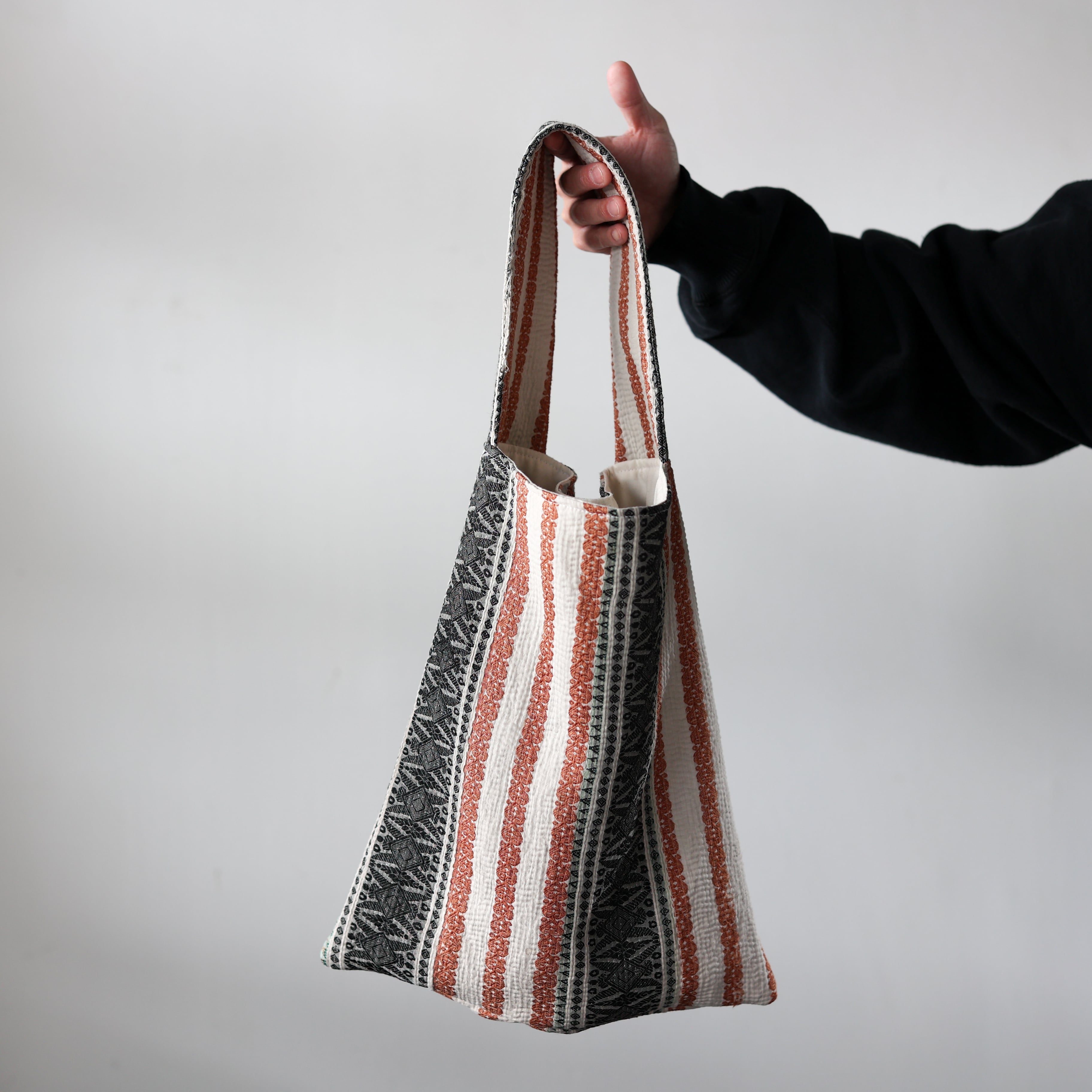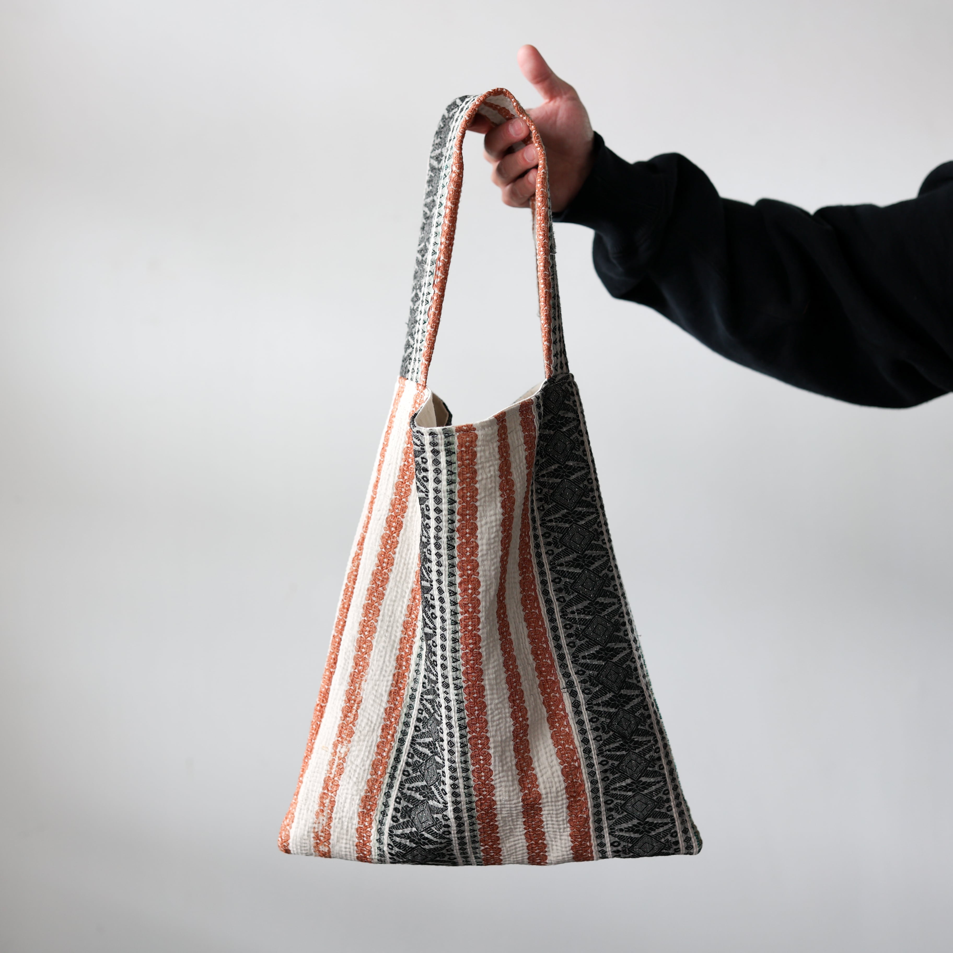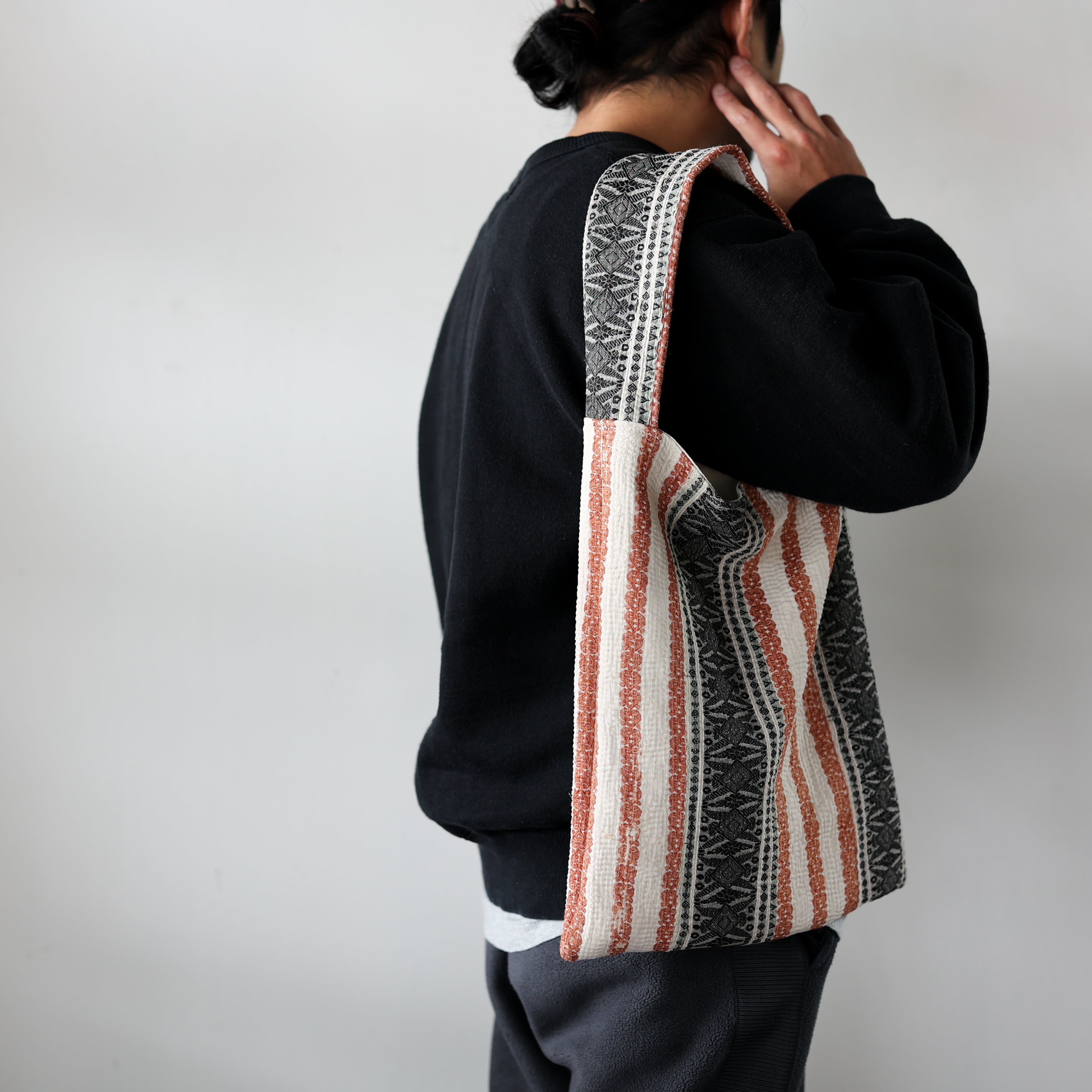 素晴らしいファブリックを用いて制作されたワンハンドルのバッグ