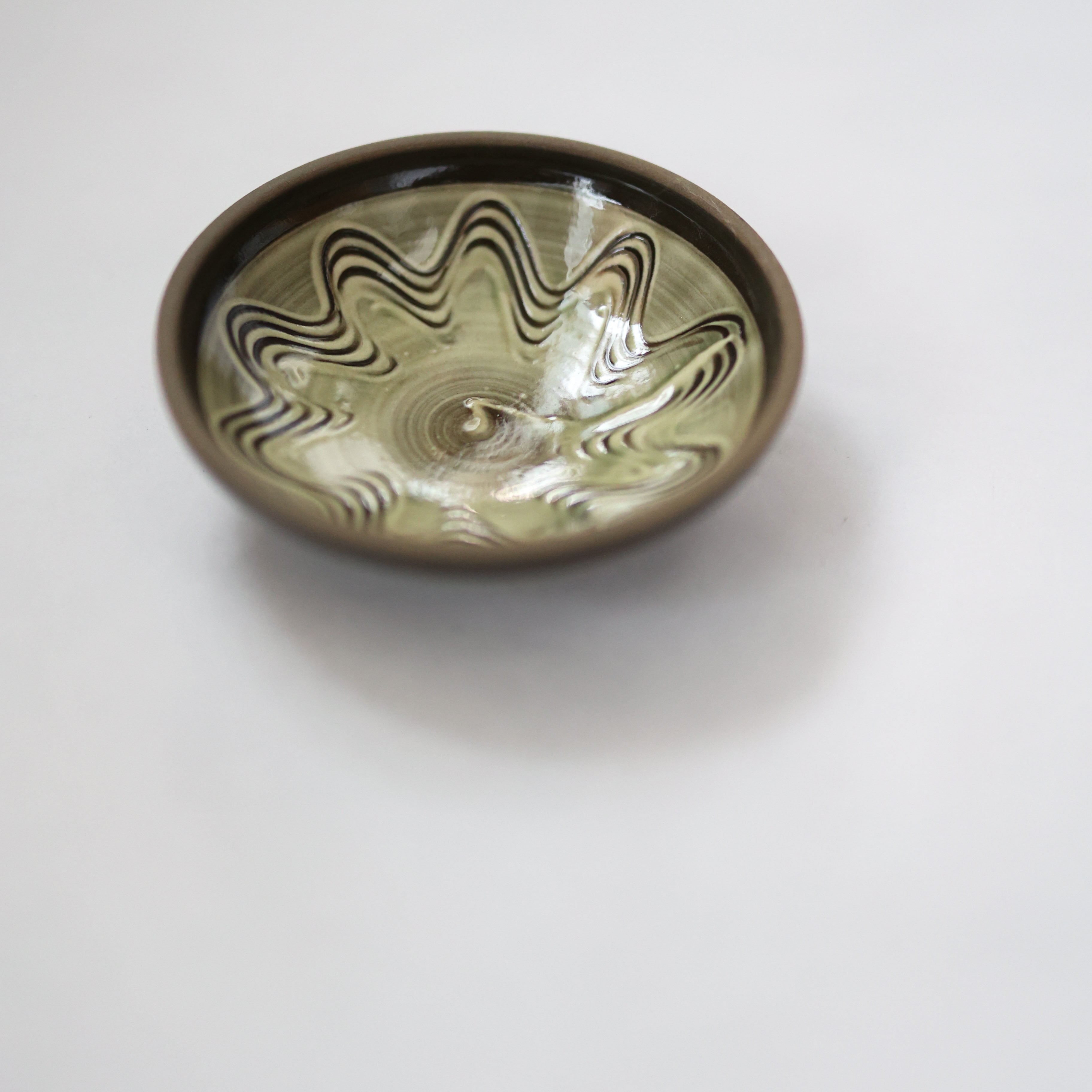 小鹿田焼 - 4寸皿 伏せ合わせ櫛描き / 飴 (made in Japan)