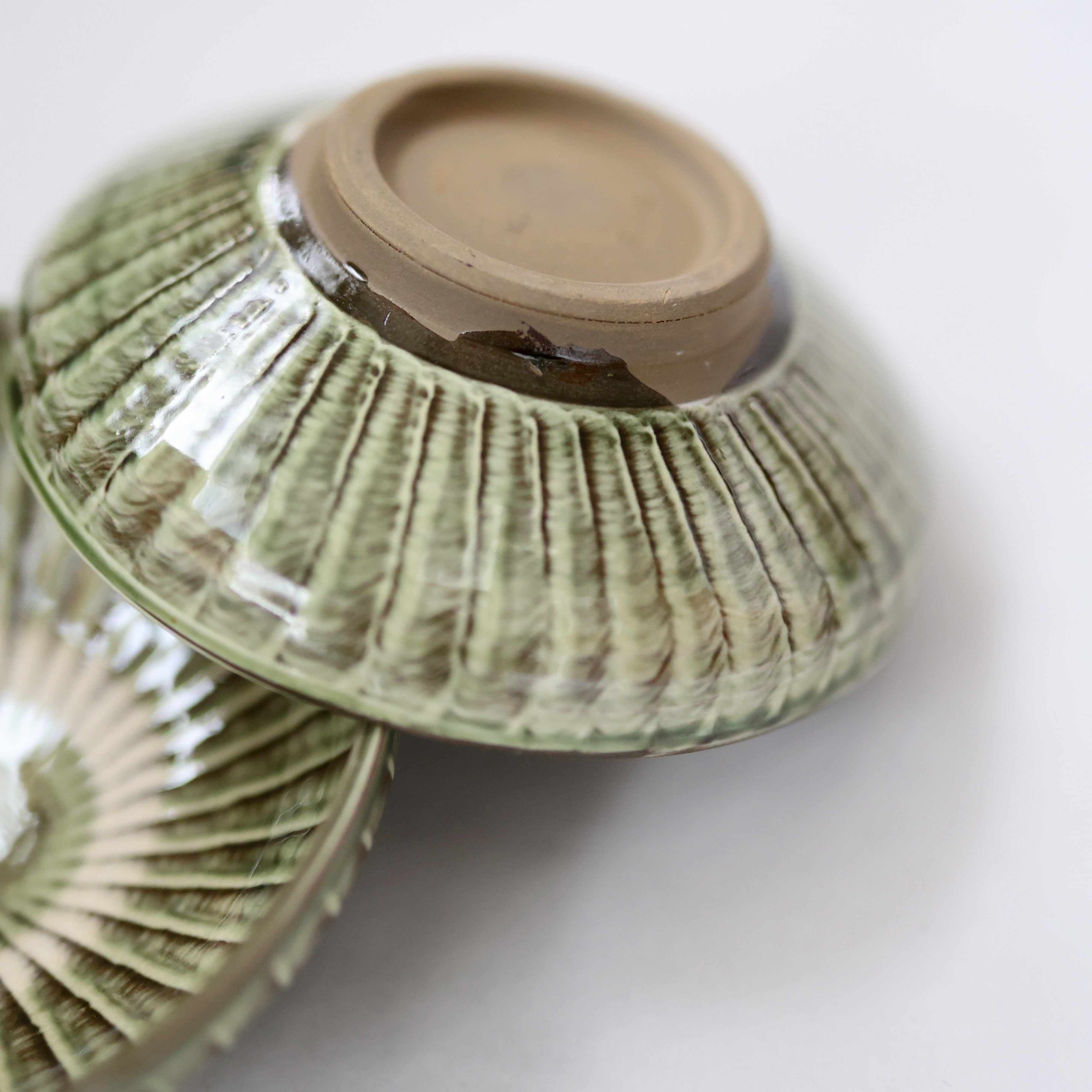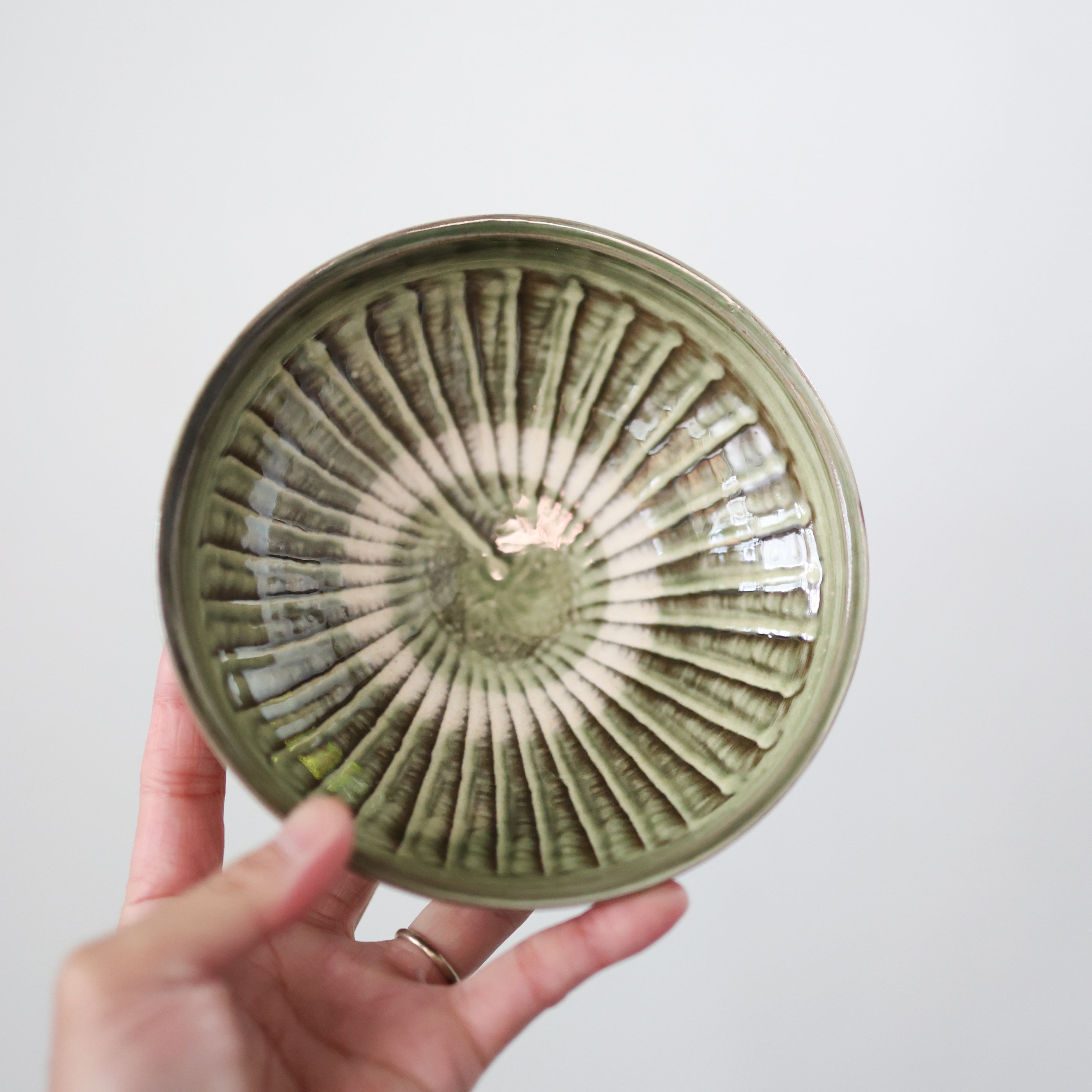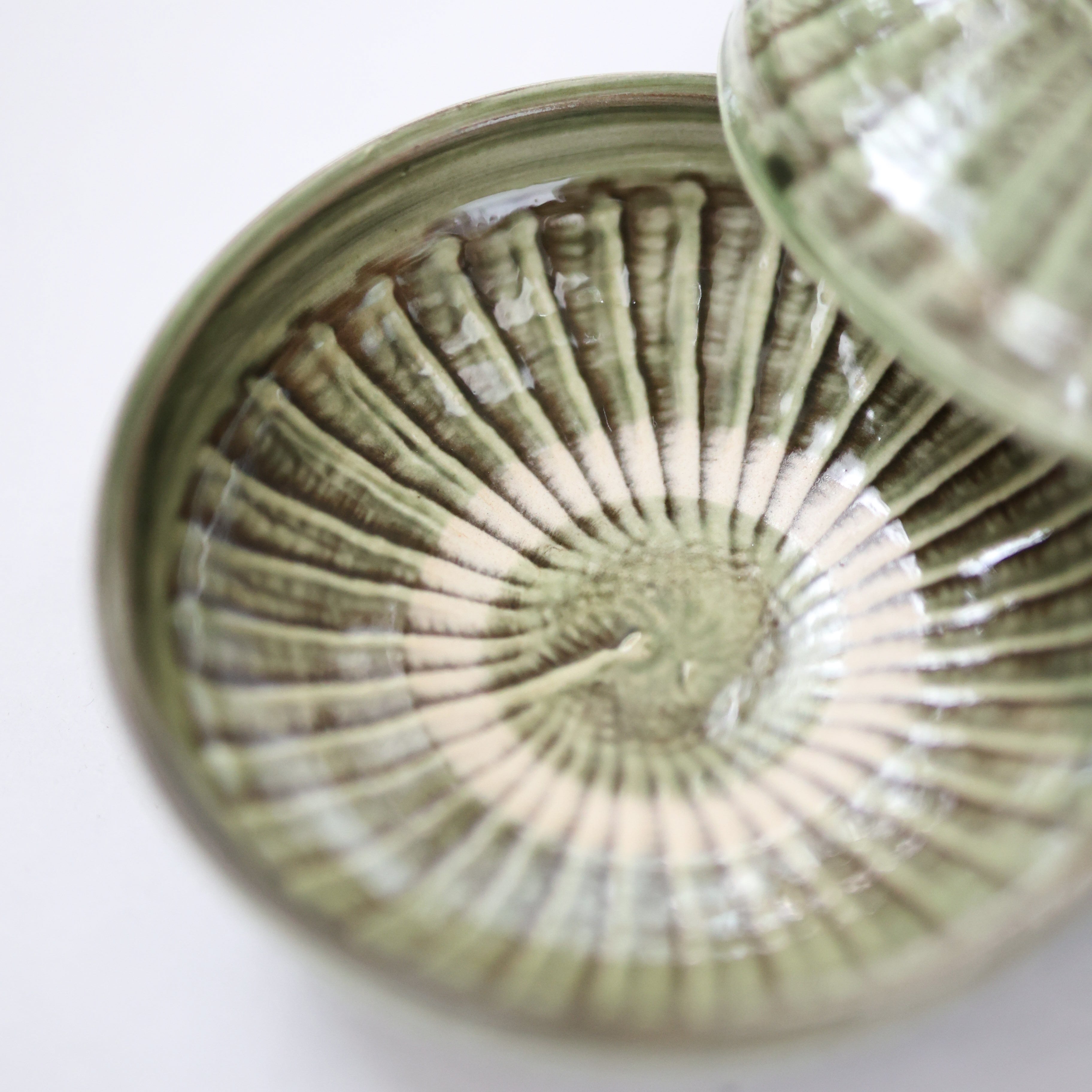 小鹿田焼 - 5寸切り立ち皿 刷毛目 / 緑 (made in Japan)