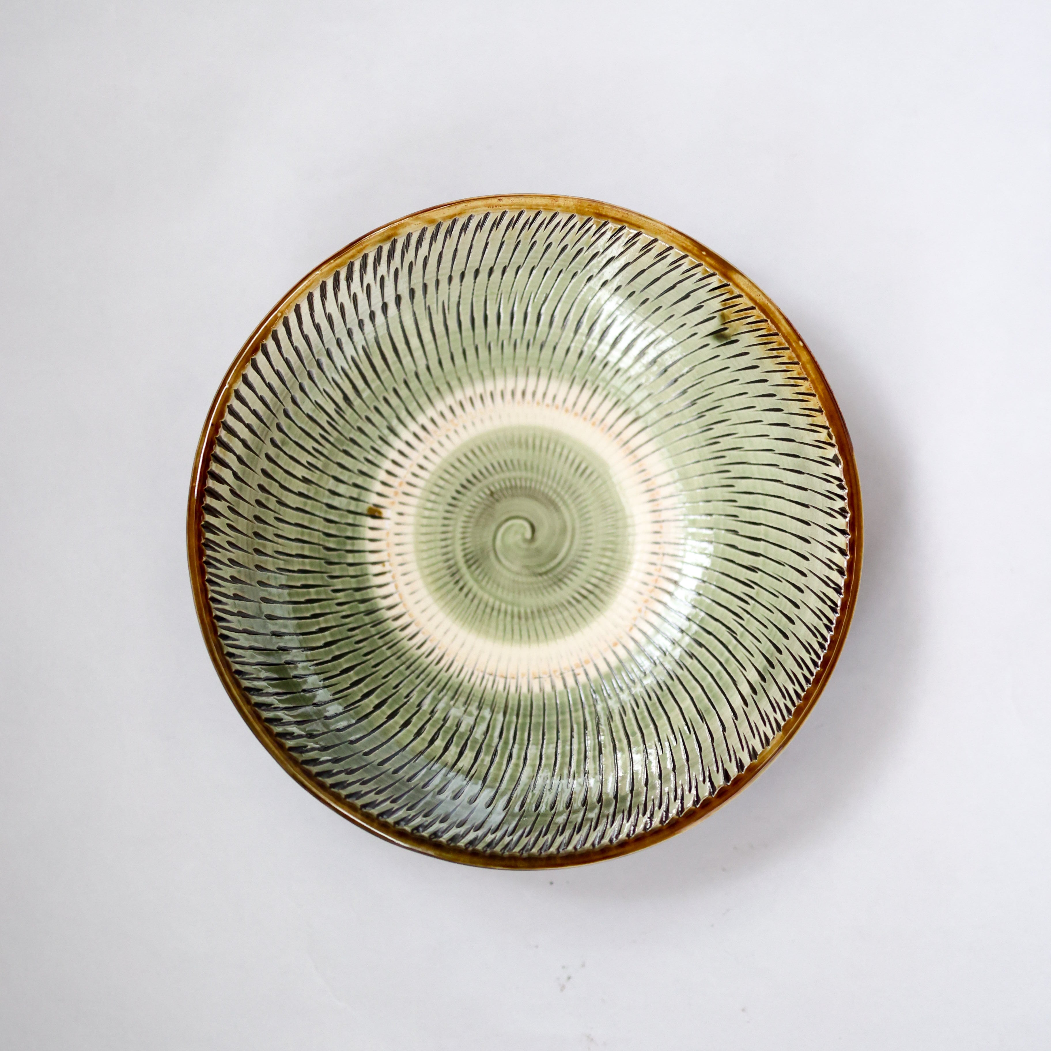 小鹿田焼 - 7寸皿 飛び鉋 / 緑 (made in Japan)