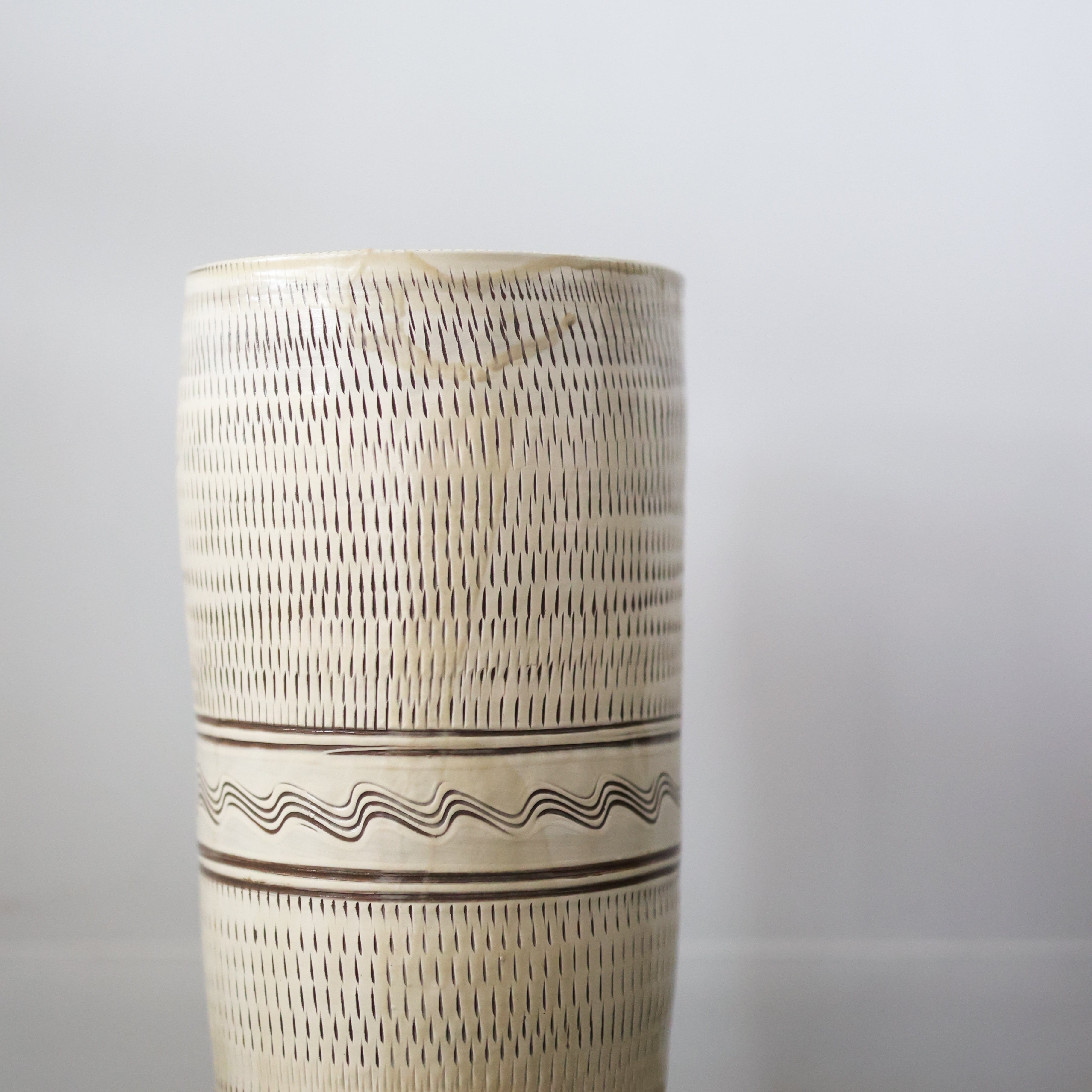 小鹿田焼 - 傘立て / 飛び鉋 × 櫛描き - 白 (made in Japan)