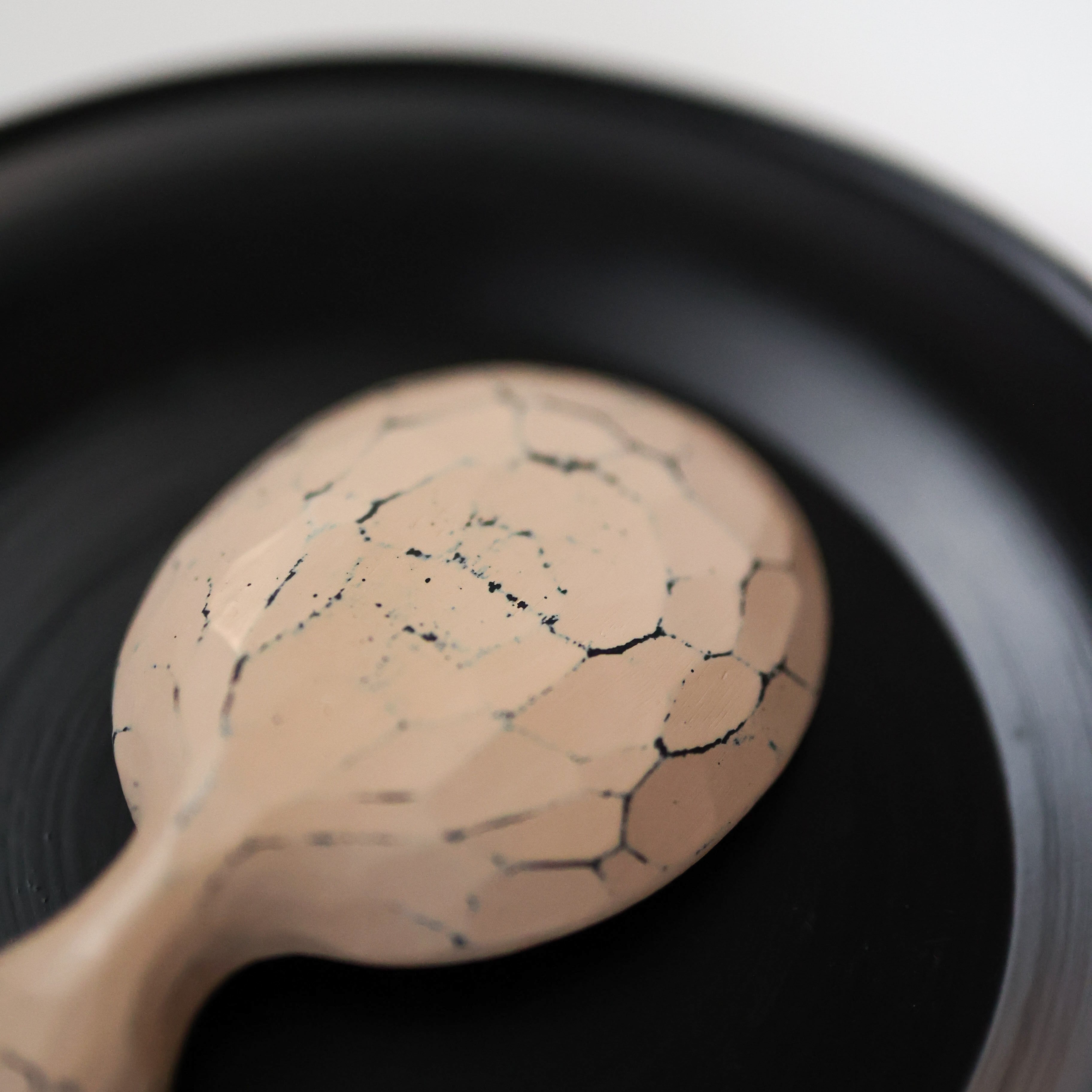 黒漆を下地に塗り重ね、その上に白漆を施し