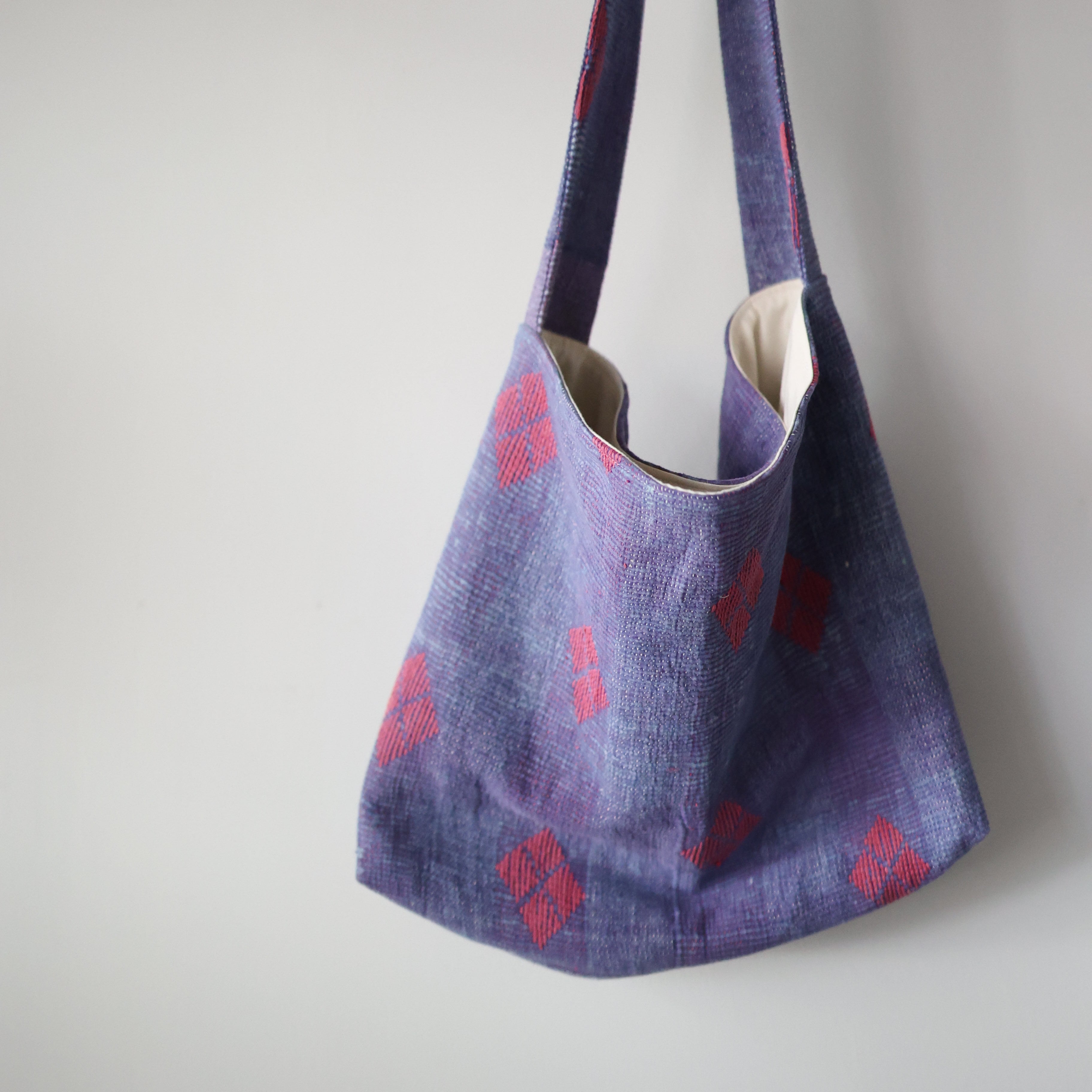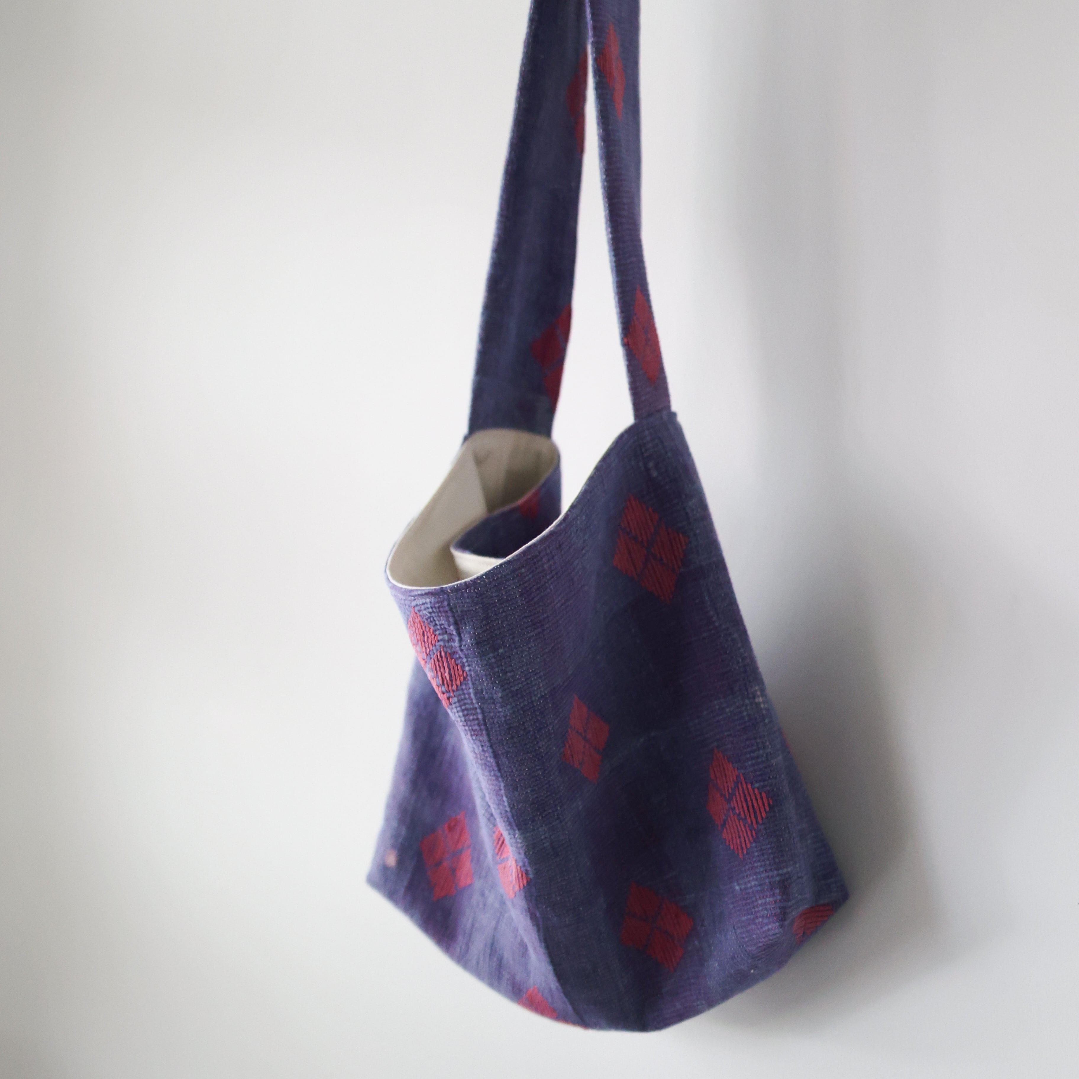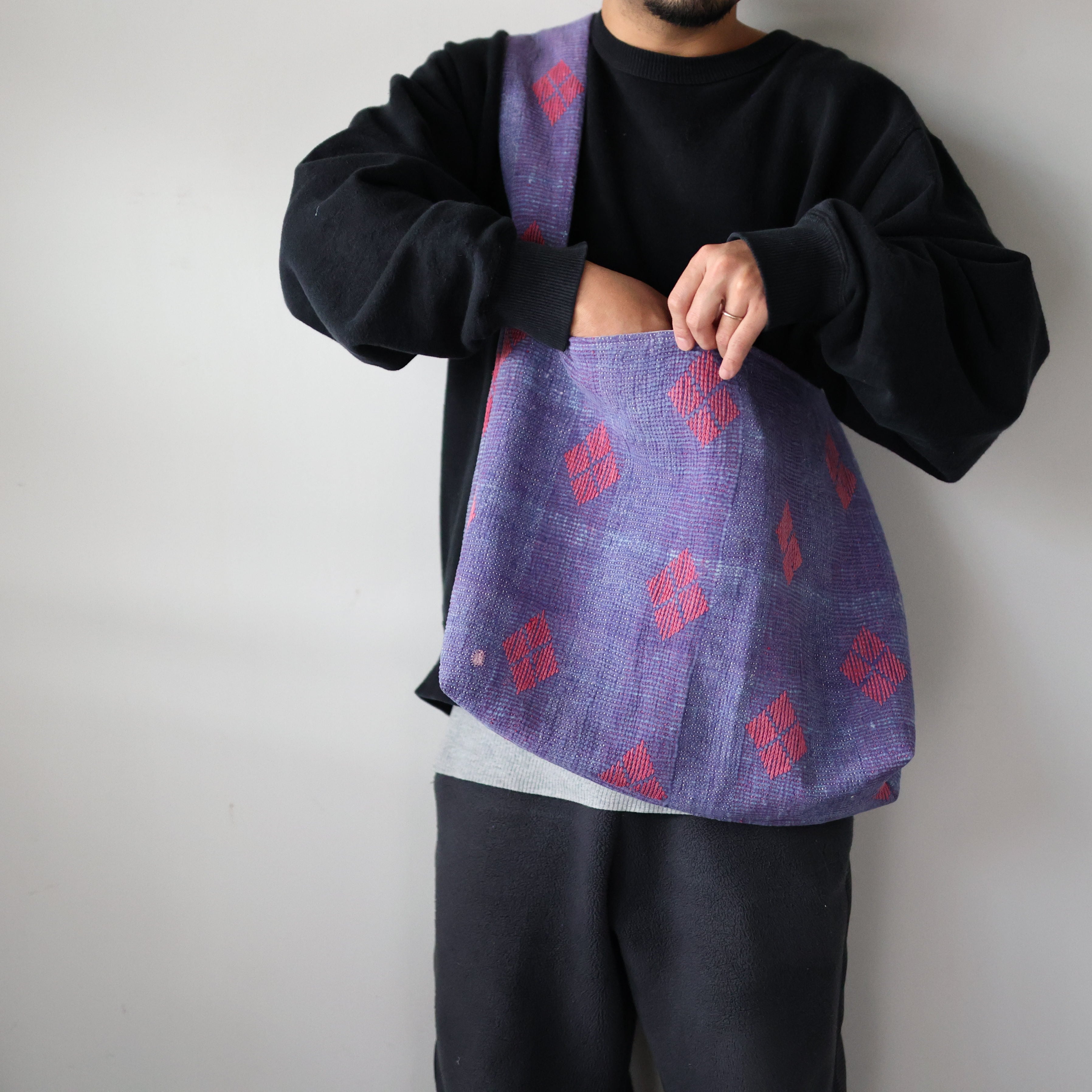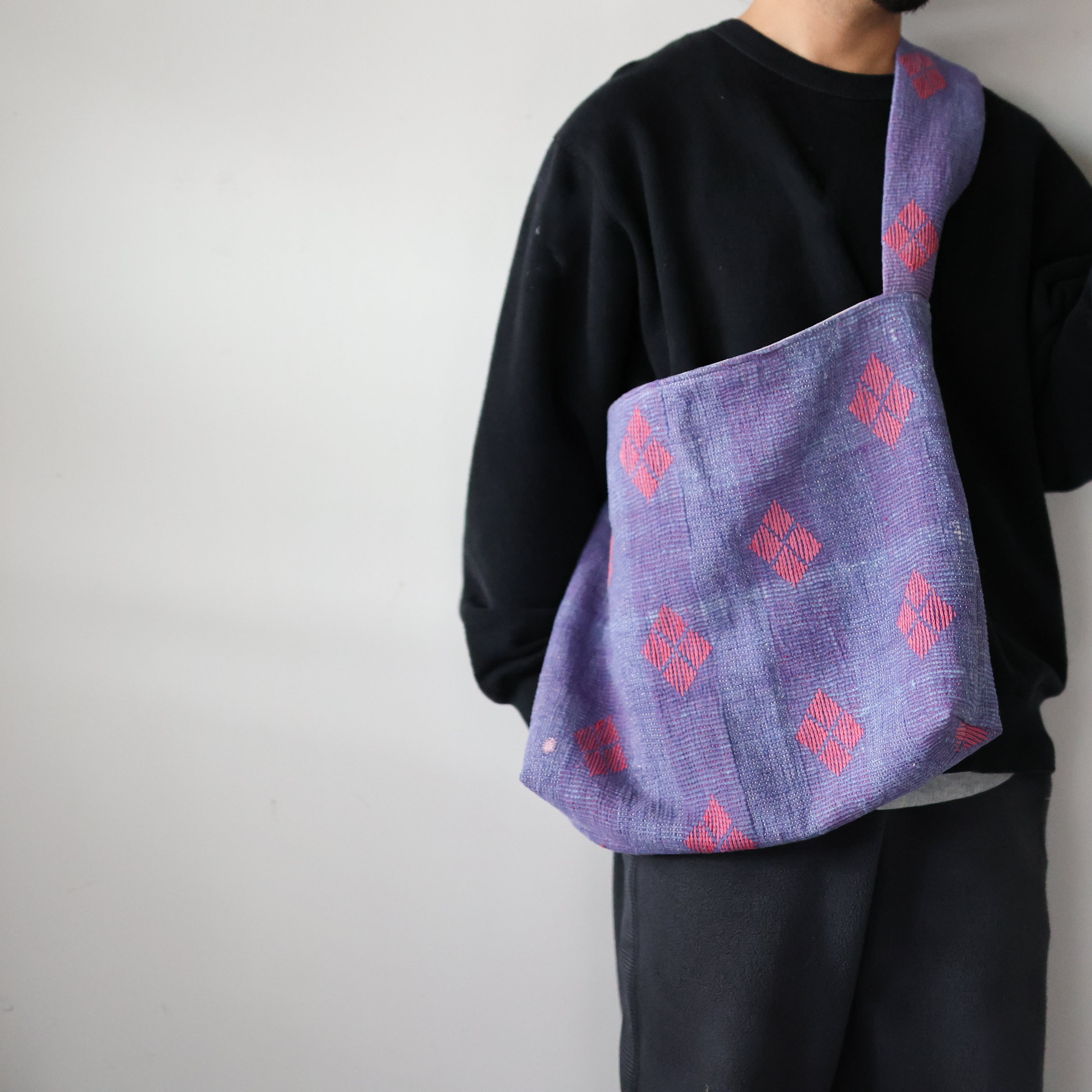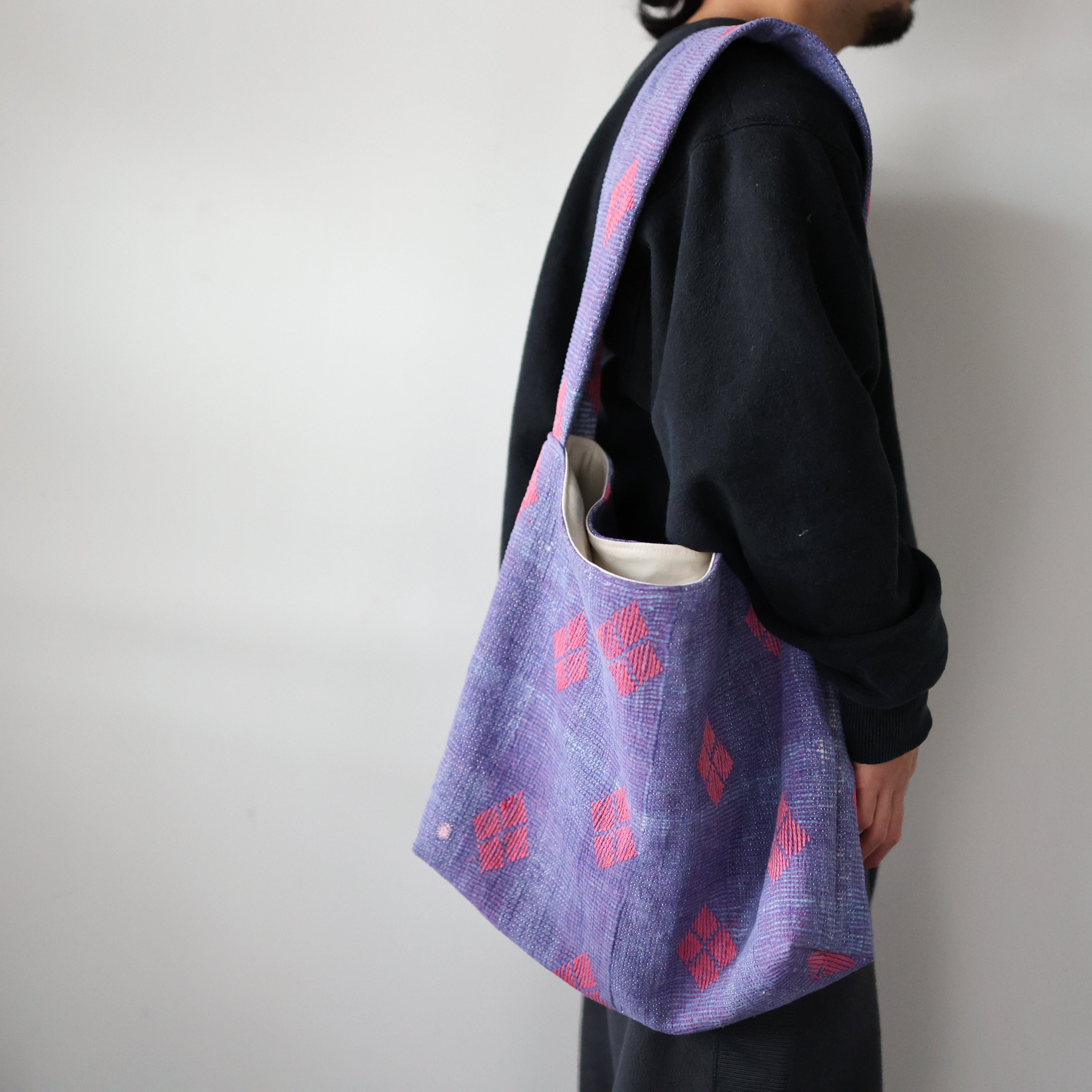 素晴らしいファブリックを用いて制作されたショルダーバッグ