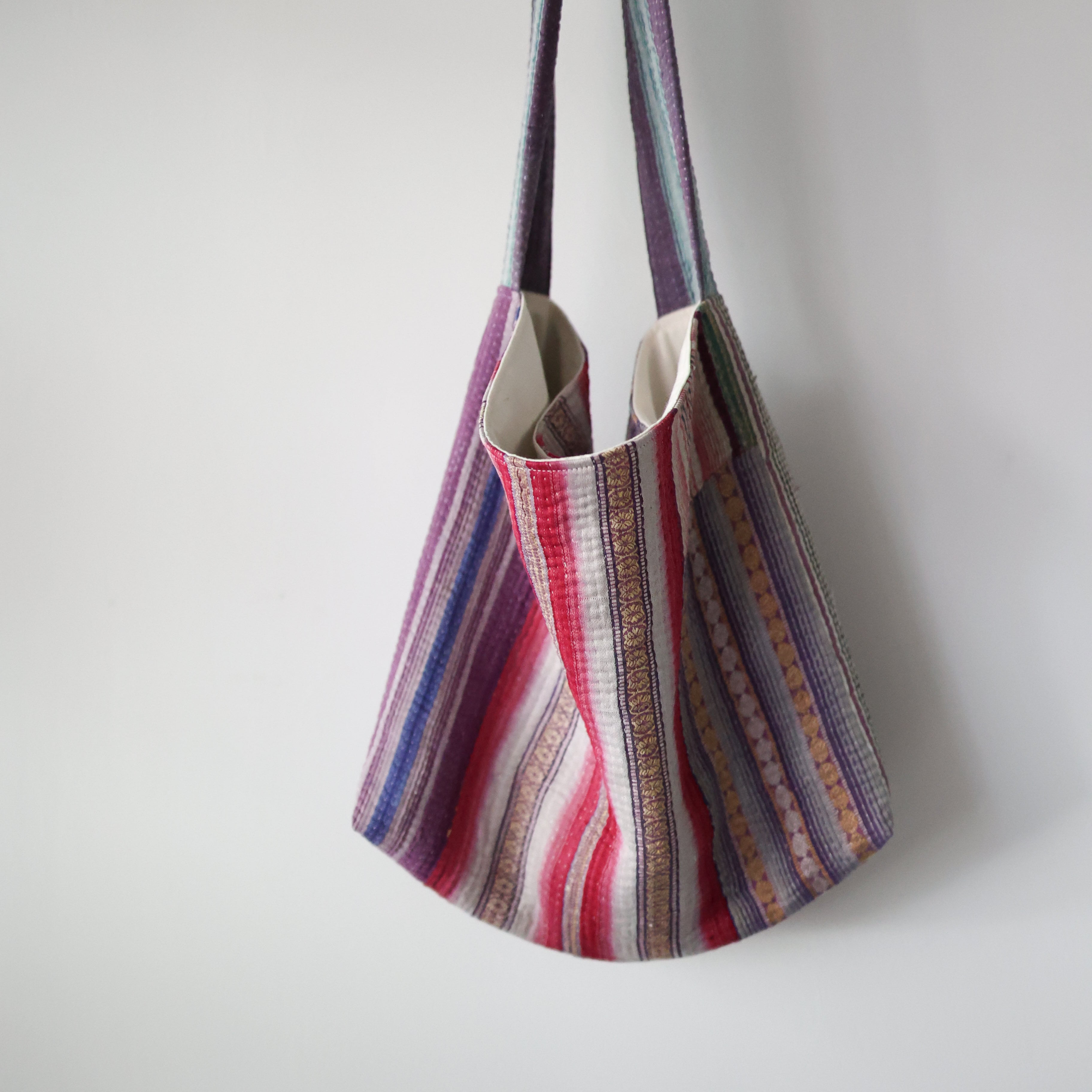 素晴らしいファブリックを用いて制作されたショルダーバッグ