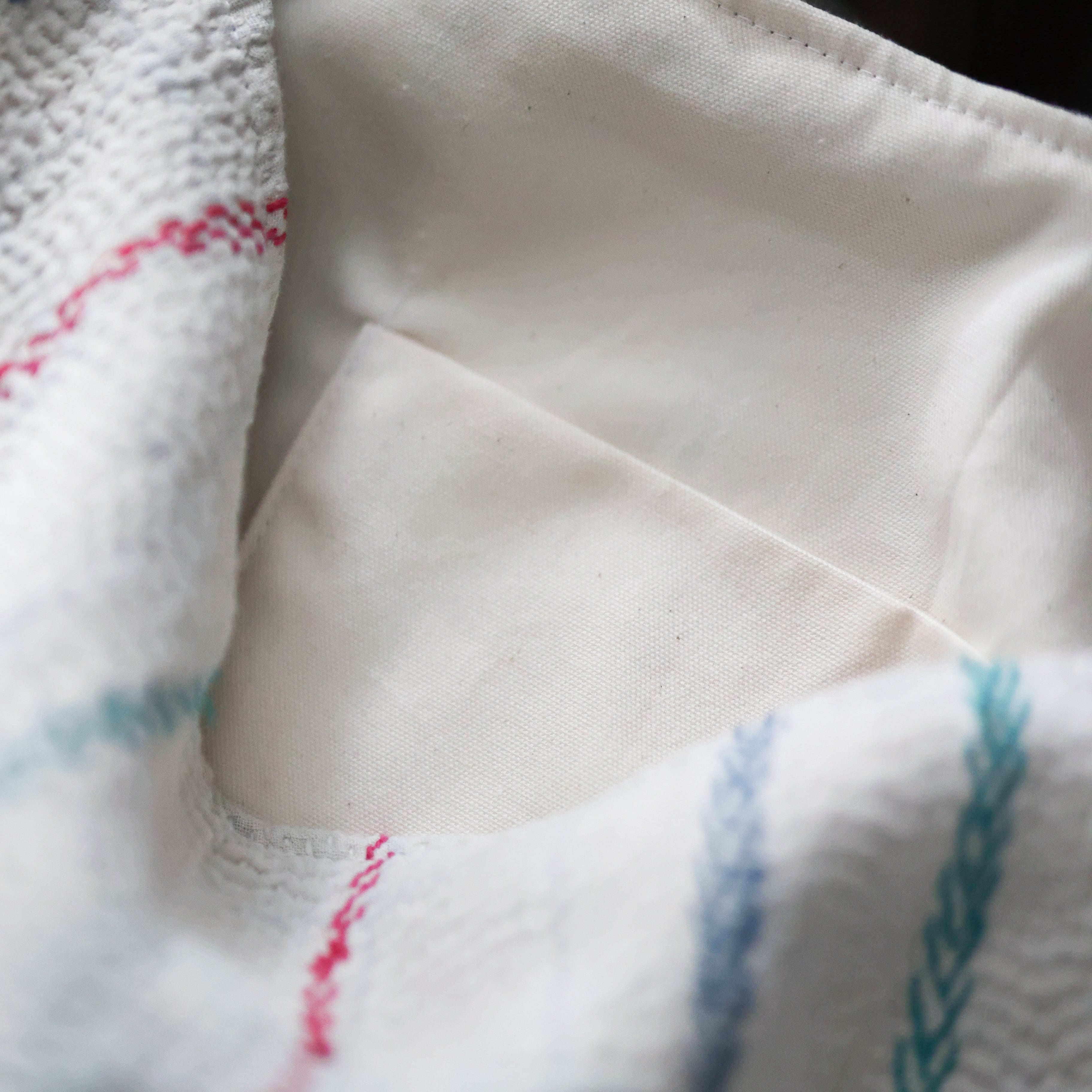 素晴らしいファブリックを用いて制作されたショルダーバッグ