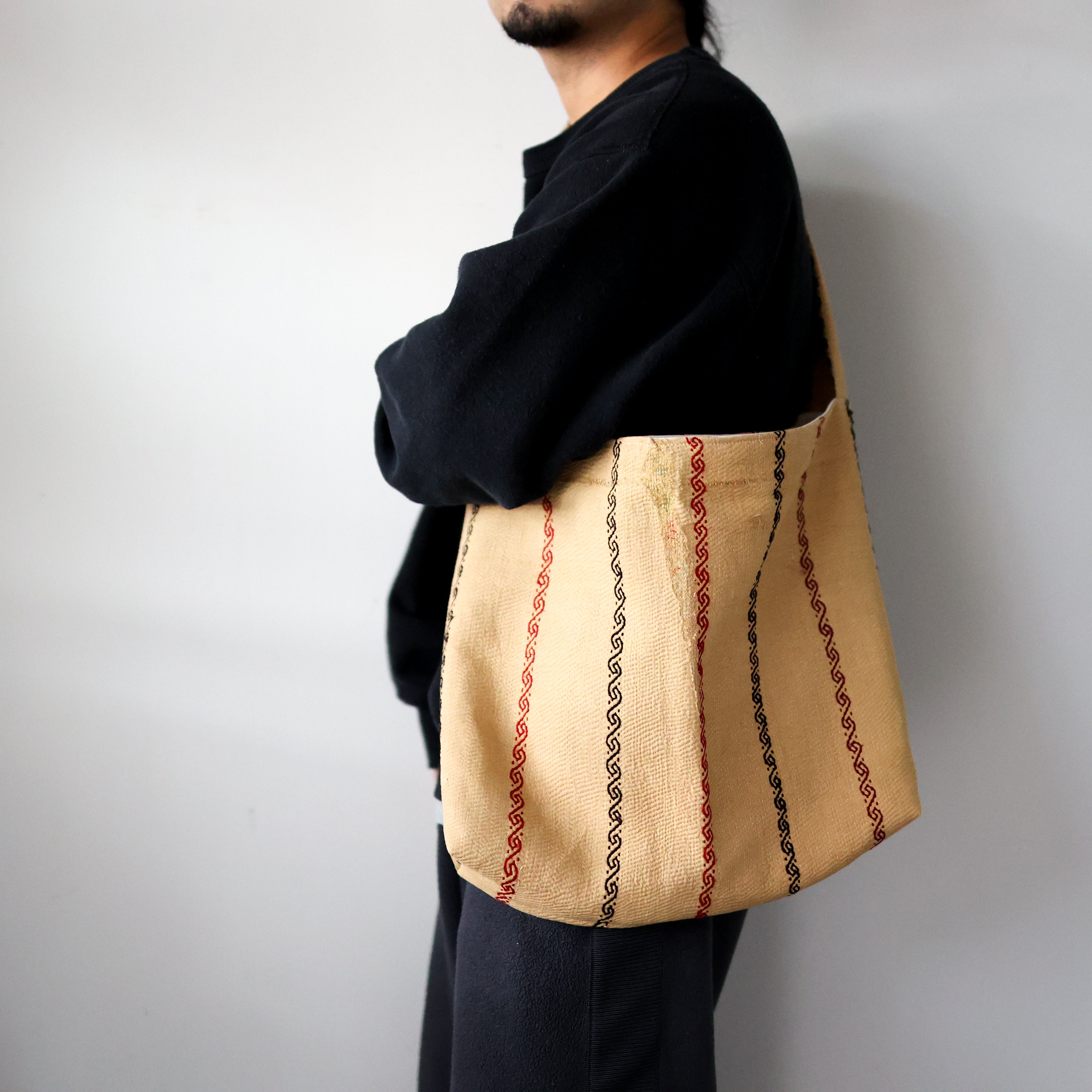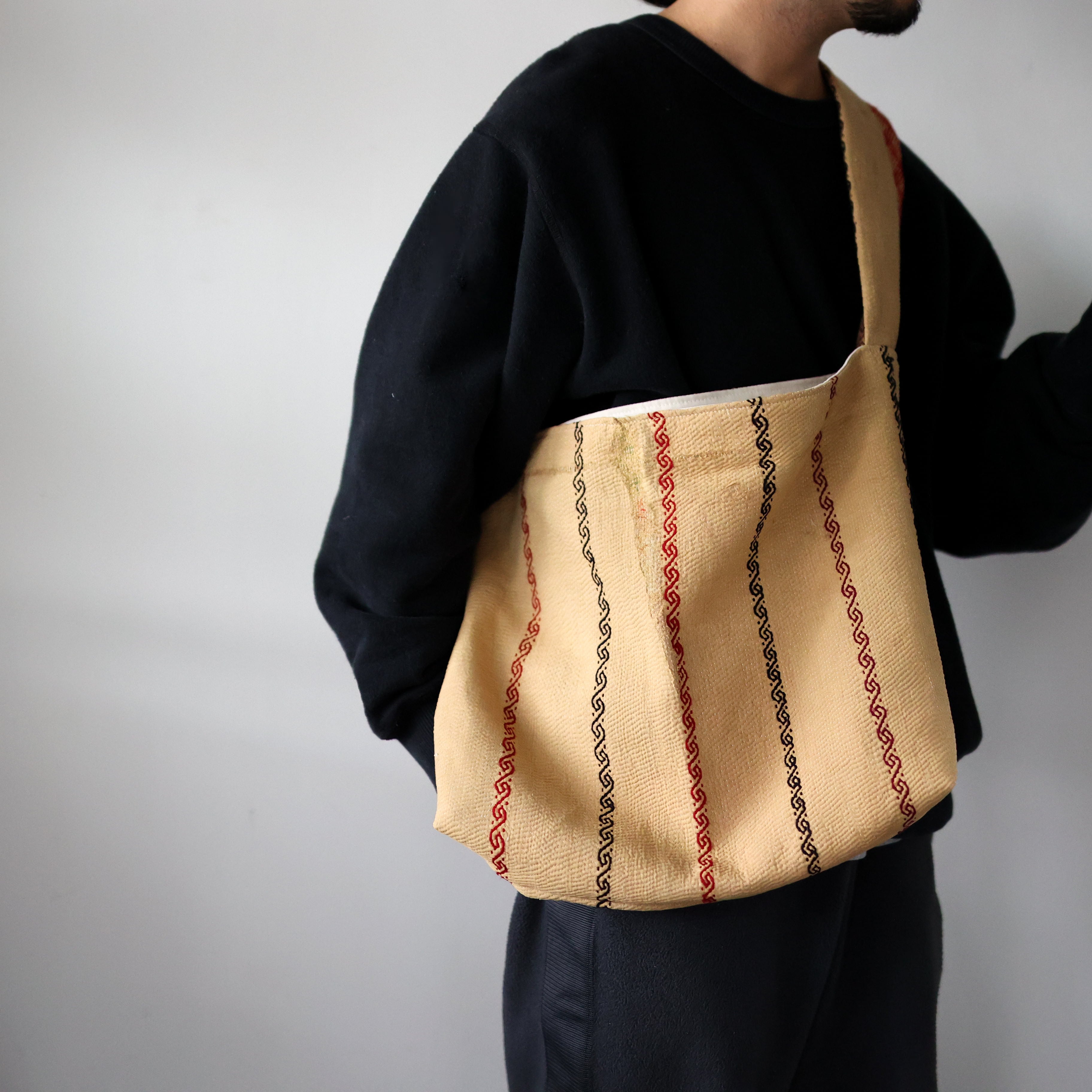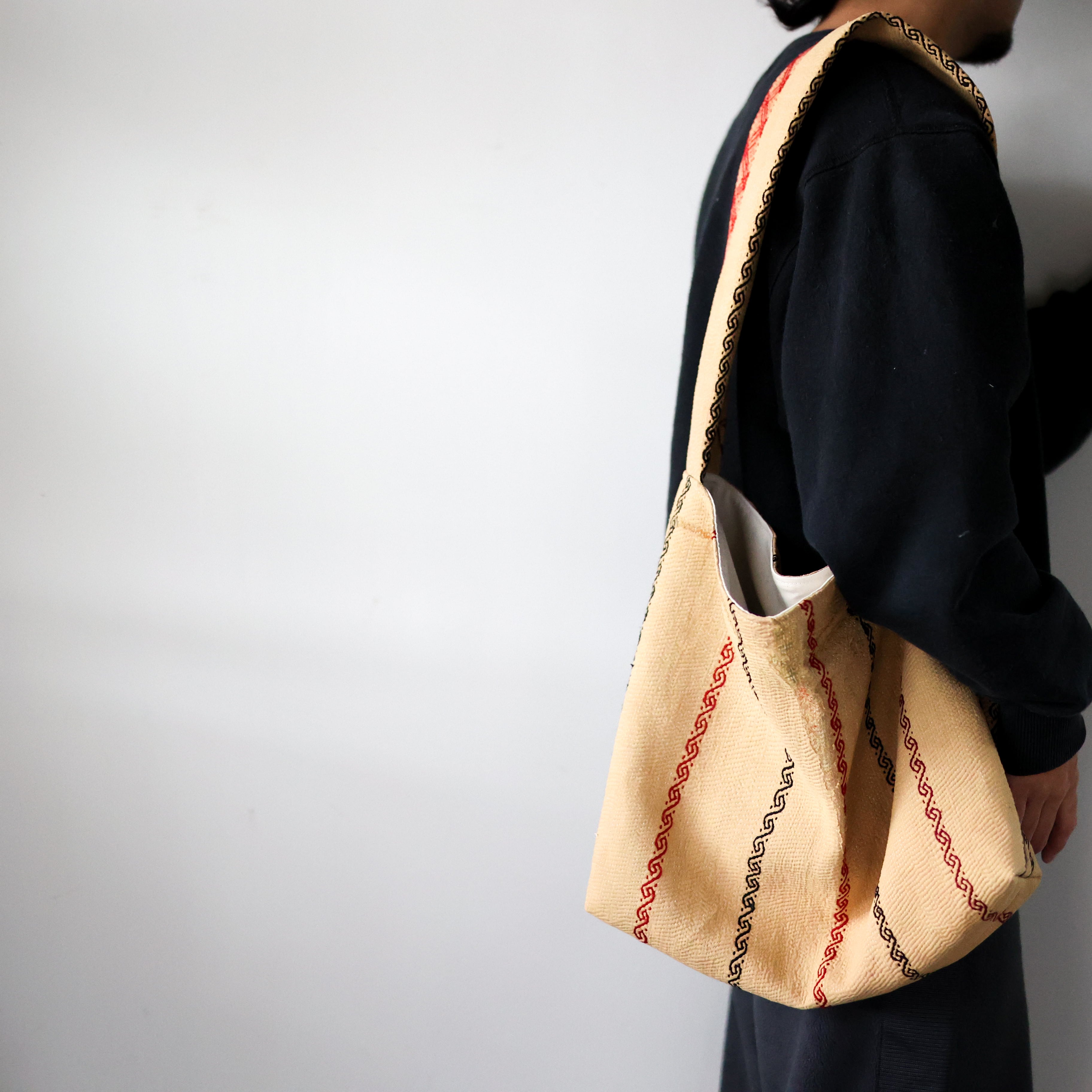 素晴らしいファブリックを用いて制作されたショルダーバッグ