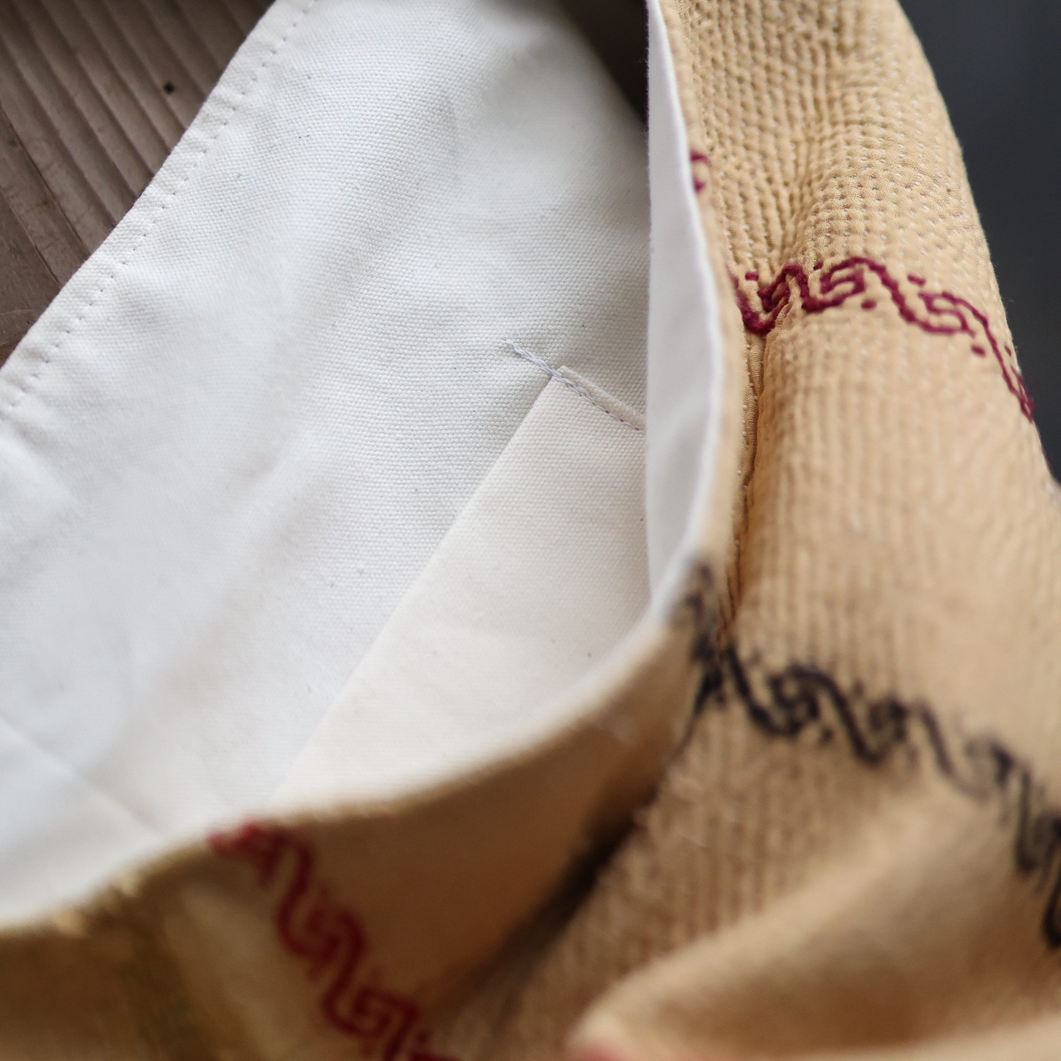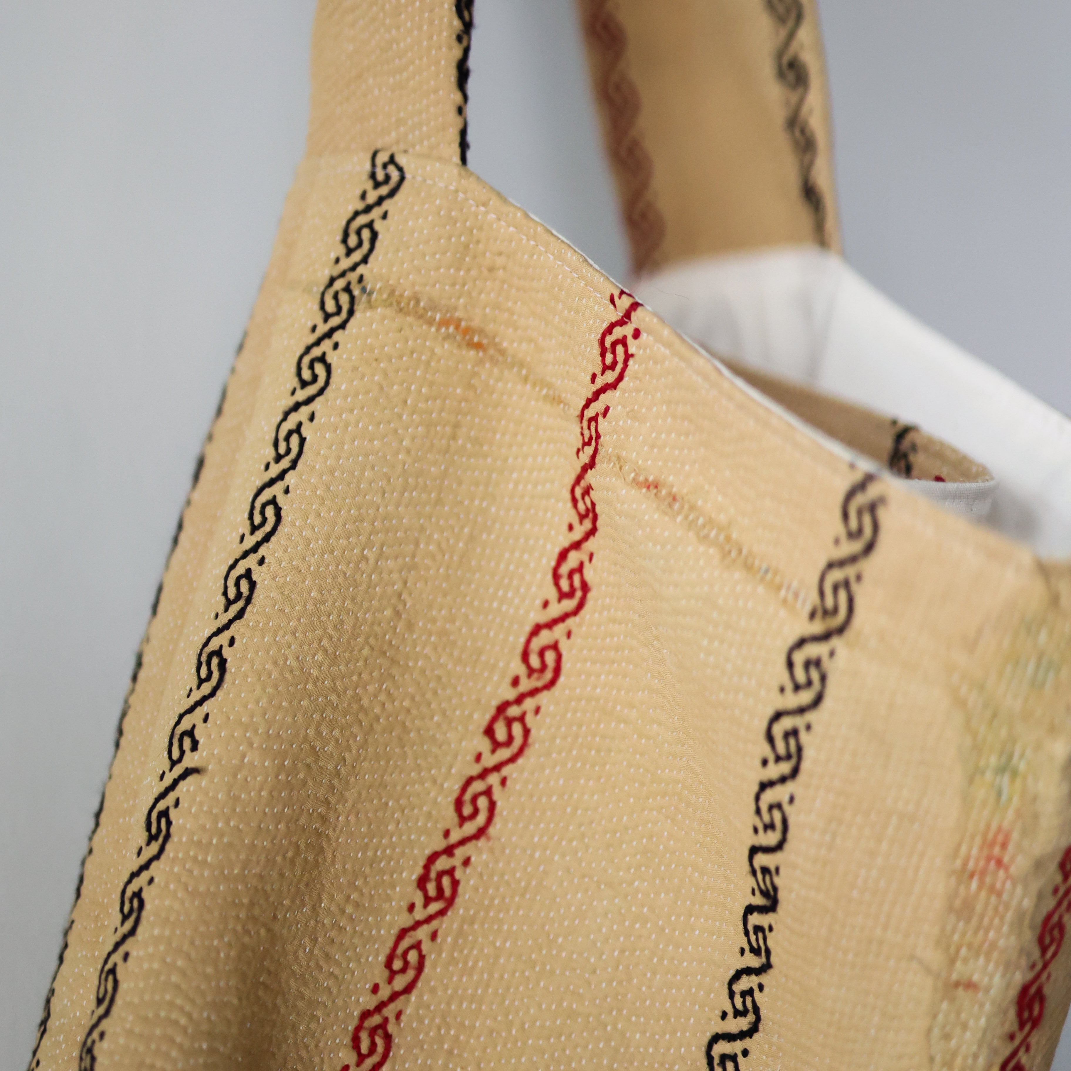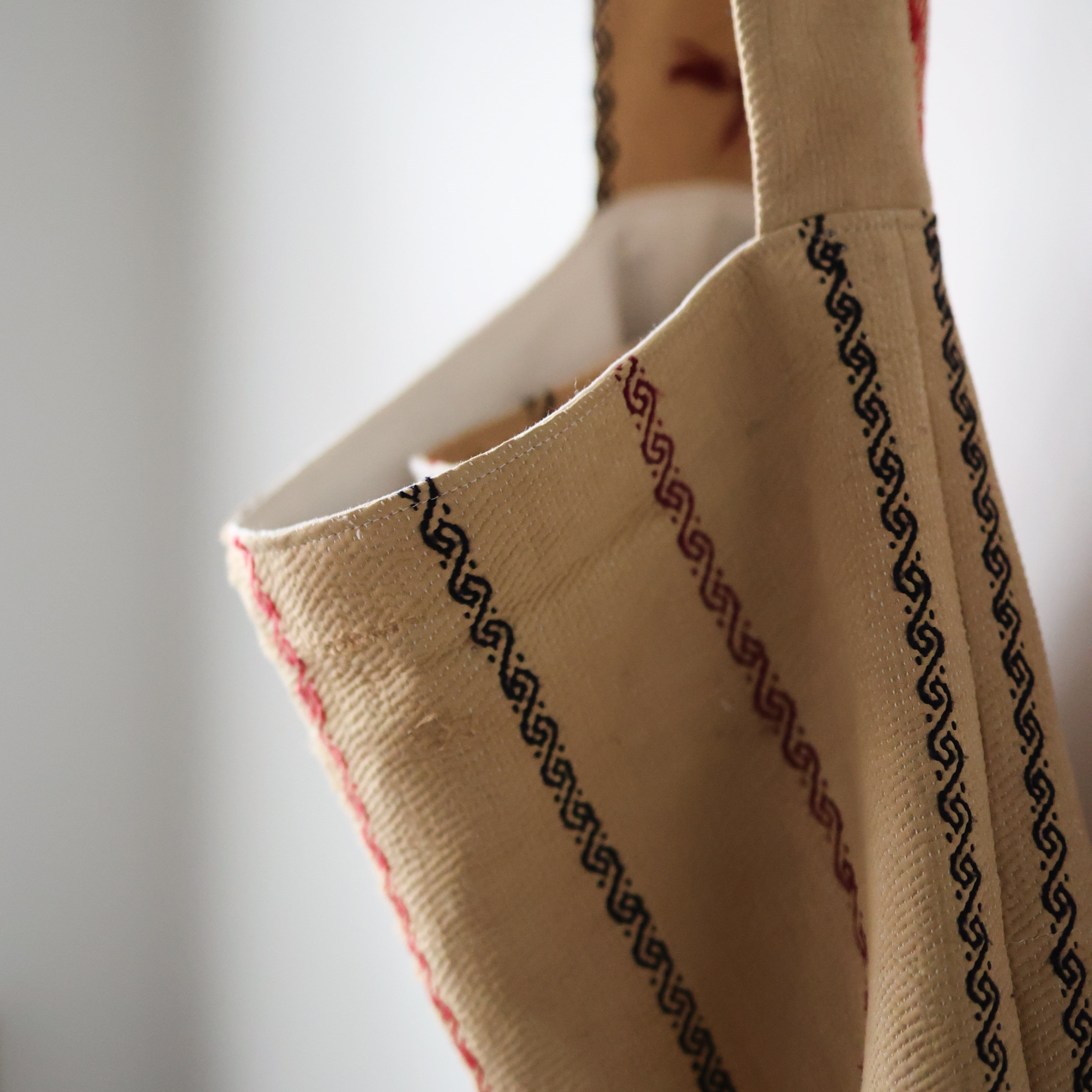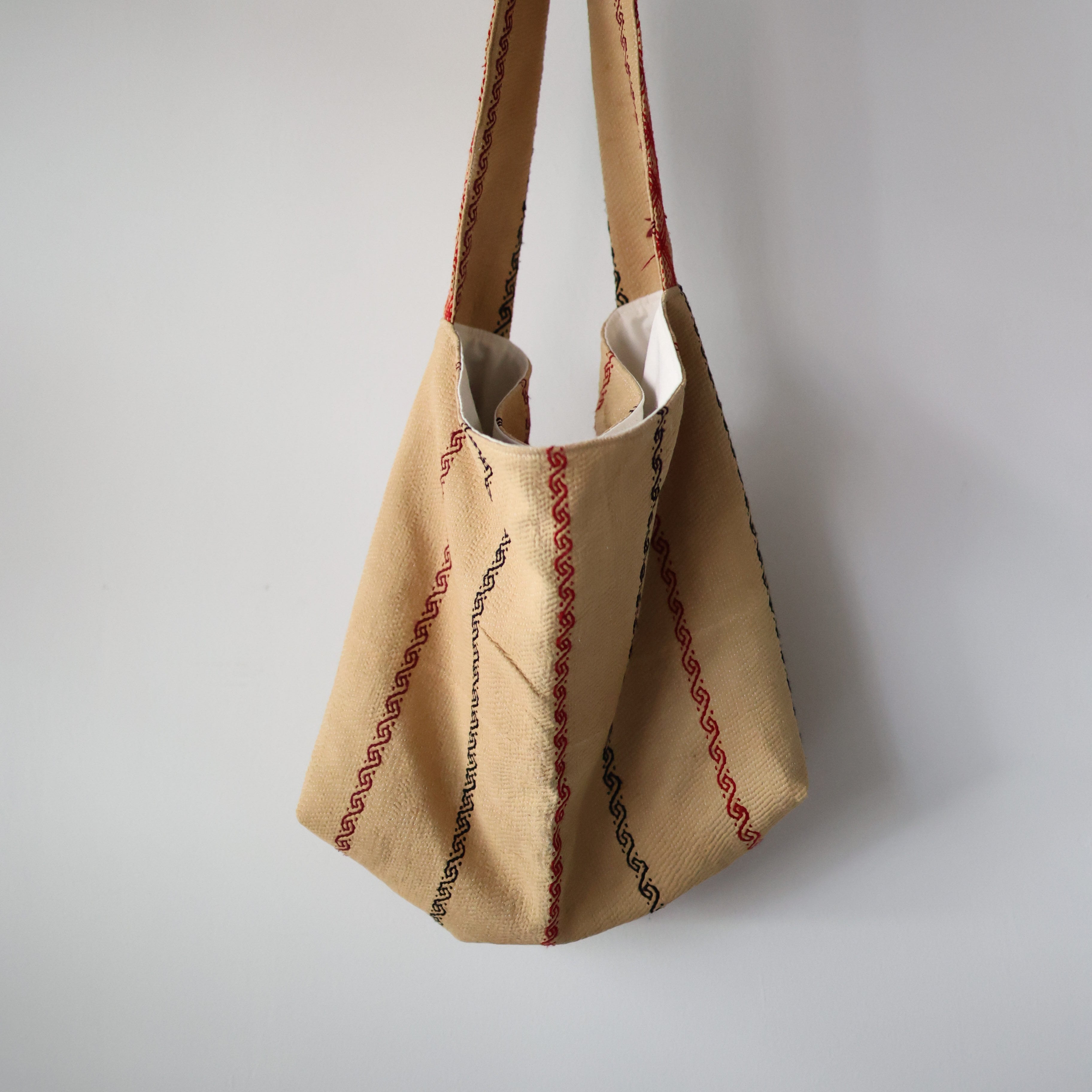素晴らしいファブリックを用いて制作されたショルダーバッグ