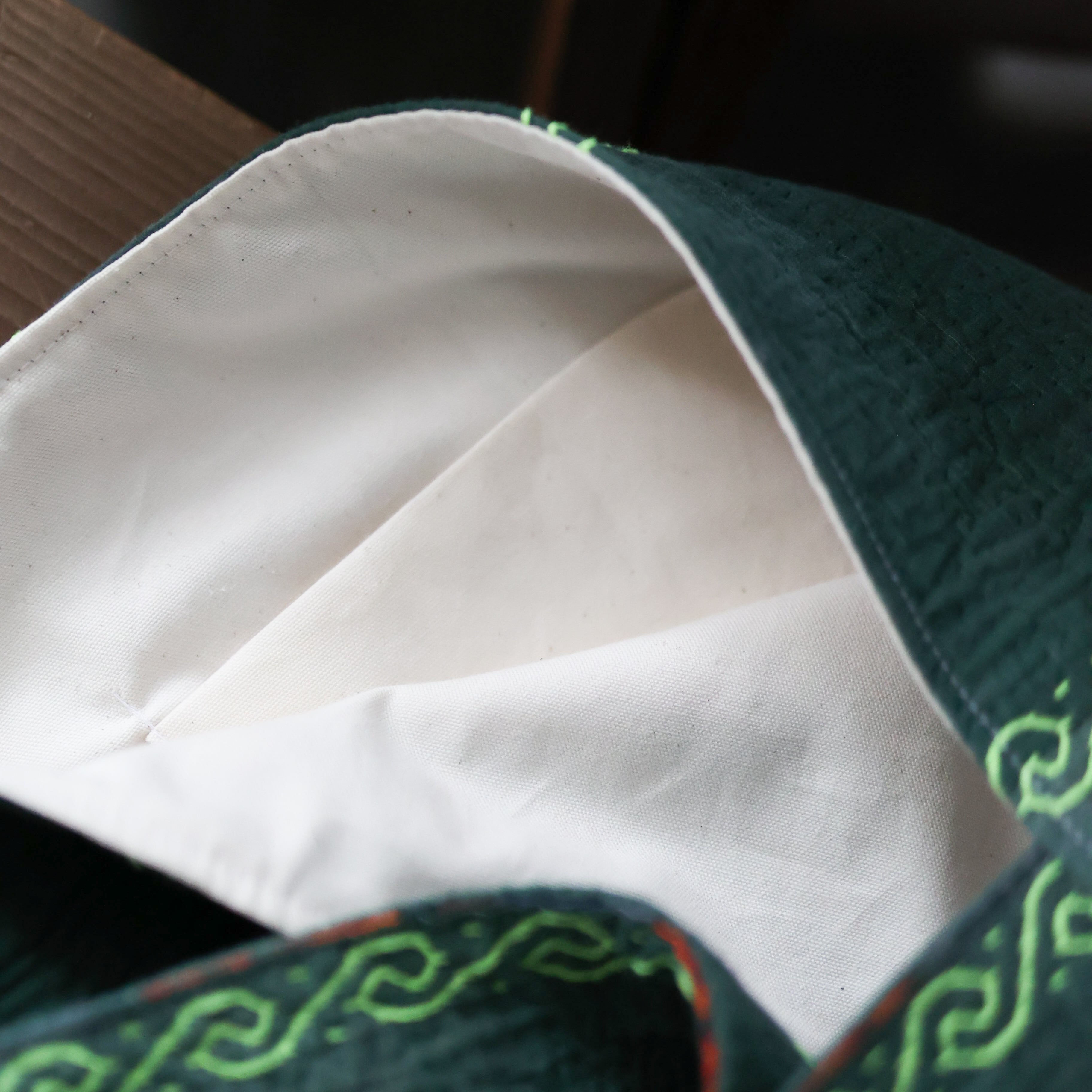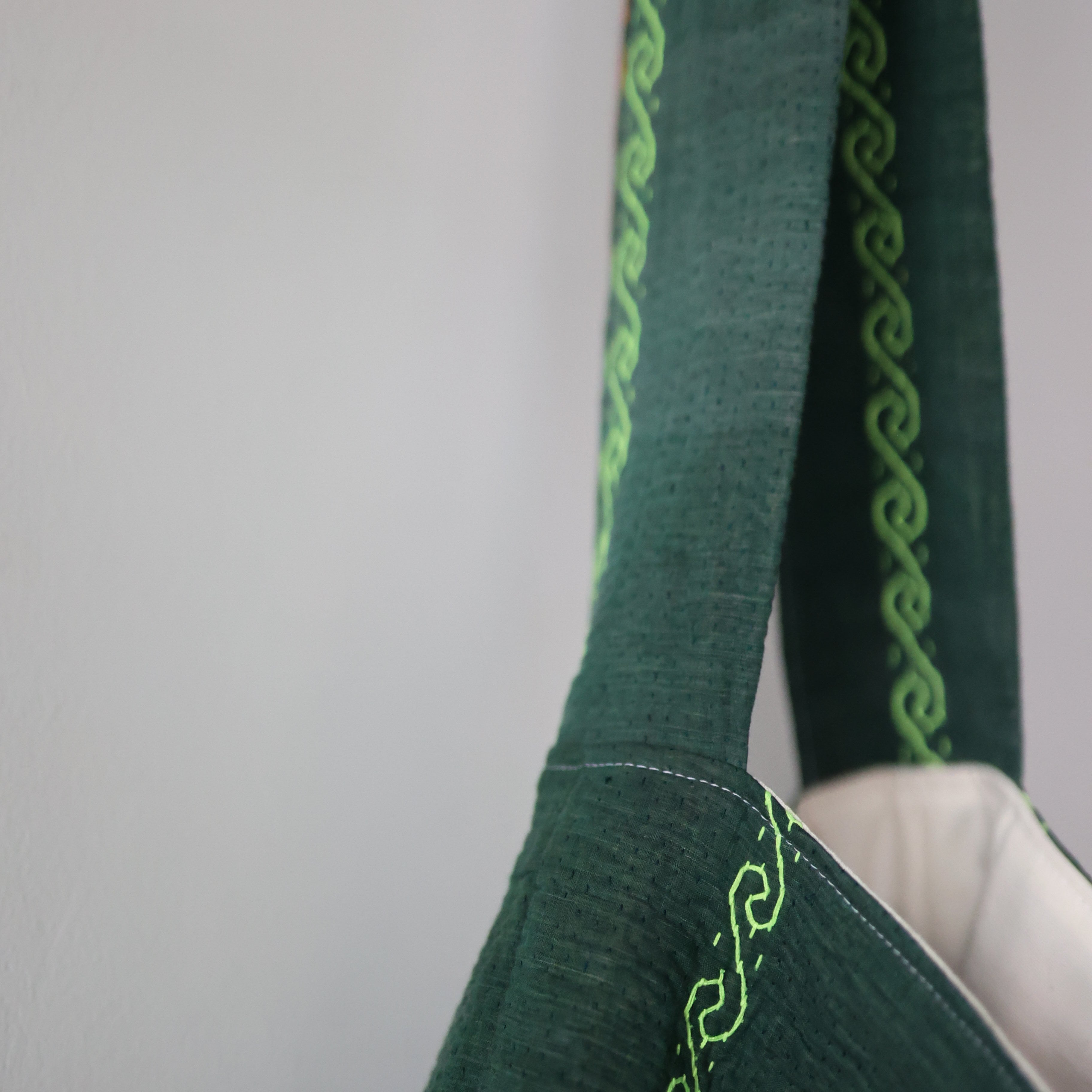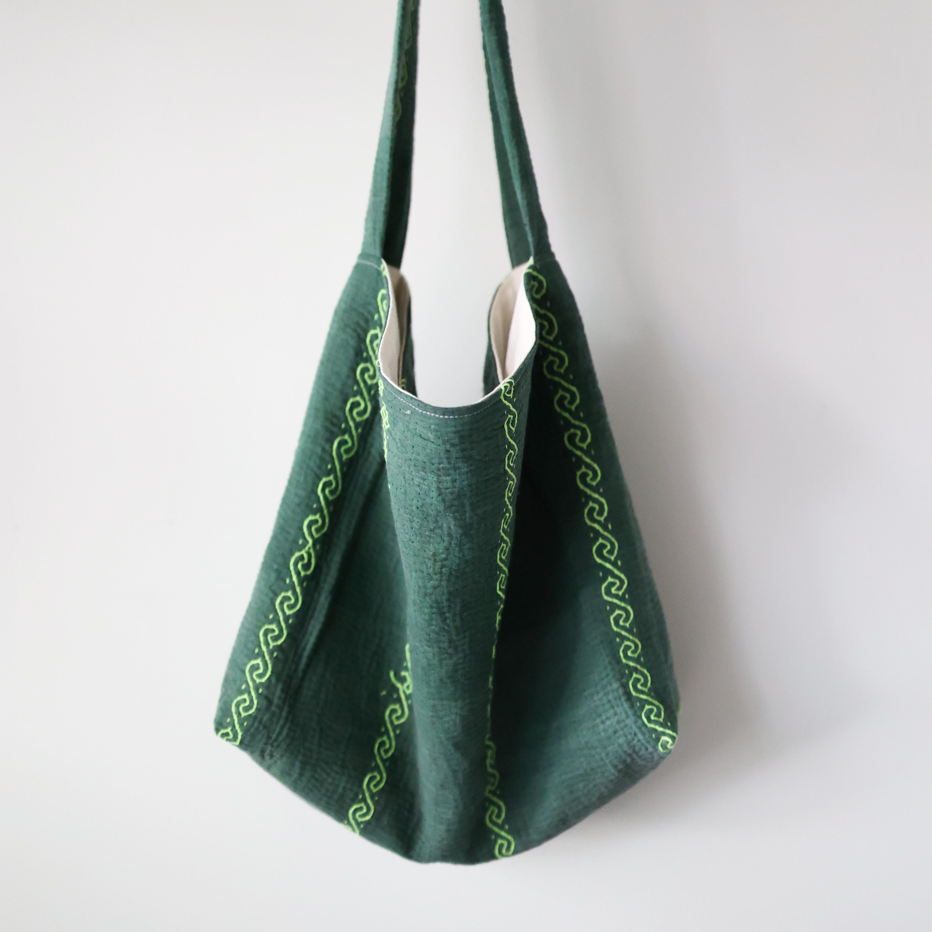 素晴らしいファブリックを用いて制作されたショルダーバッグ
