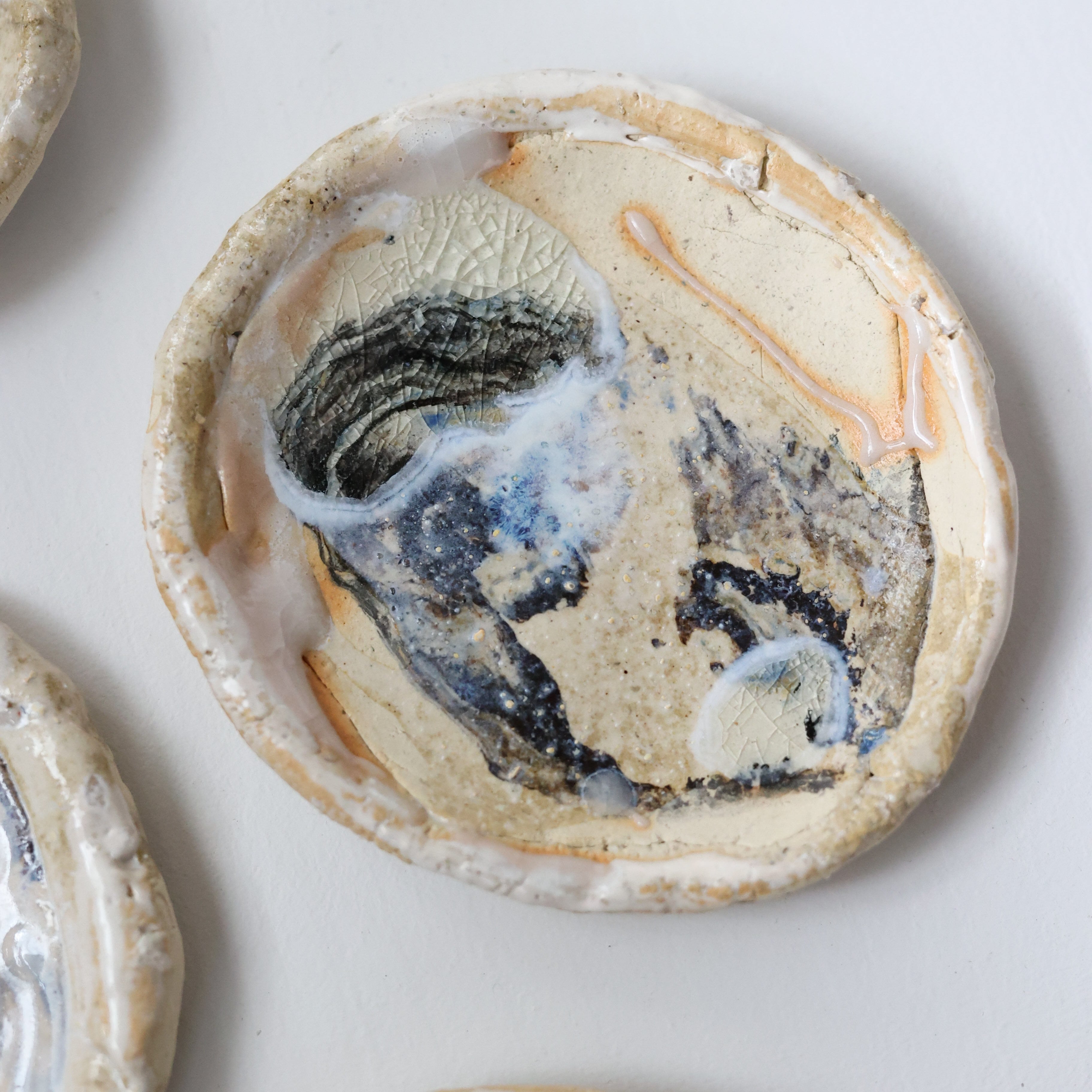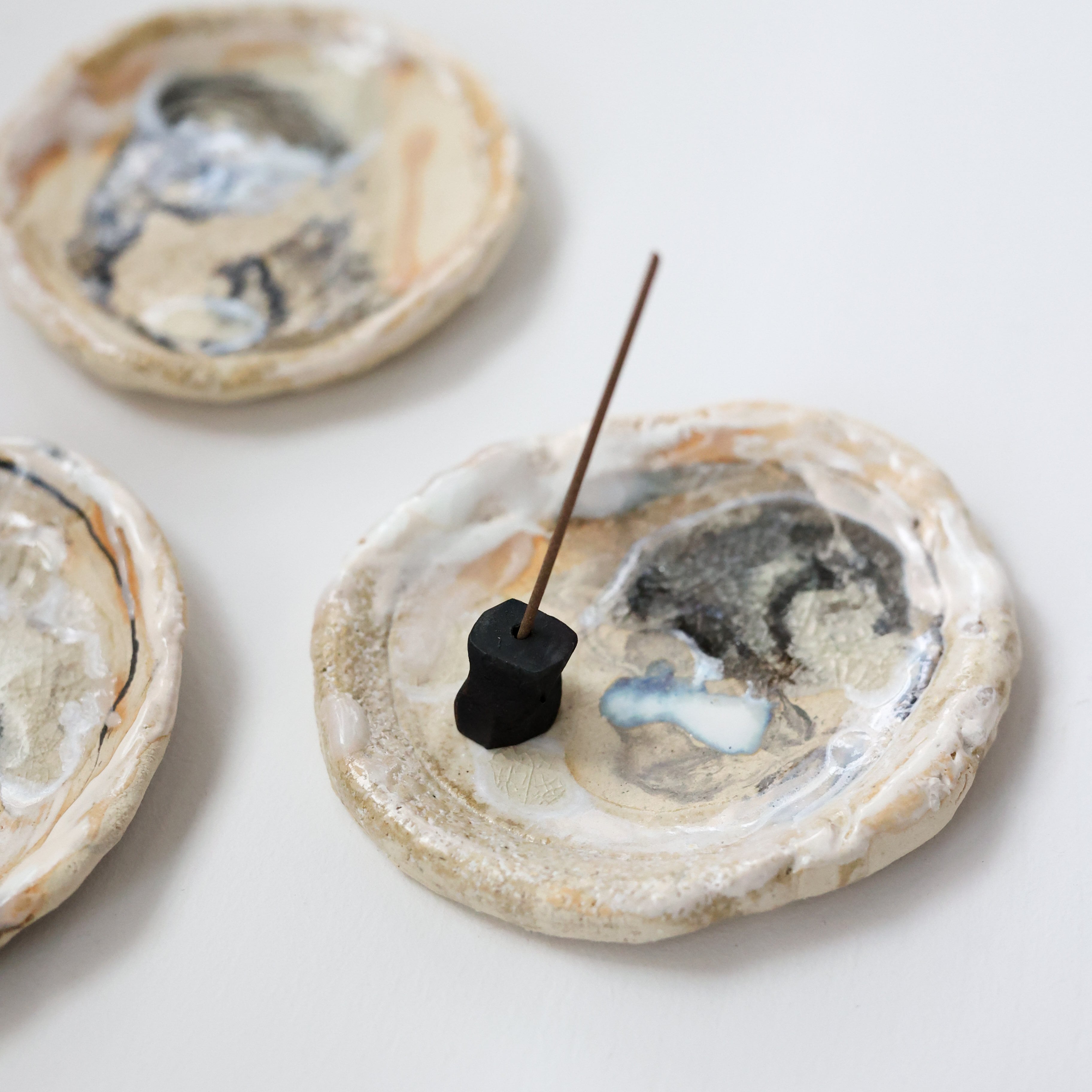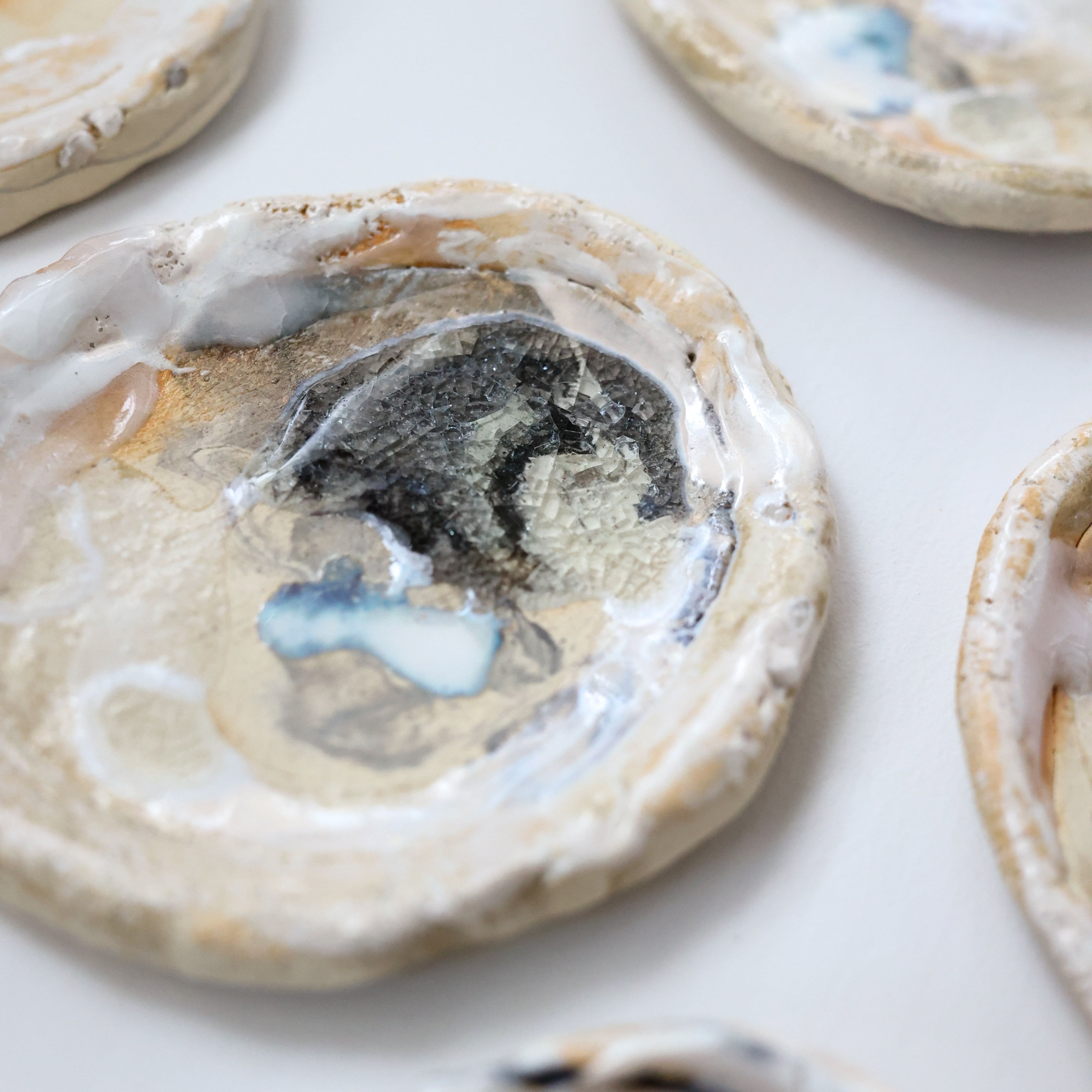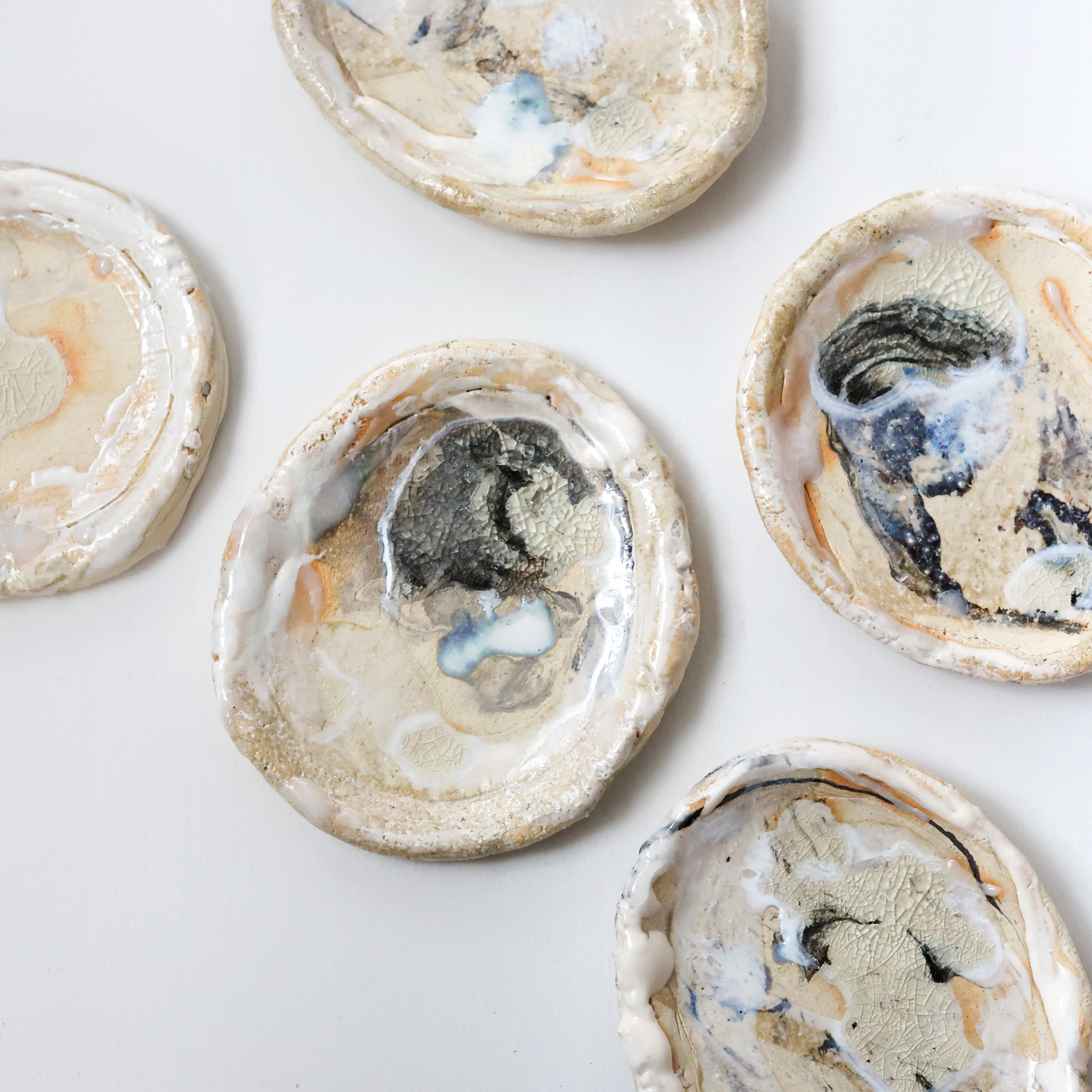 様々な釉薬によりマーブル調の