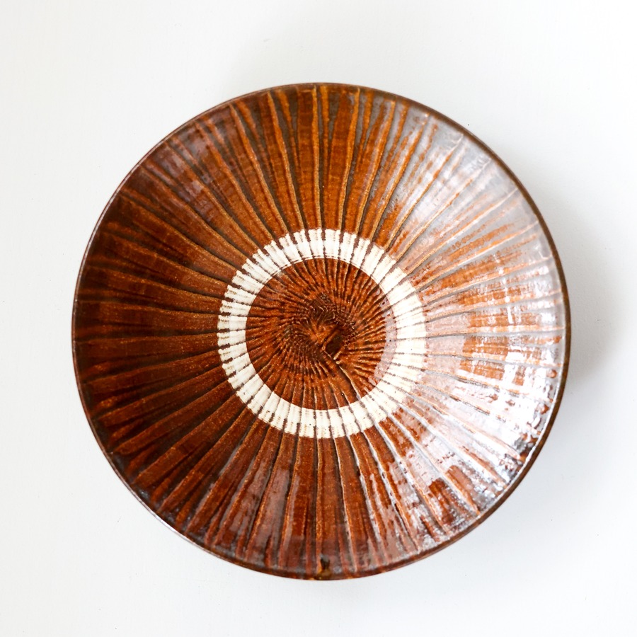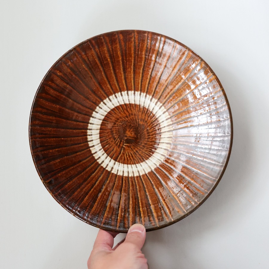 小鹿田焼 - 8寸皿 刷毛目 / 飴 (made in Japan)