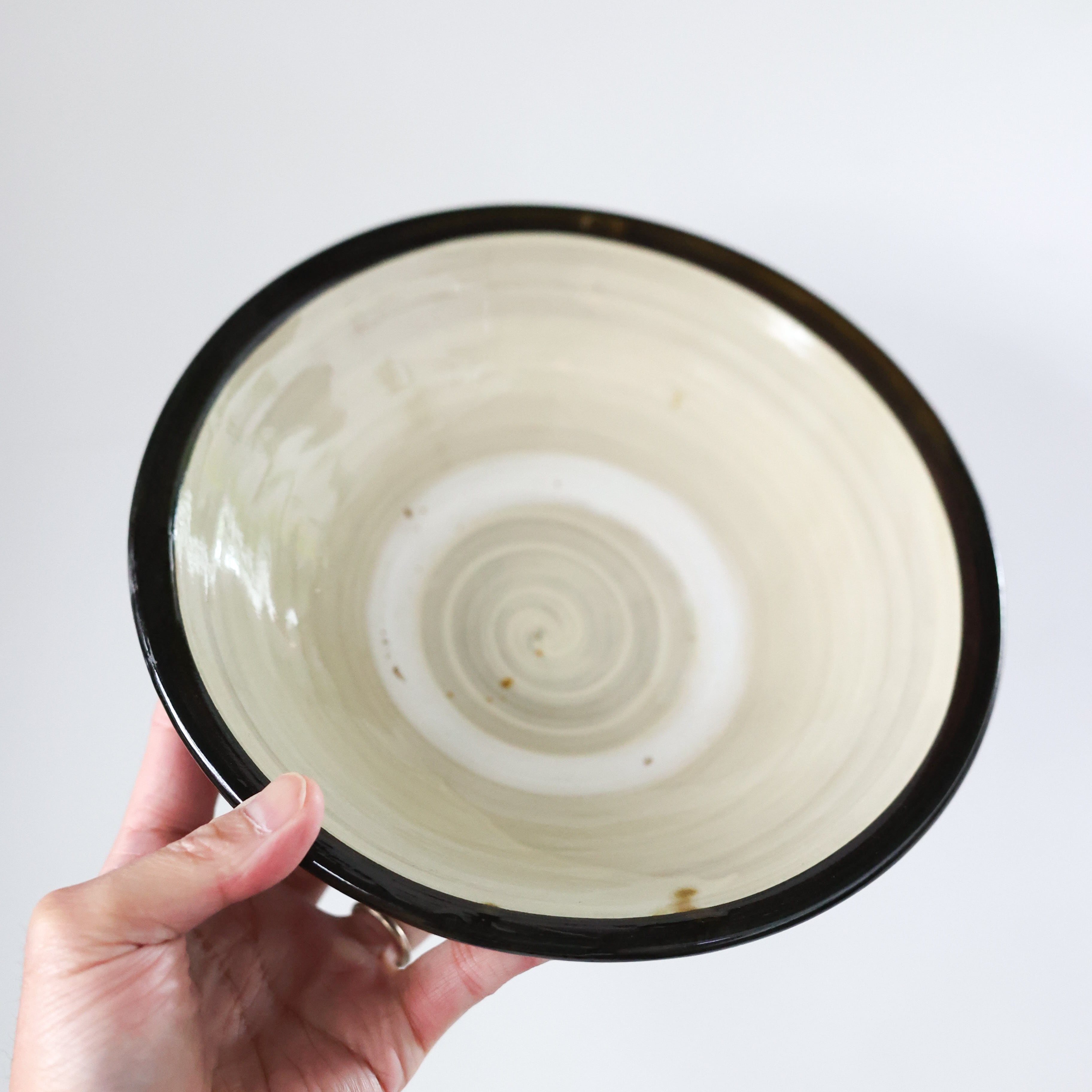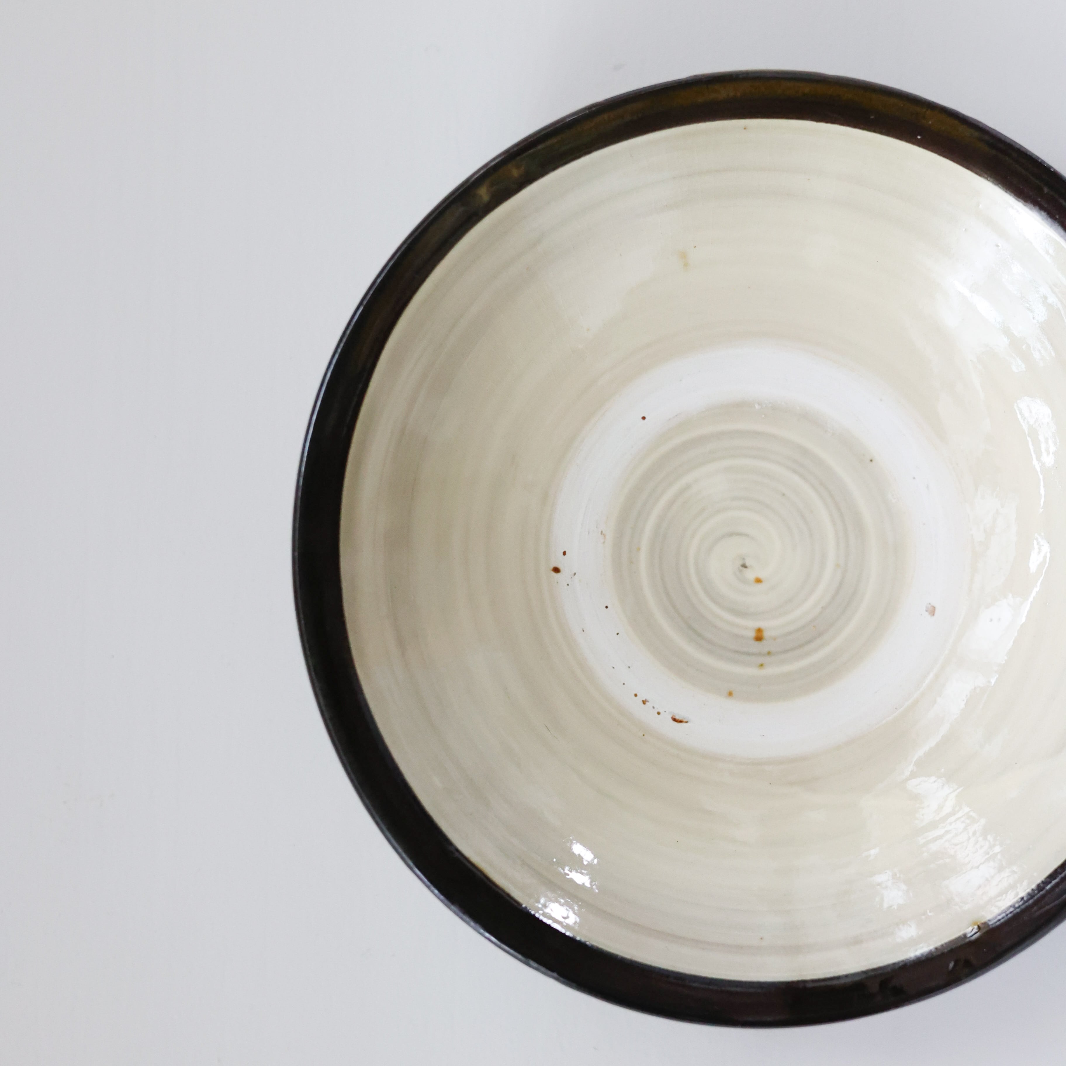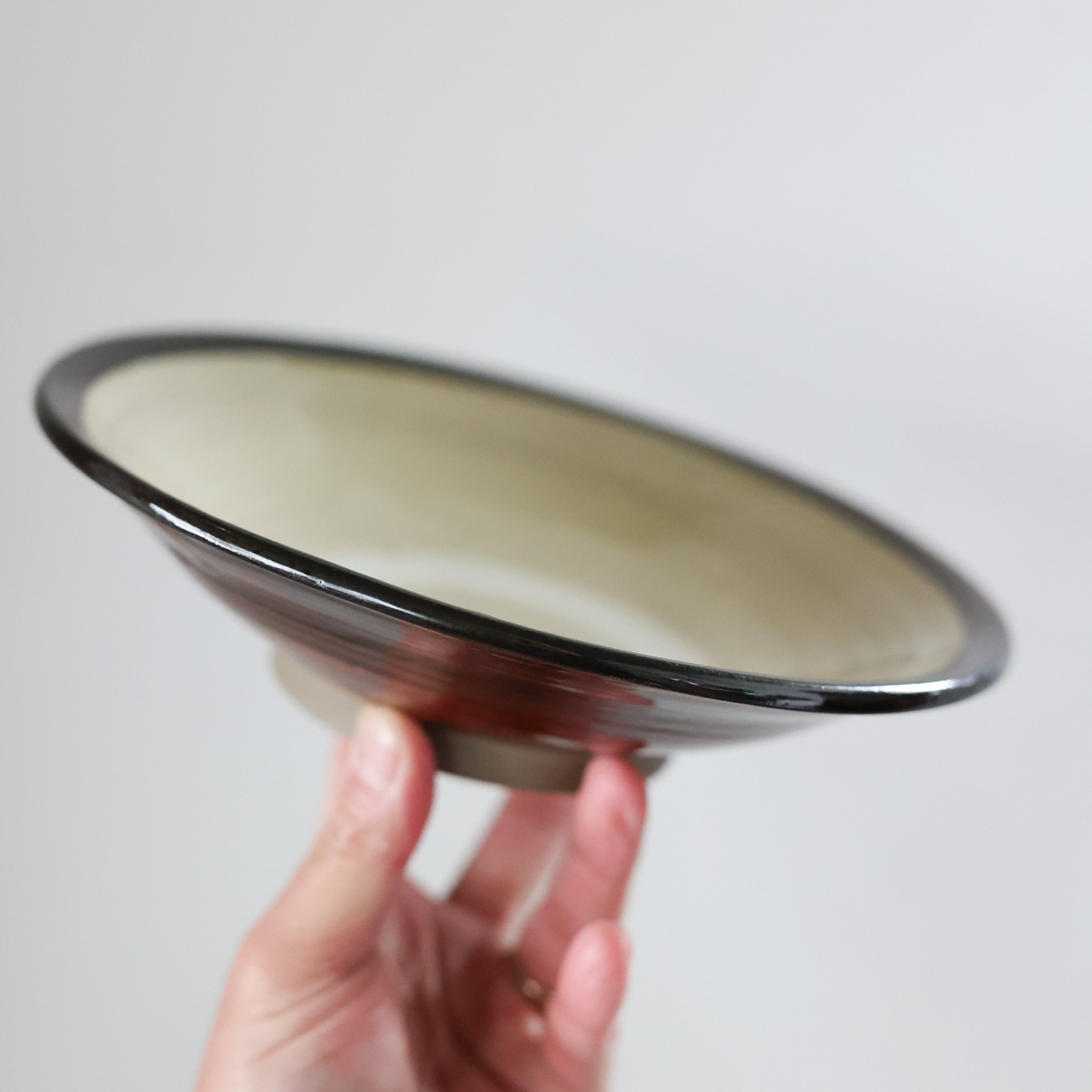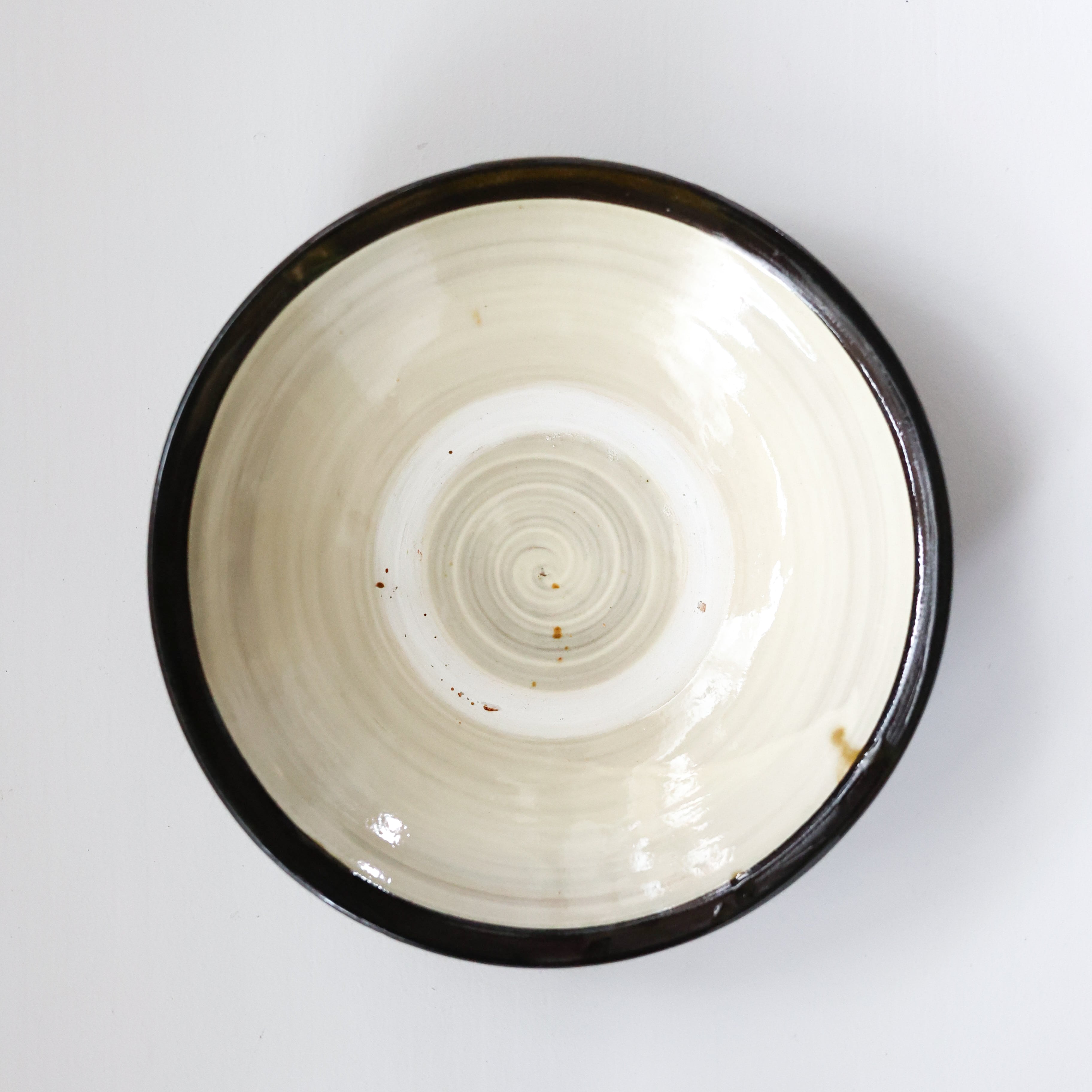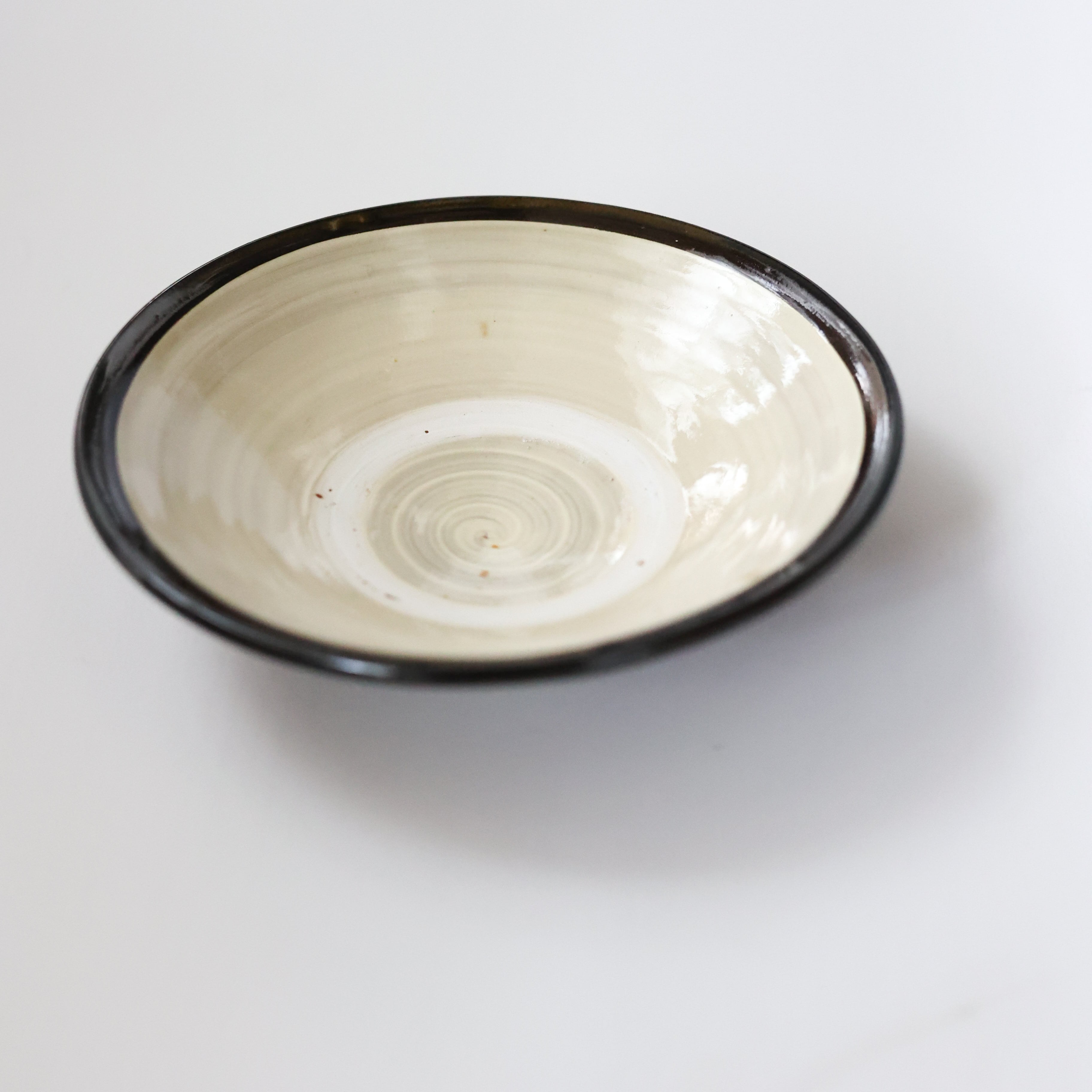 小鹿田焼 - 7寸深皿 フチ巻き / 白 (made in Japan)