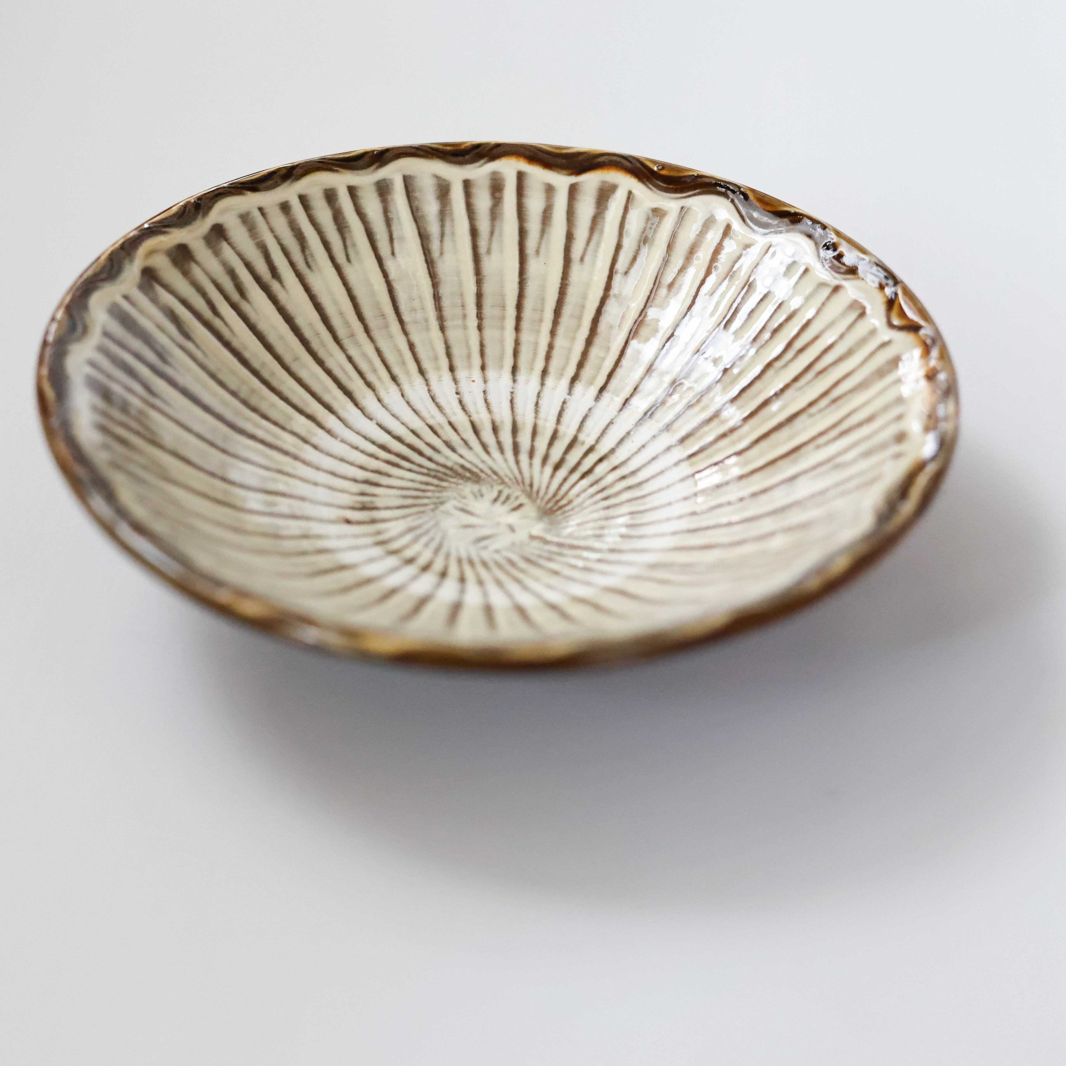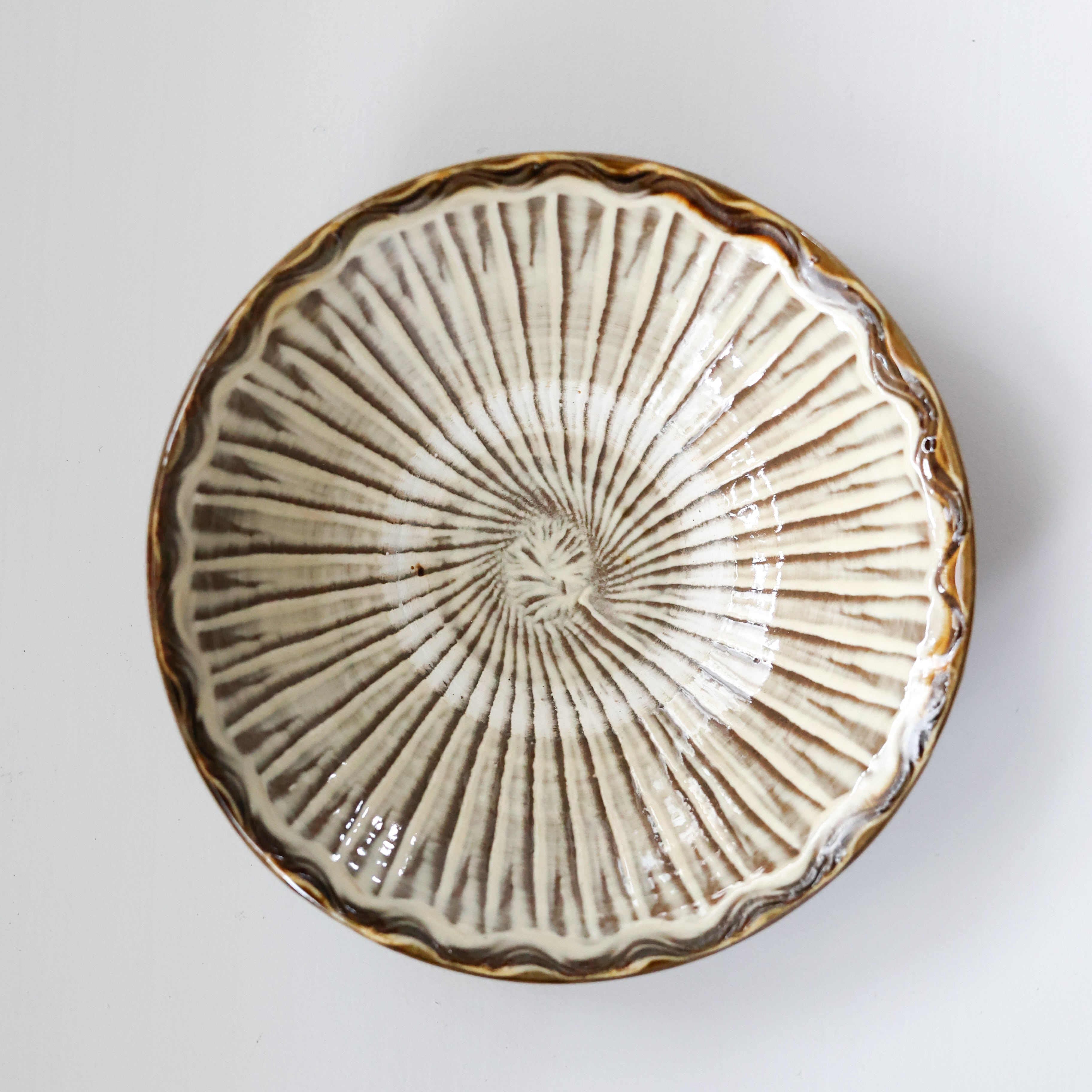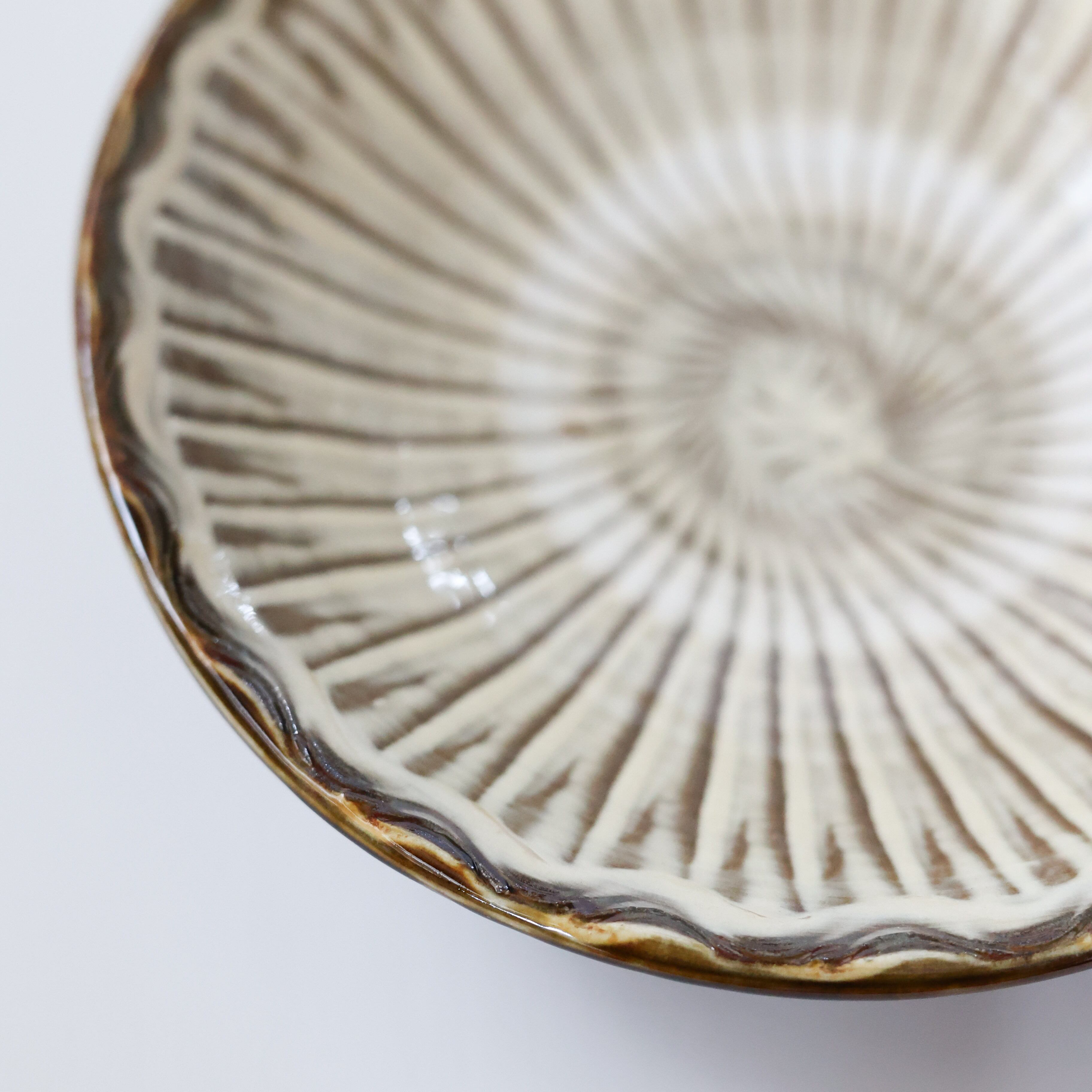小鹿田焼 - 7寸深皿 刷毛目 × 櫛描き / 白 (made in Japan)