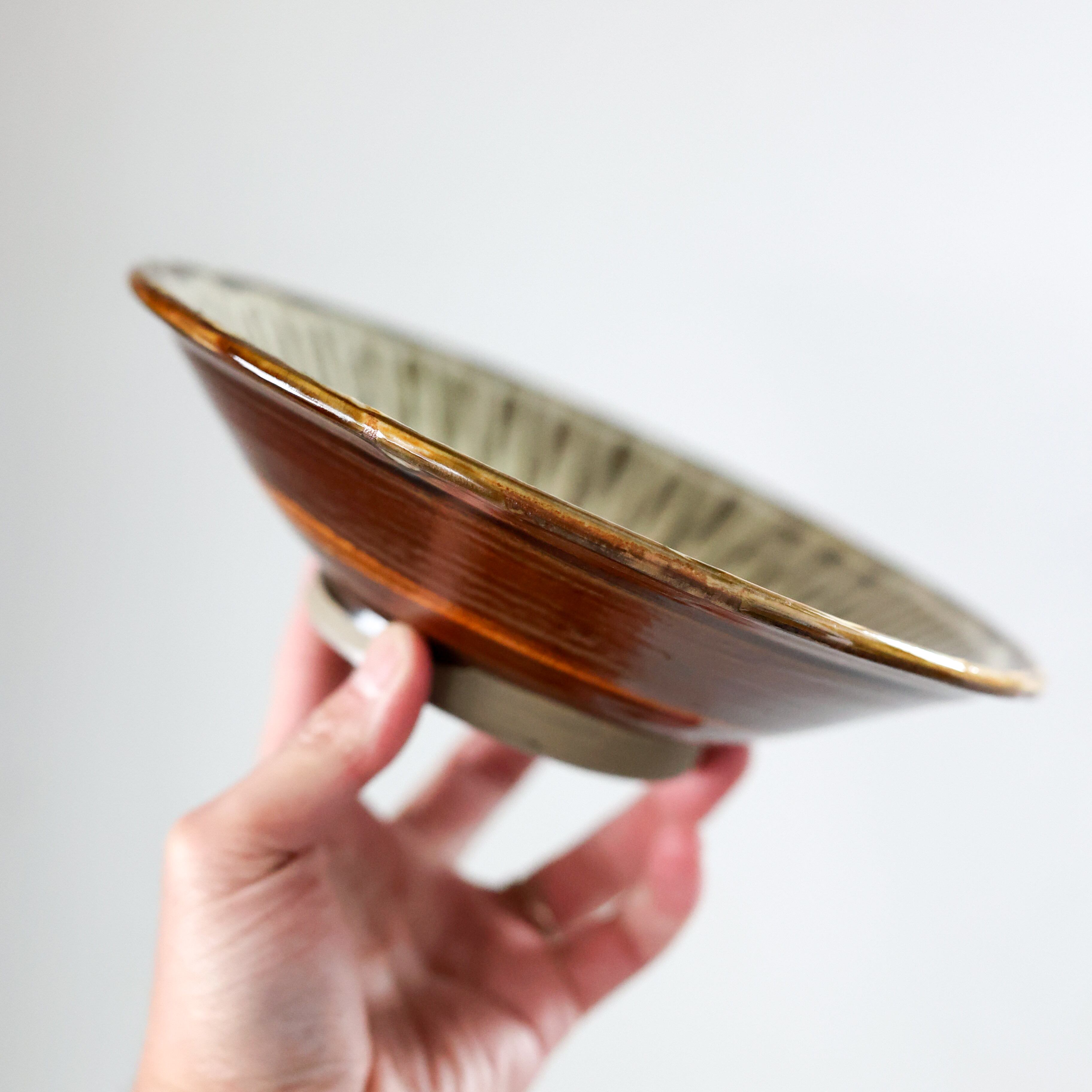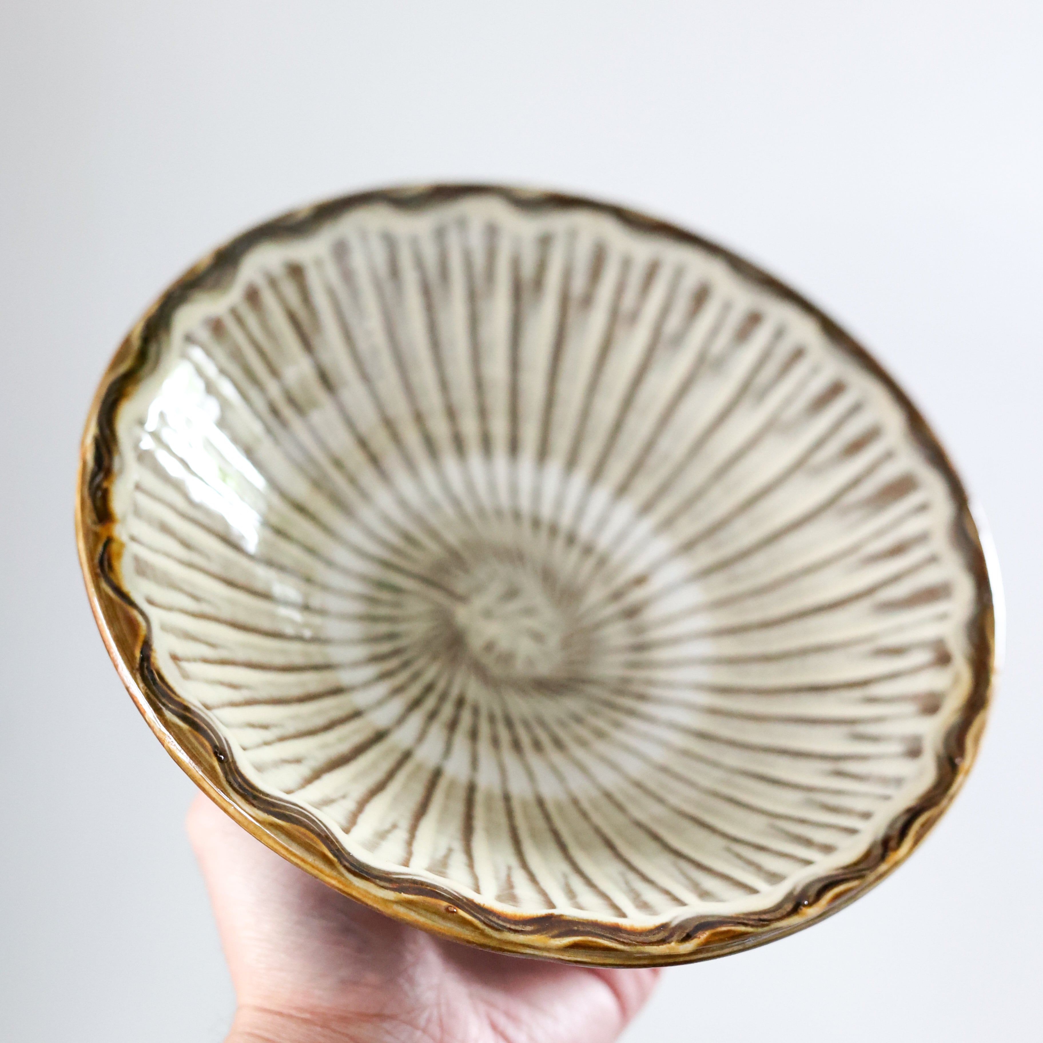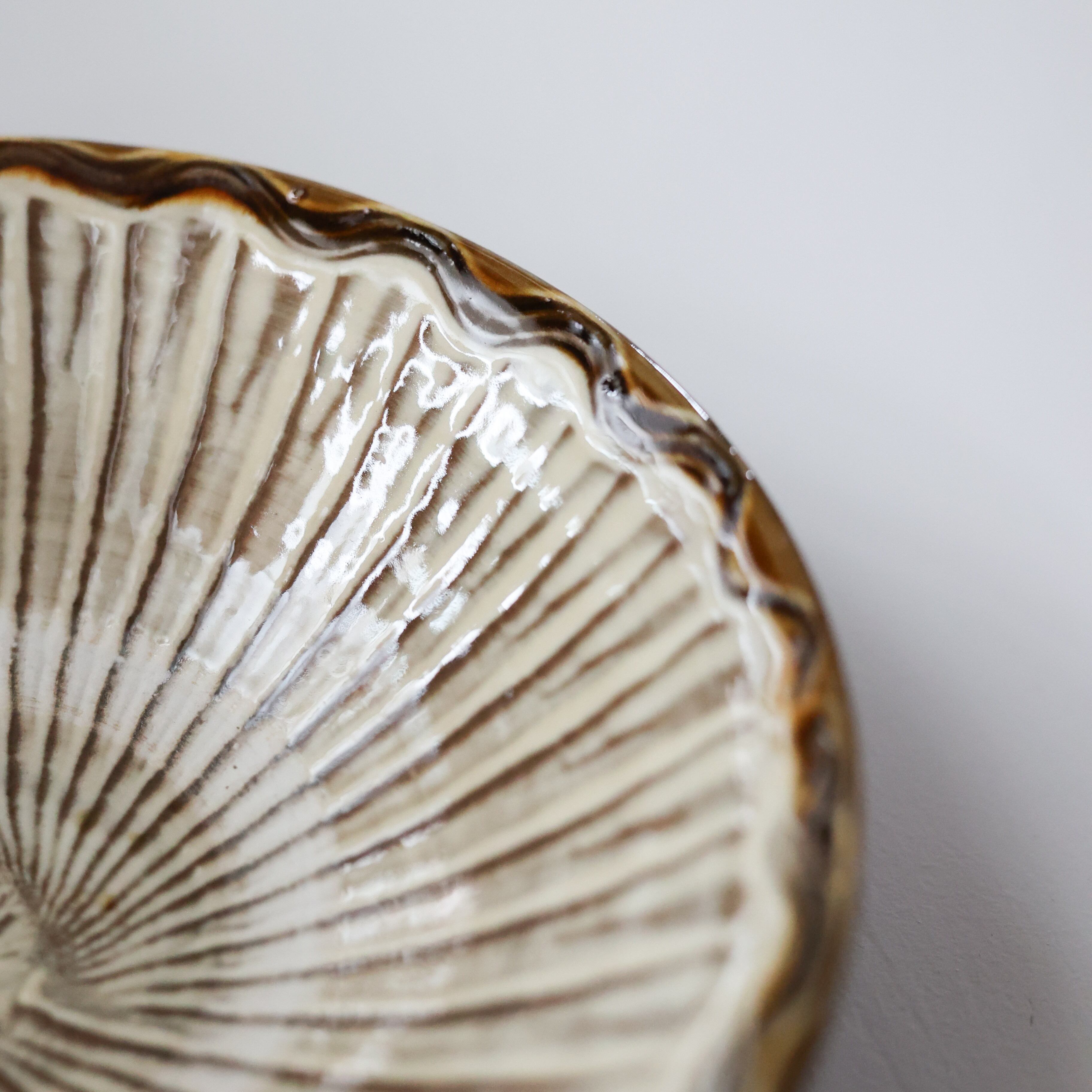 小鹿田焼 - 7寸深皿 刷毛目 × 櫛描き / 白 (made in Japan)
