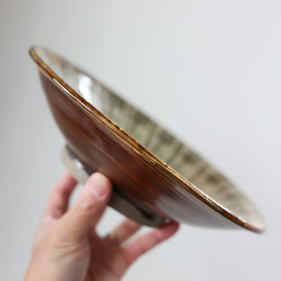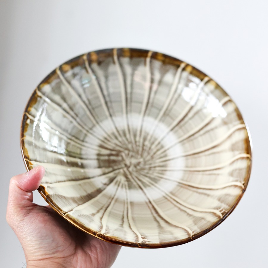 小鹿田焼 - 8寸深皿 刷毛目 / 白 (made in Japan)