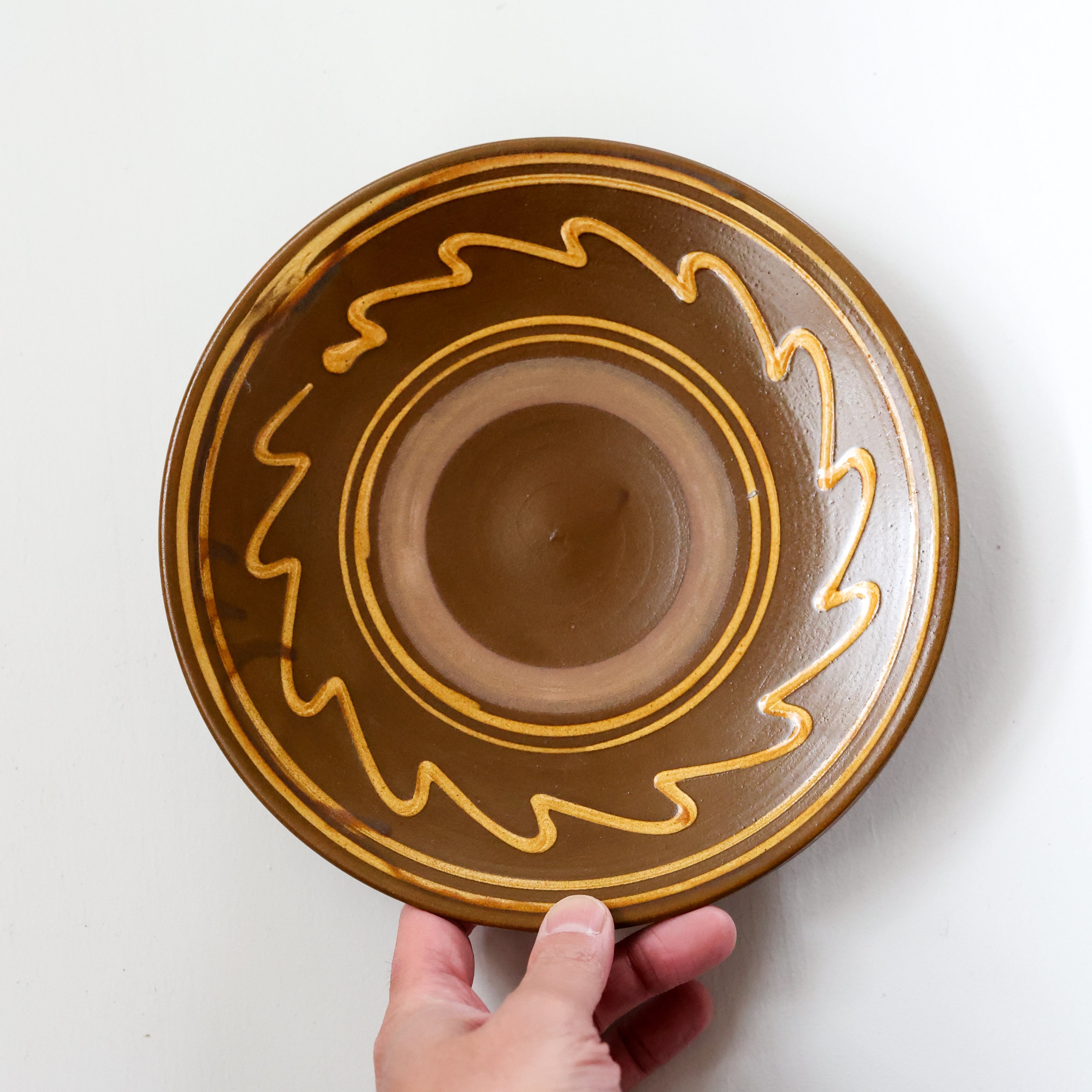 小鹿田焼 - 7寸皿 イッチン / 飴 (made in Japan)