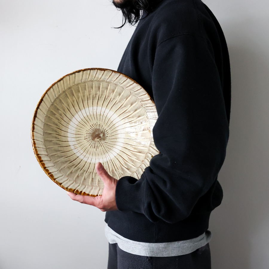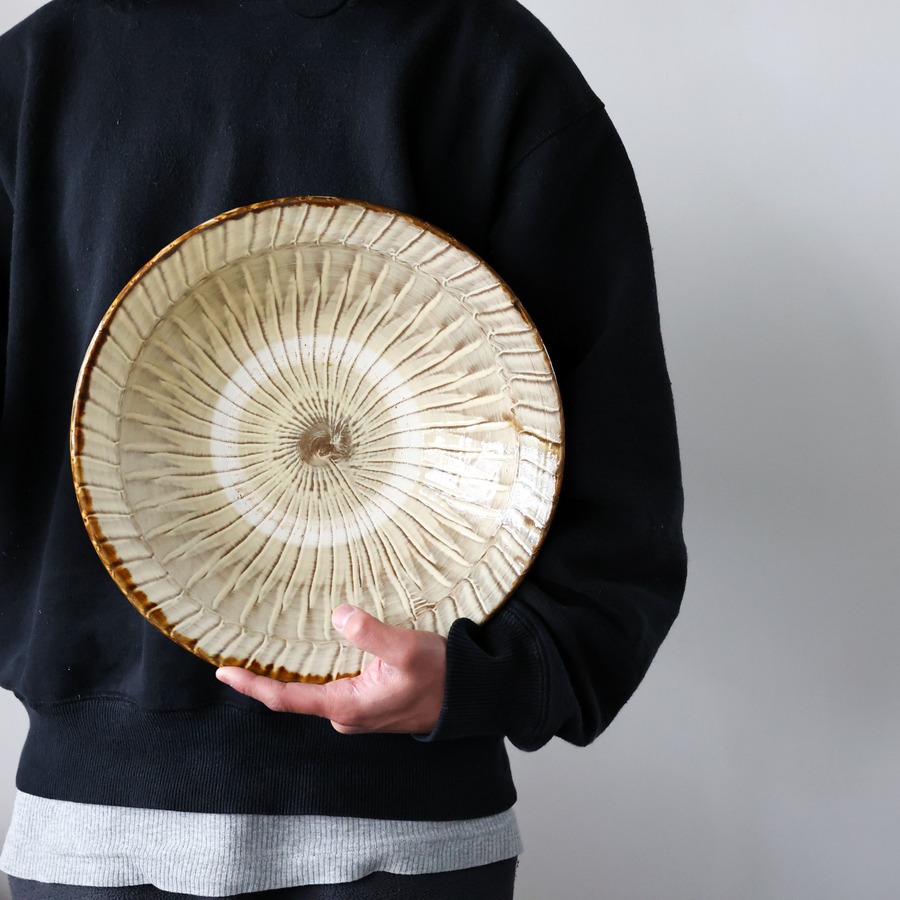小鹿田焼 - 尺皿 刷毛目 / 白 (made in Japan)