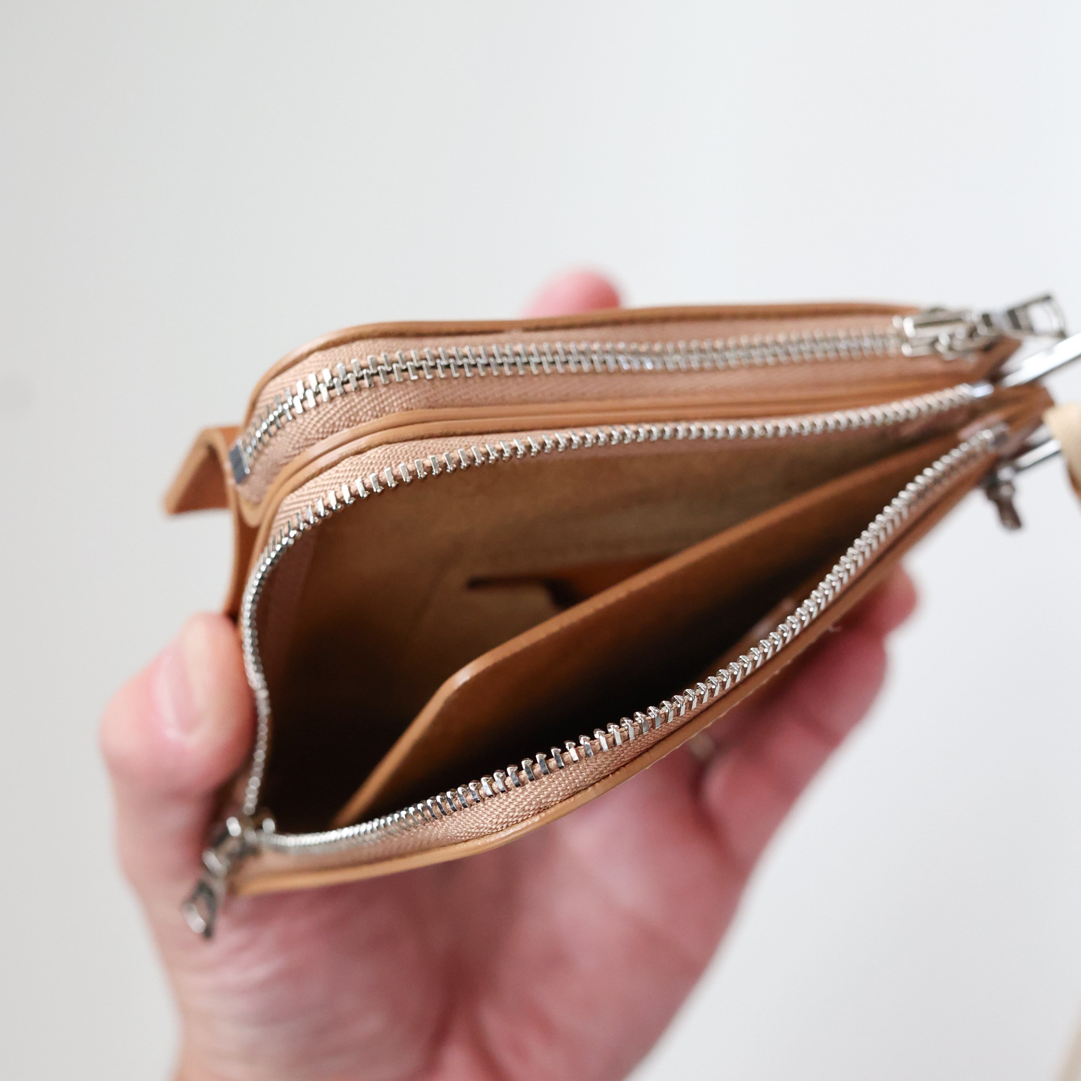 JINMON - Container Wallet - 3room / Tan ( made in Japan )