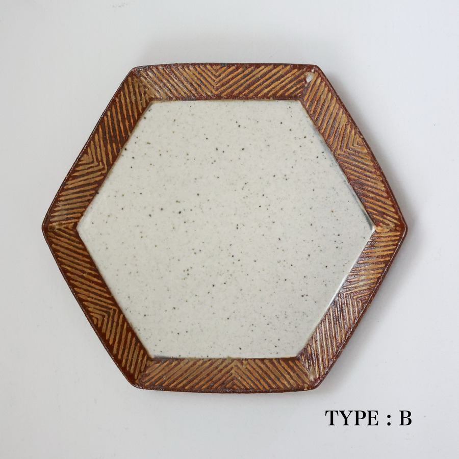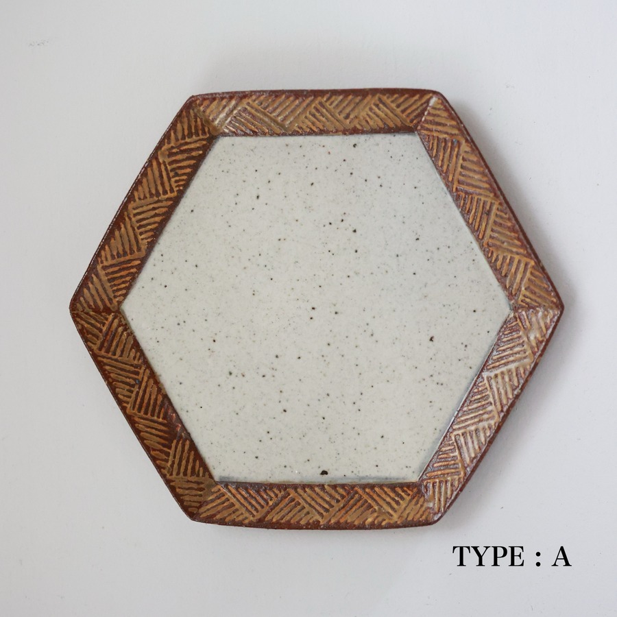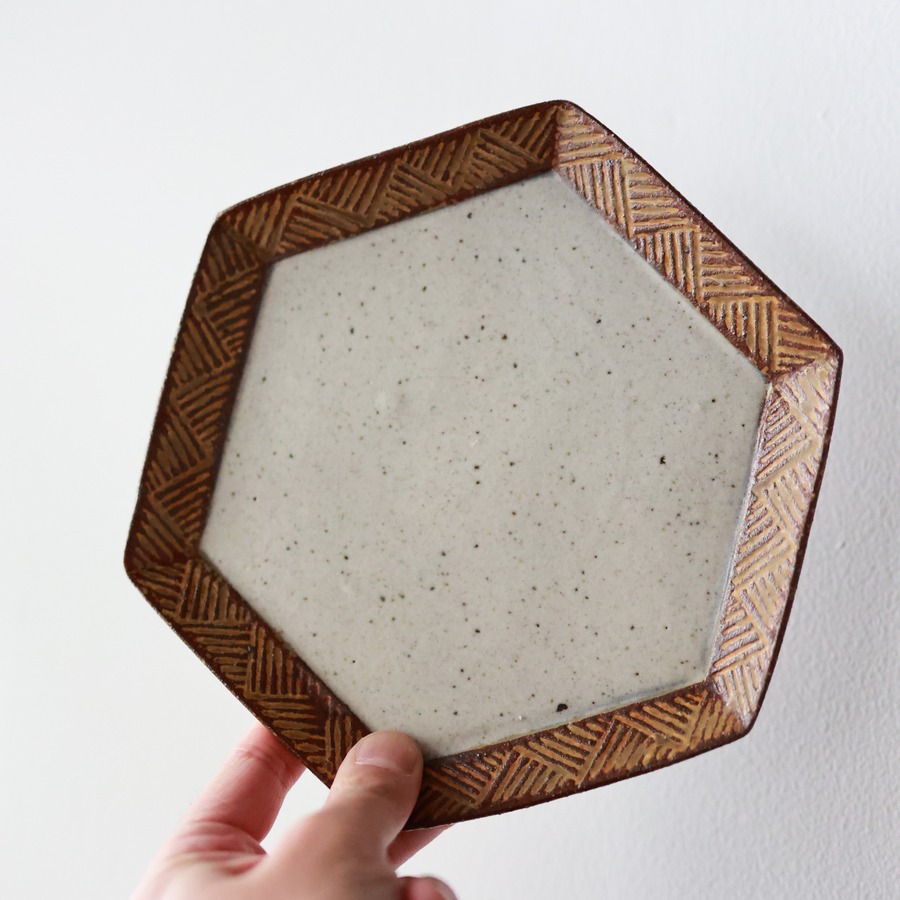 羅以音窯 - アフリカ彫刻 六角平皿 (made in Japan)