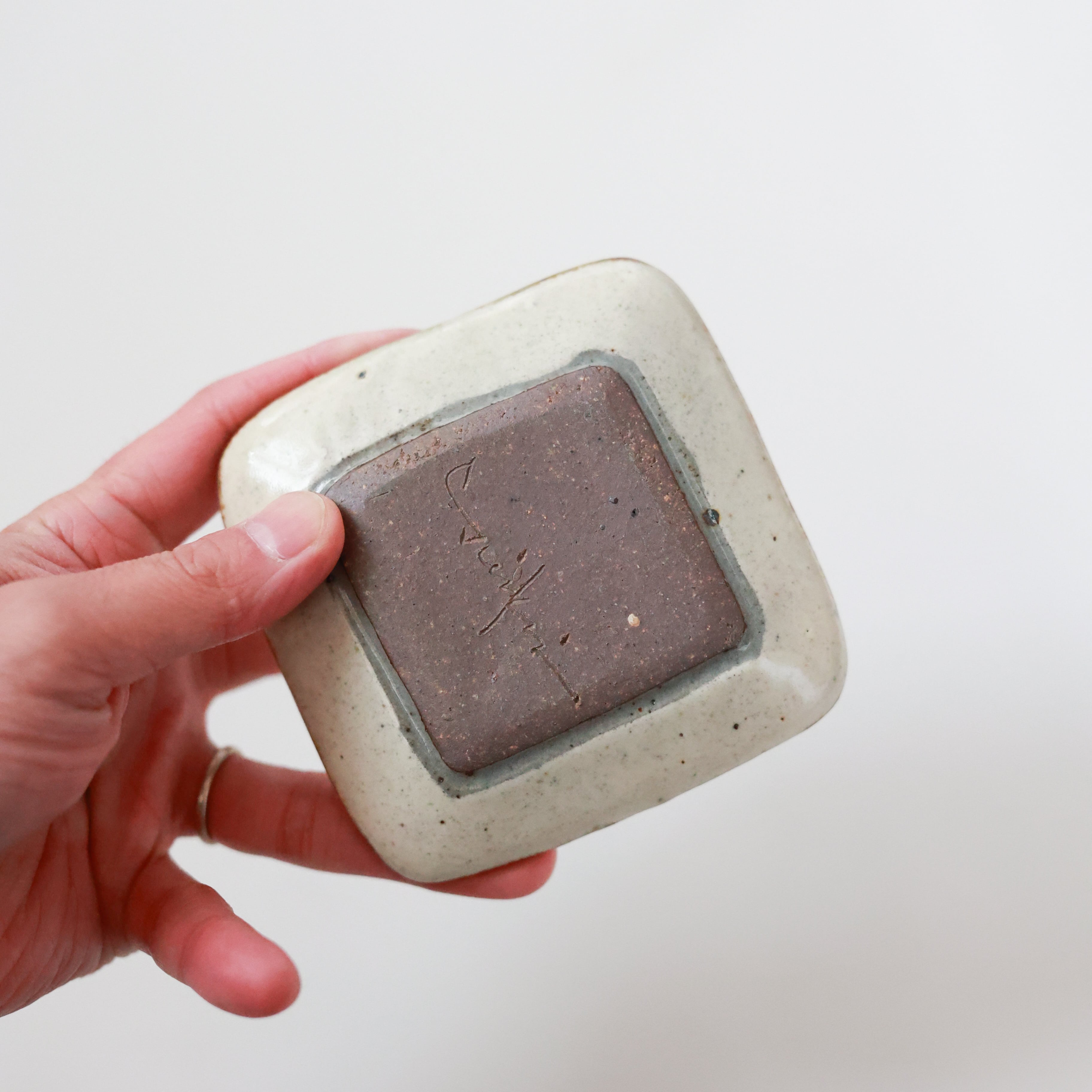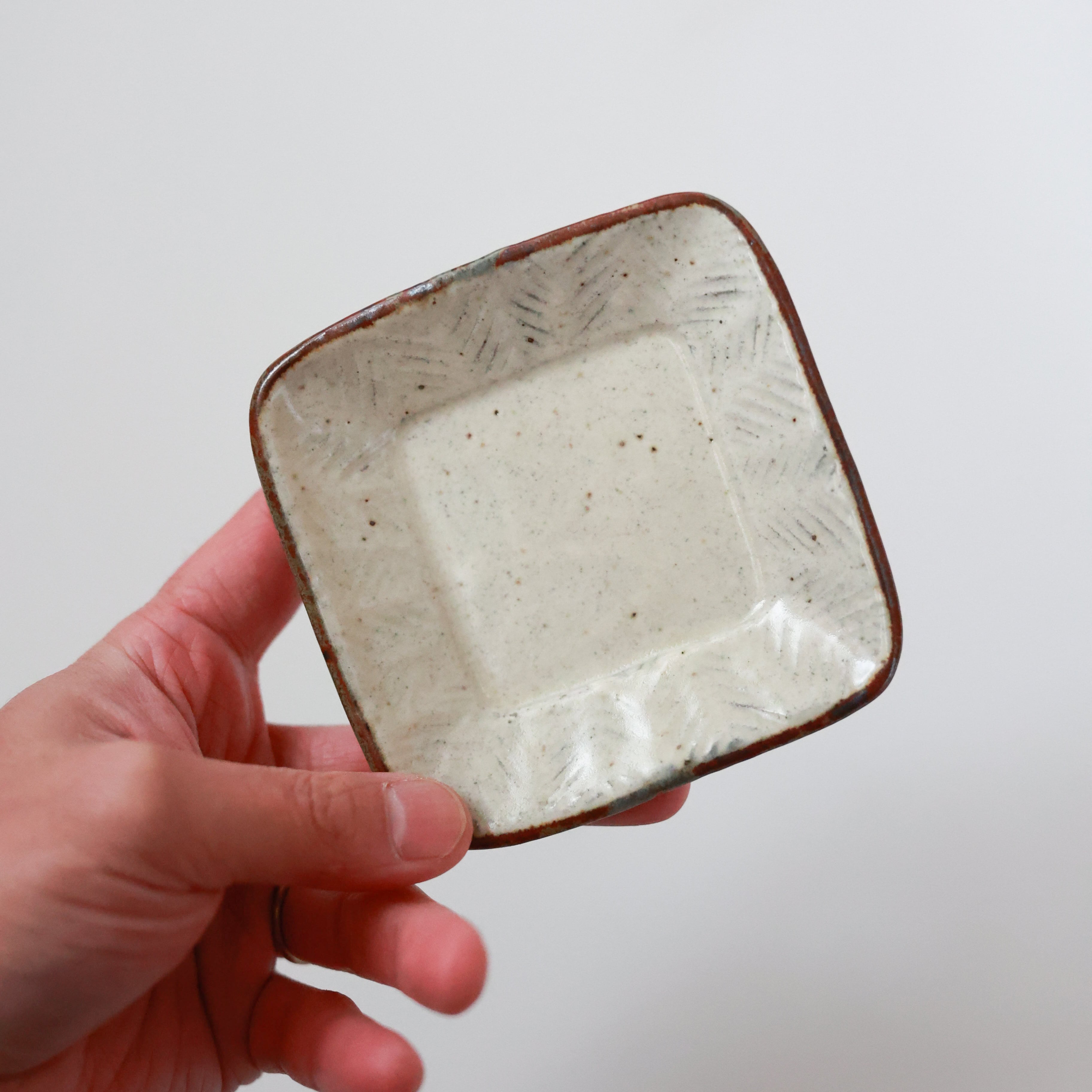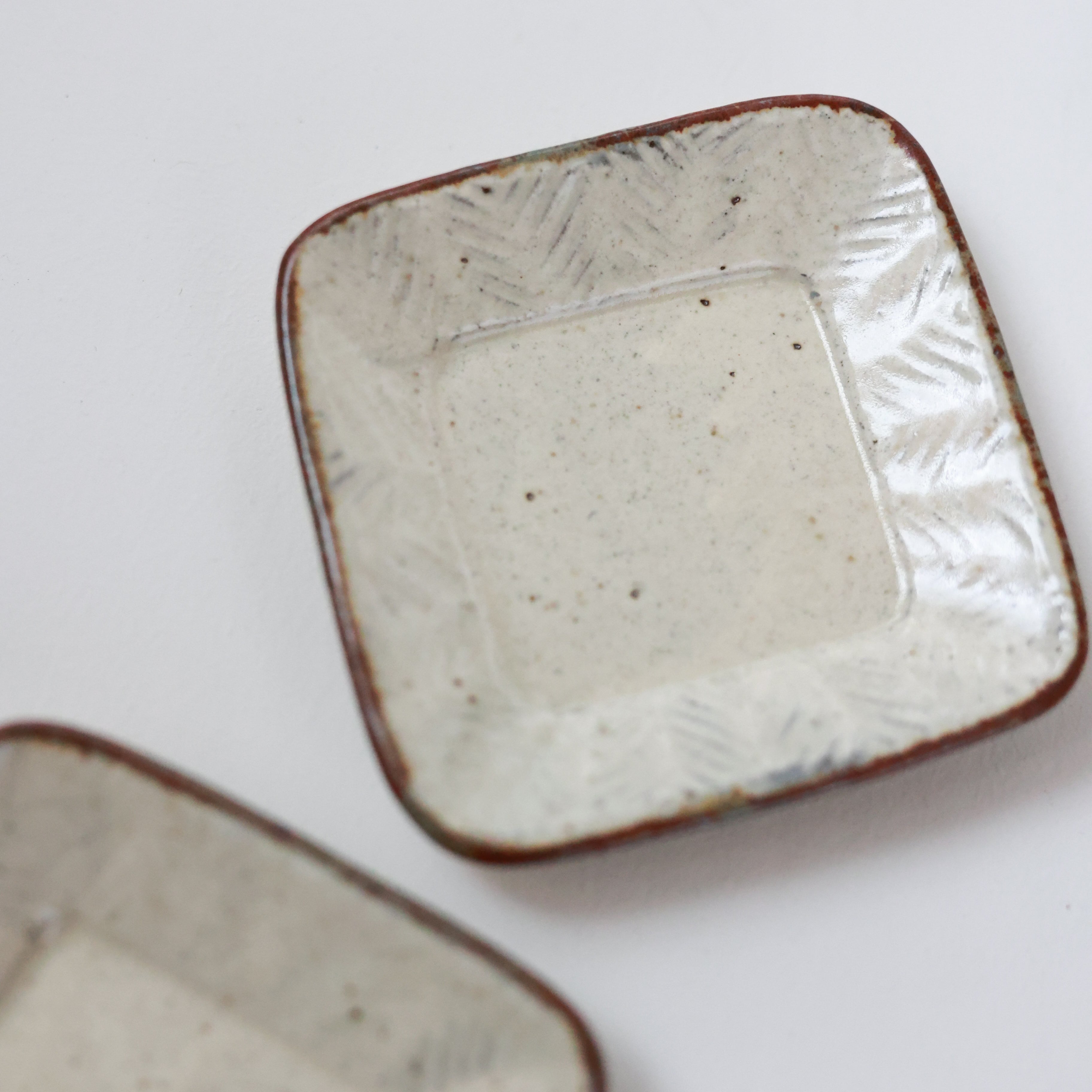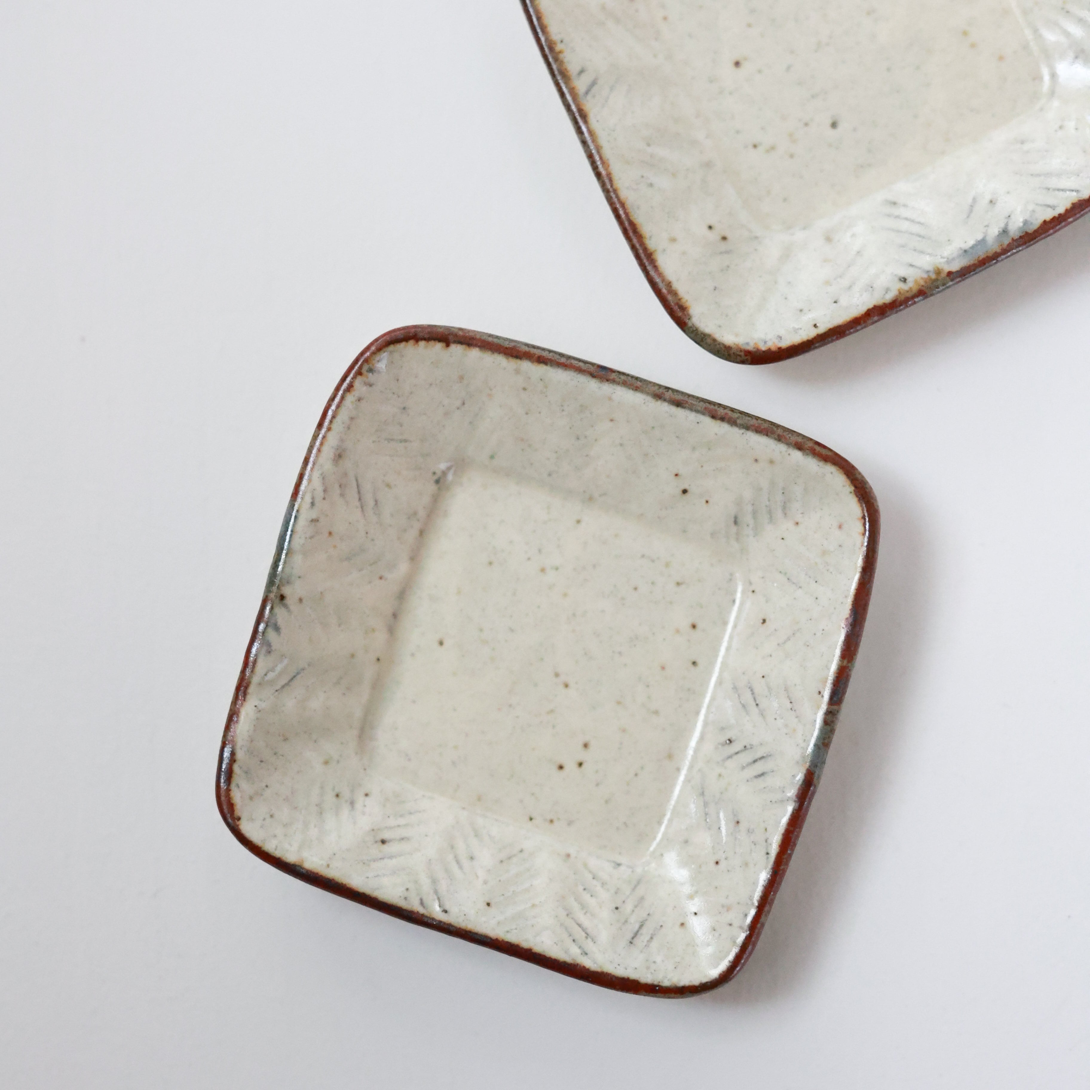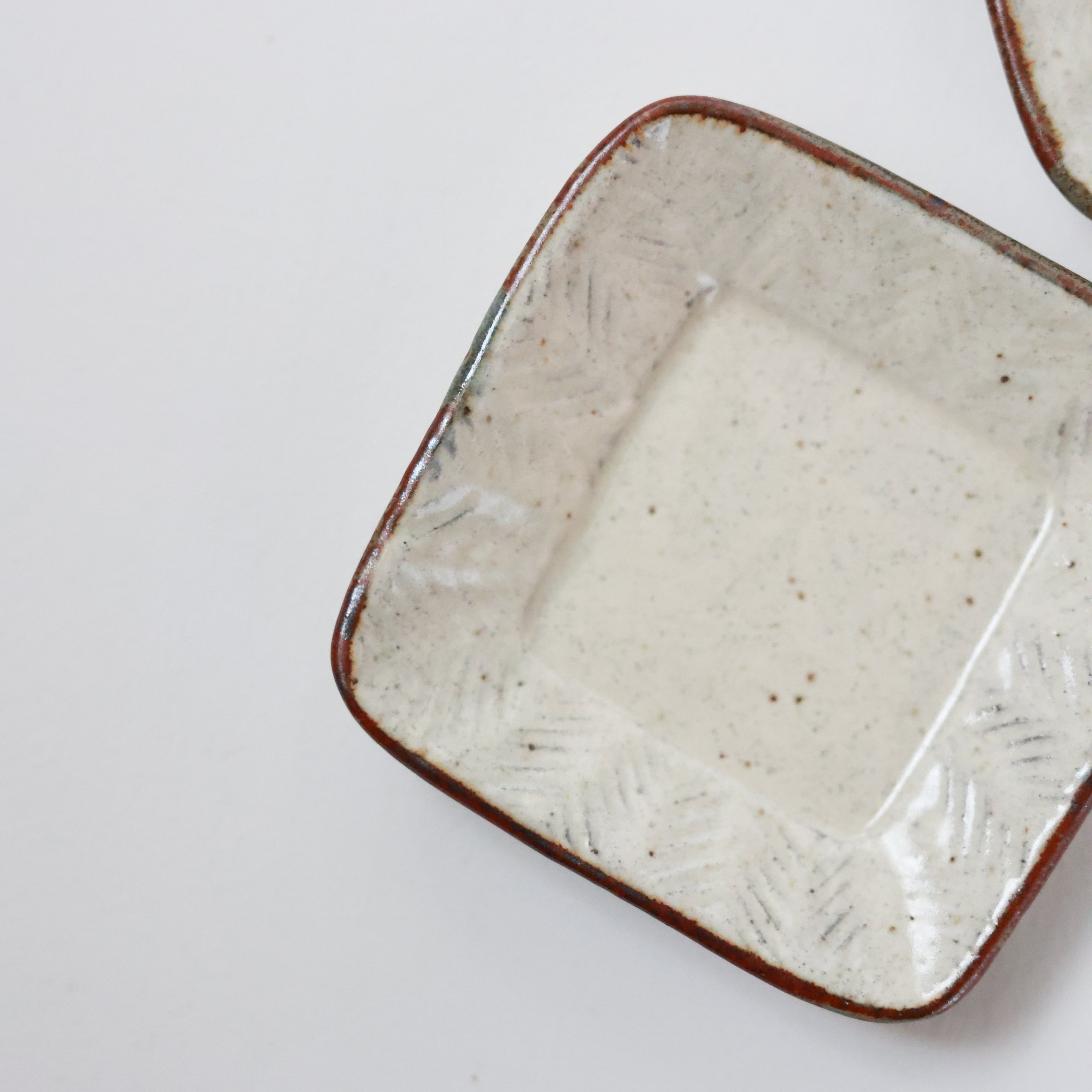 羅以音窯 - 彫粉引 四方豆皿 (made in Japan)