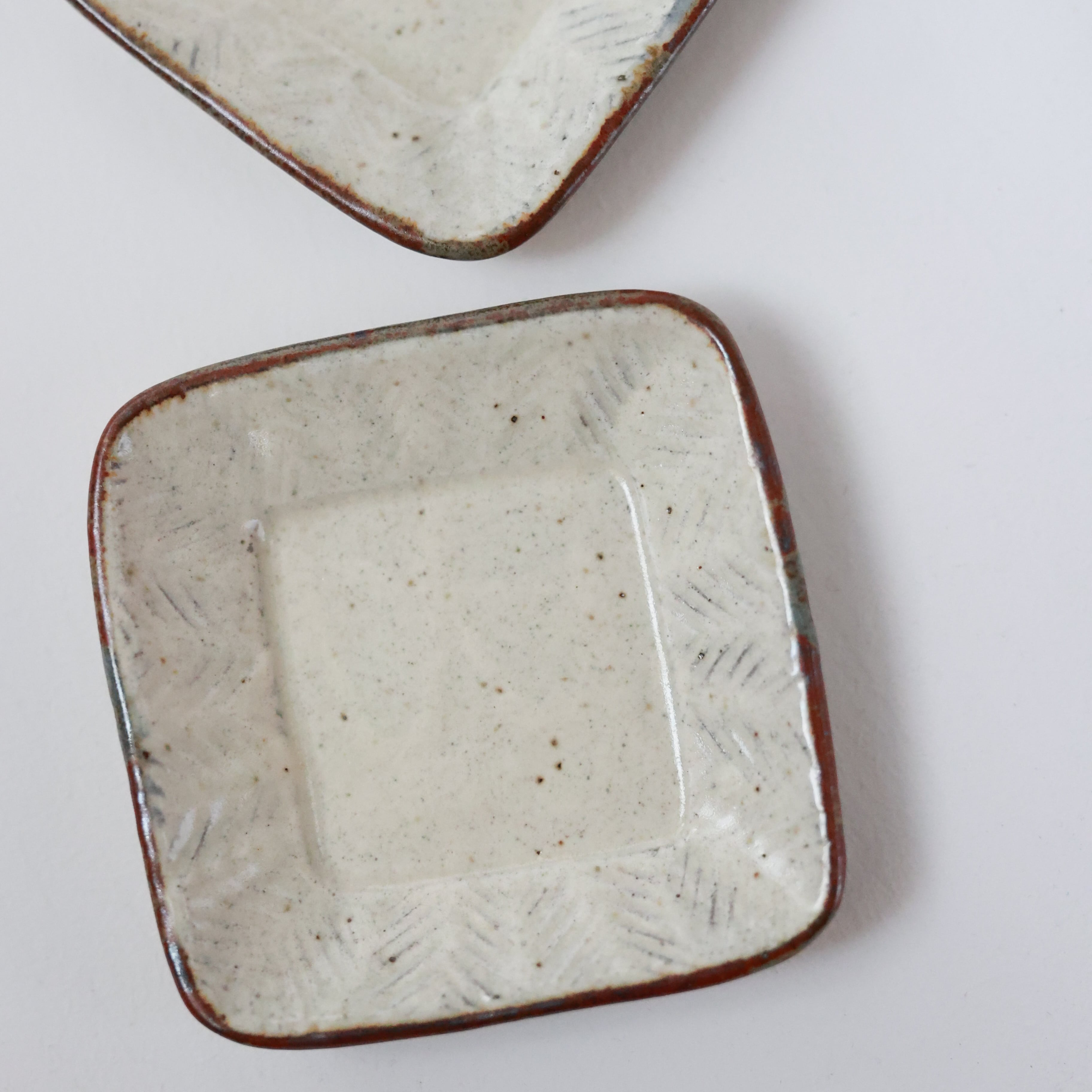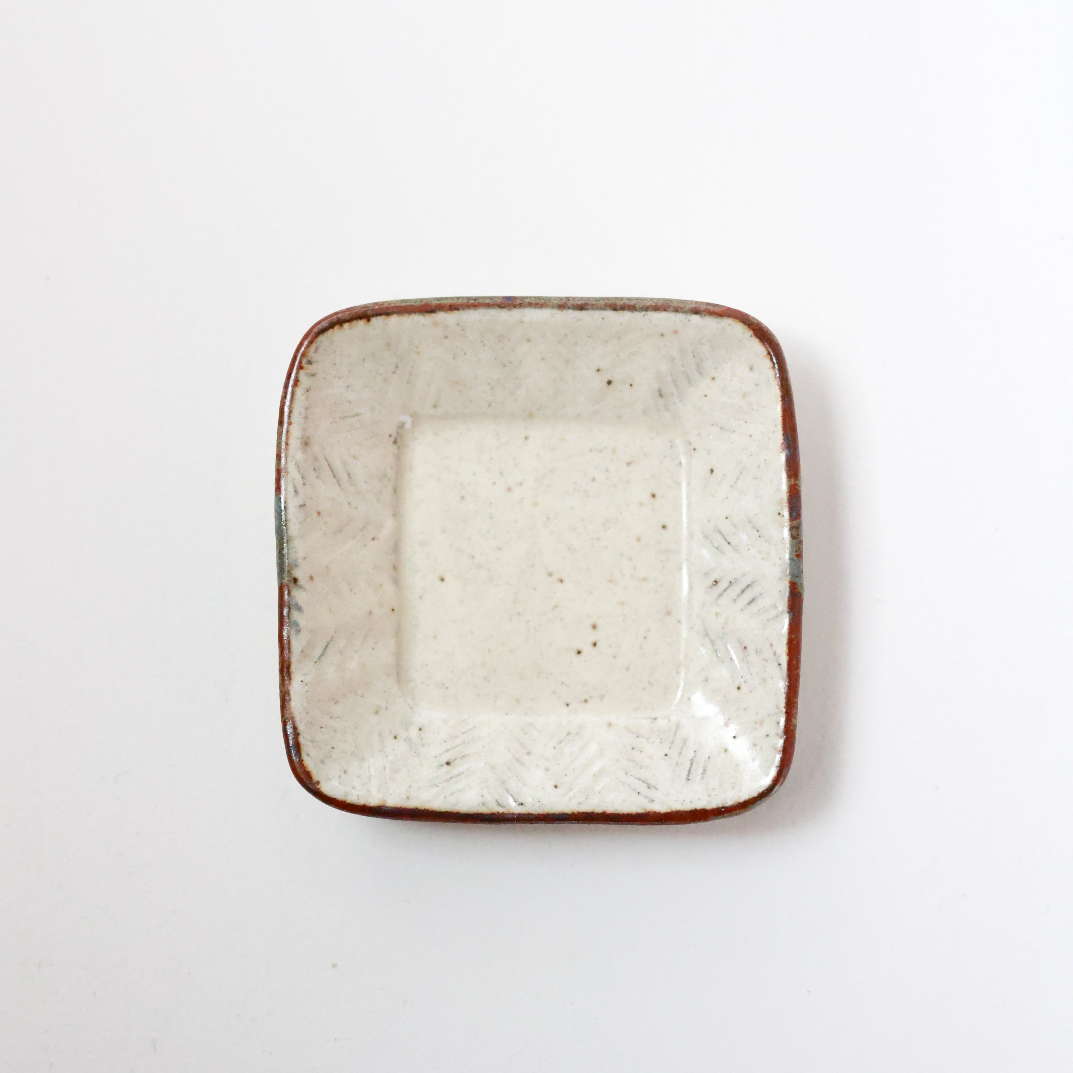 彫粉引 四方豆皿