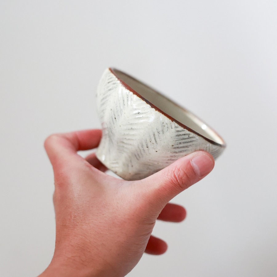 彫粉引 めし碗 / 小