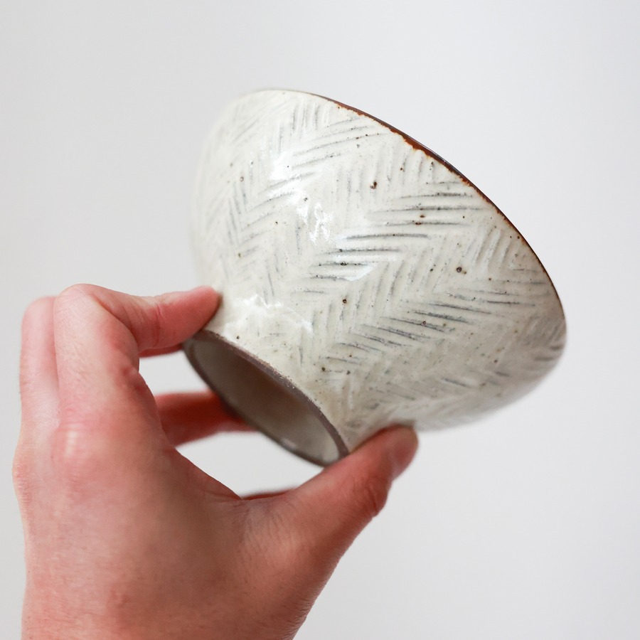 羅以音窯 - 彫粉引 めし碗 (made in Japan)