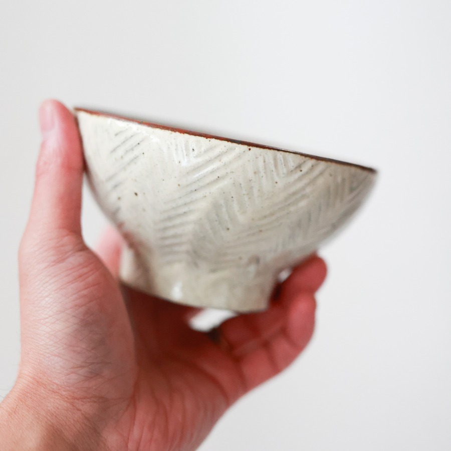彫粉引 めし碗