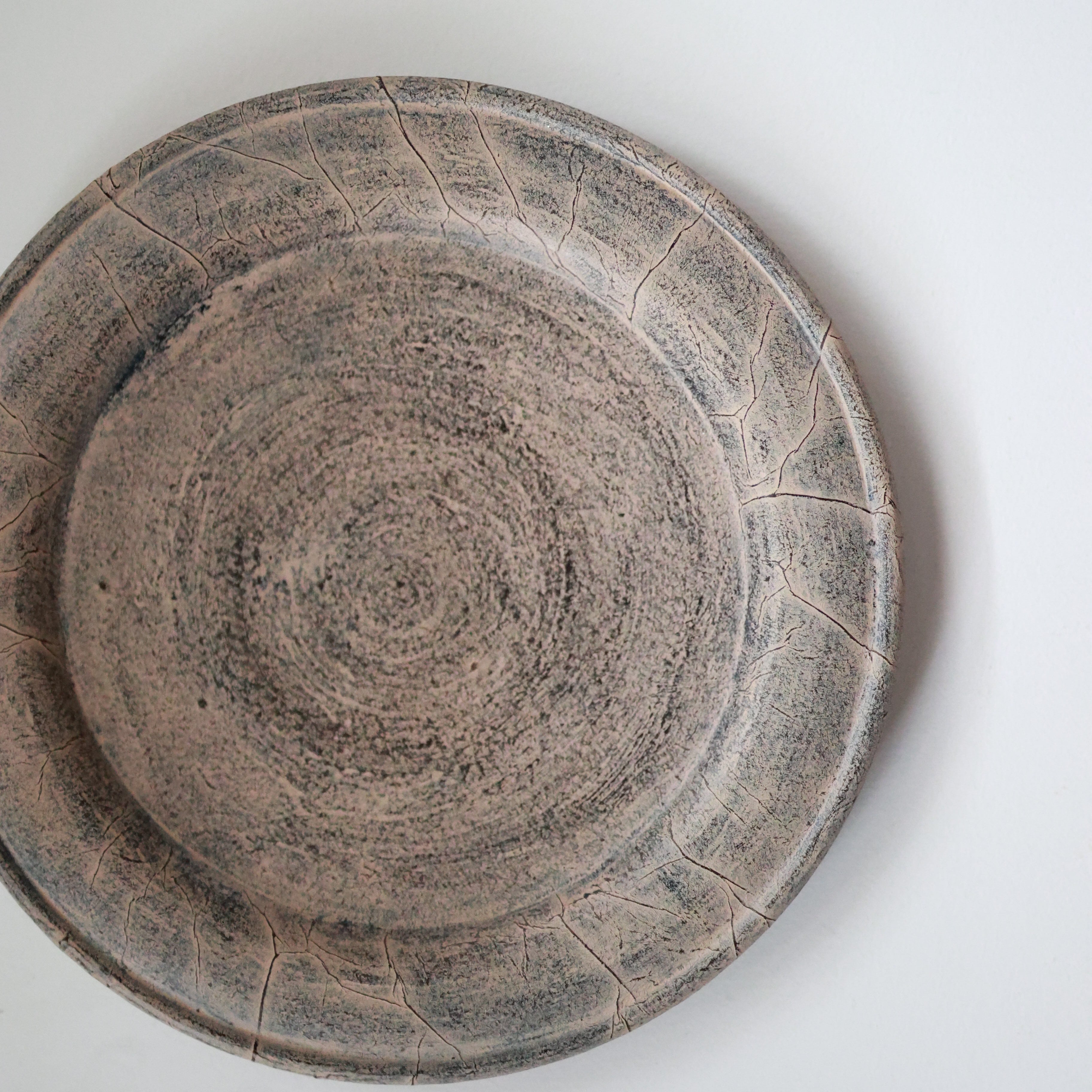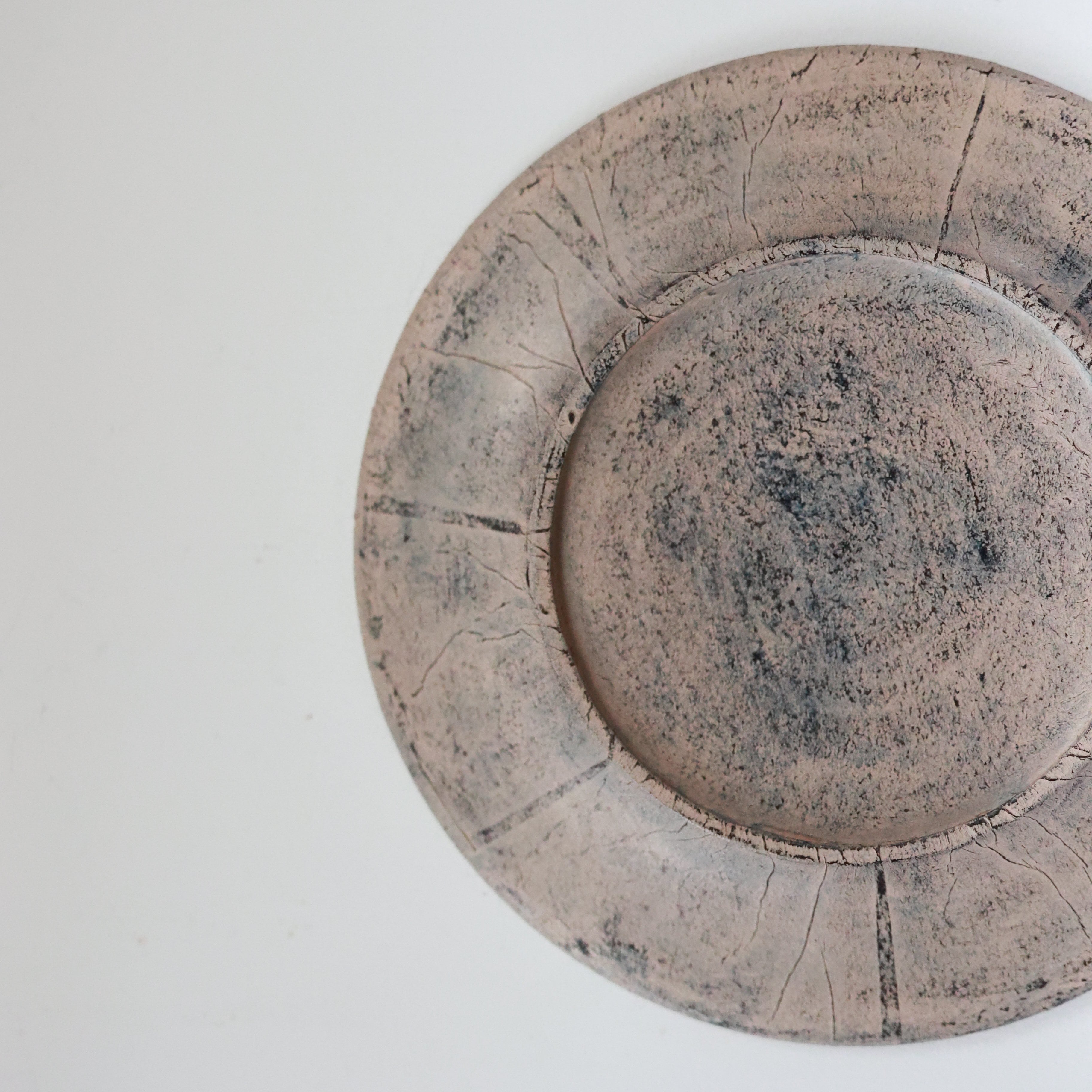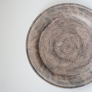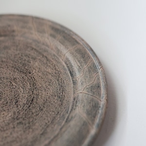 荒れた土肌のような表情を持つリム皿