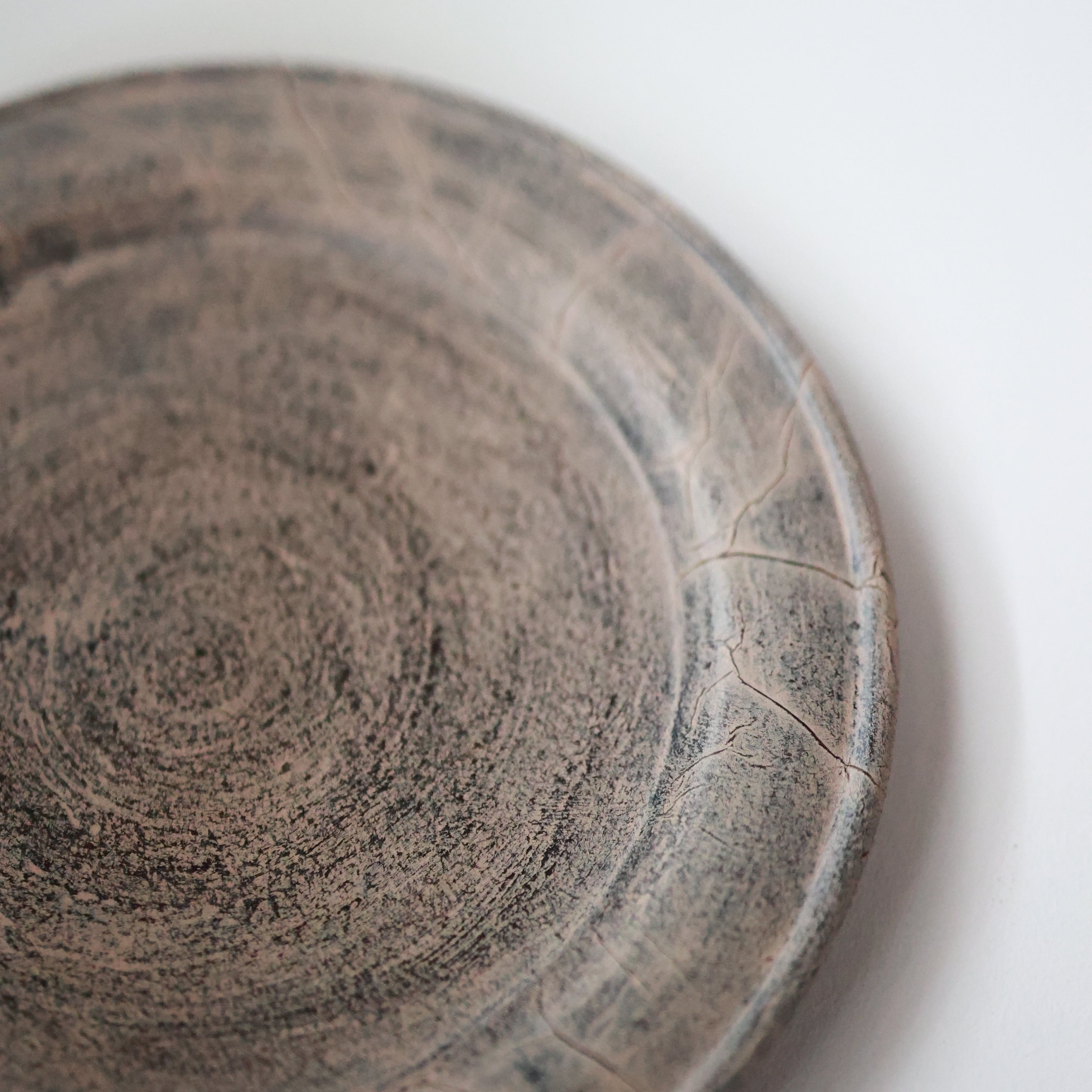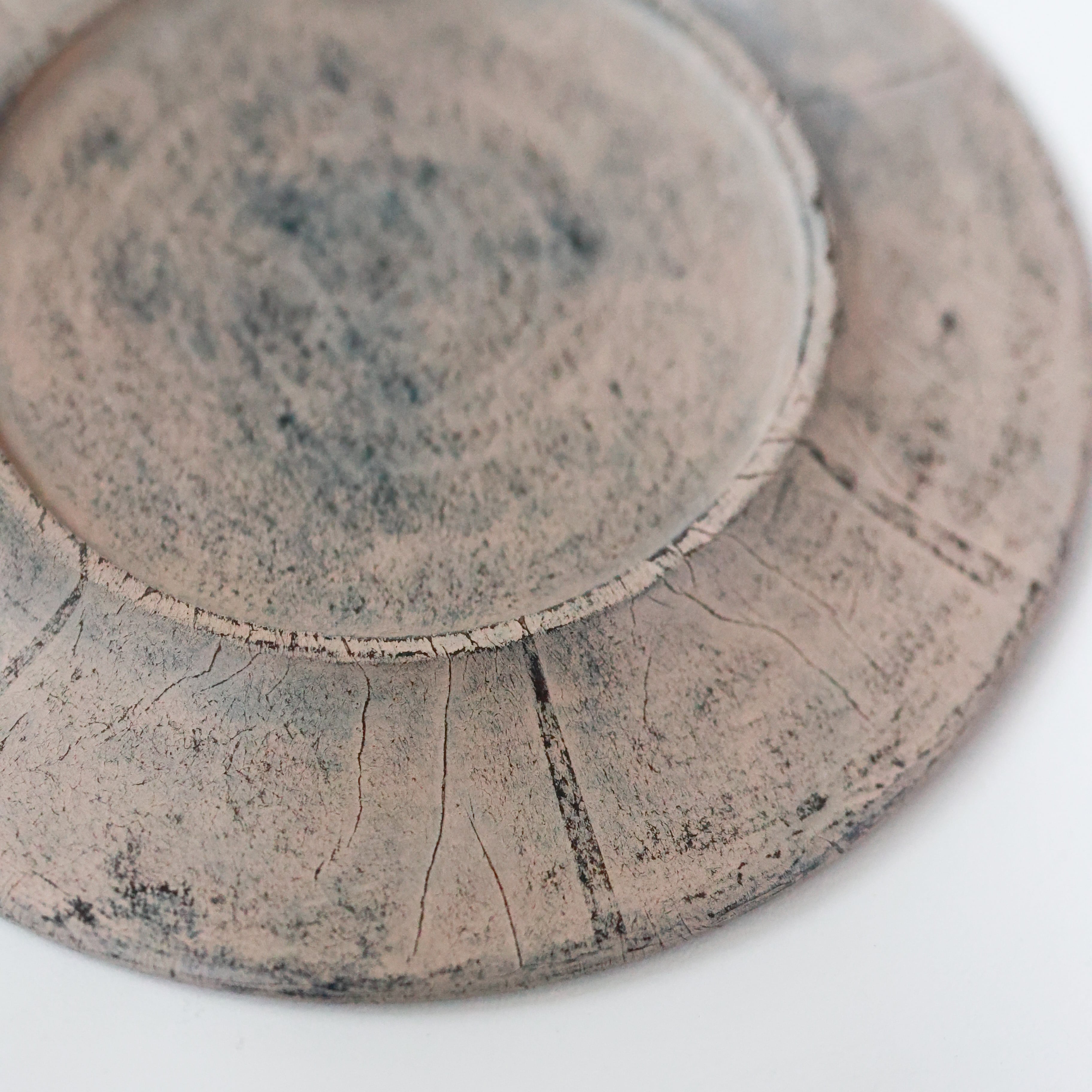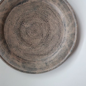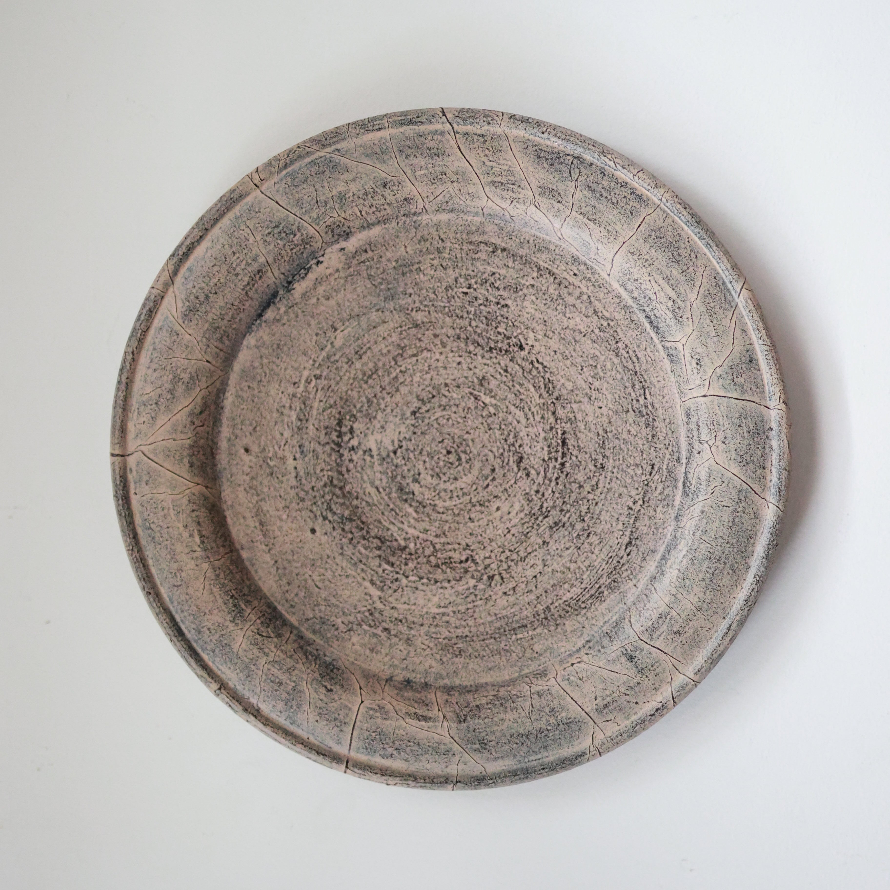 荒れた土肌のような表情を持つリム皿