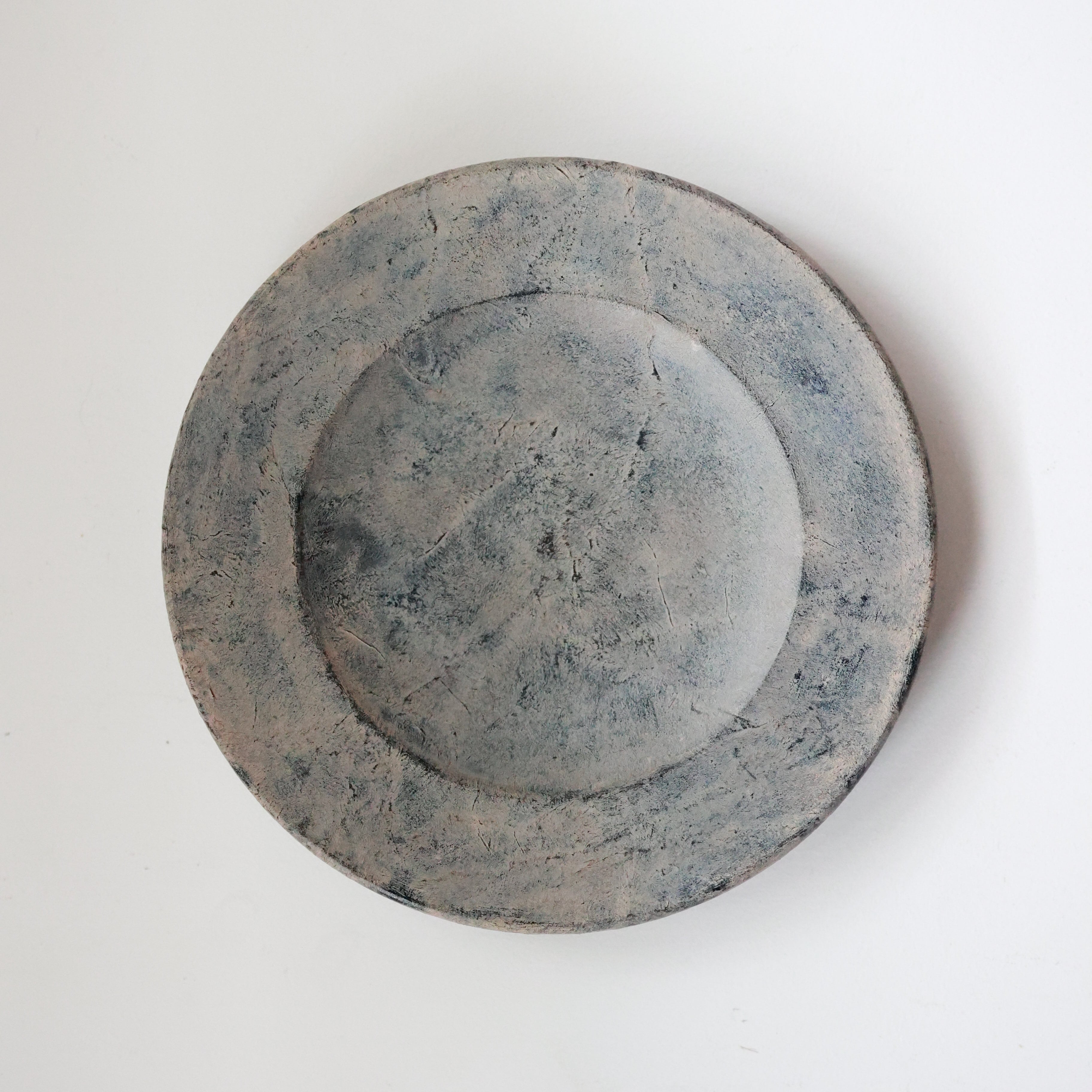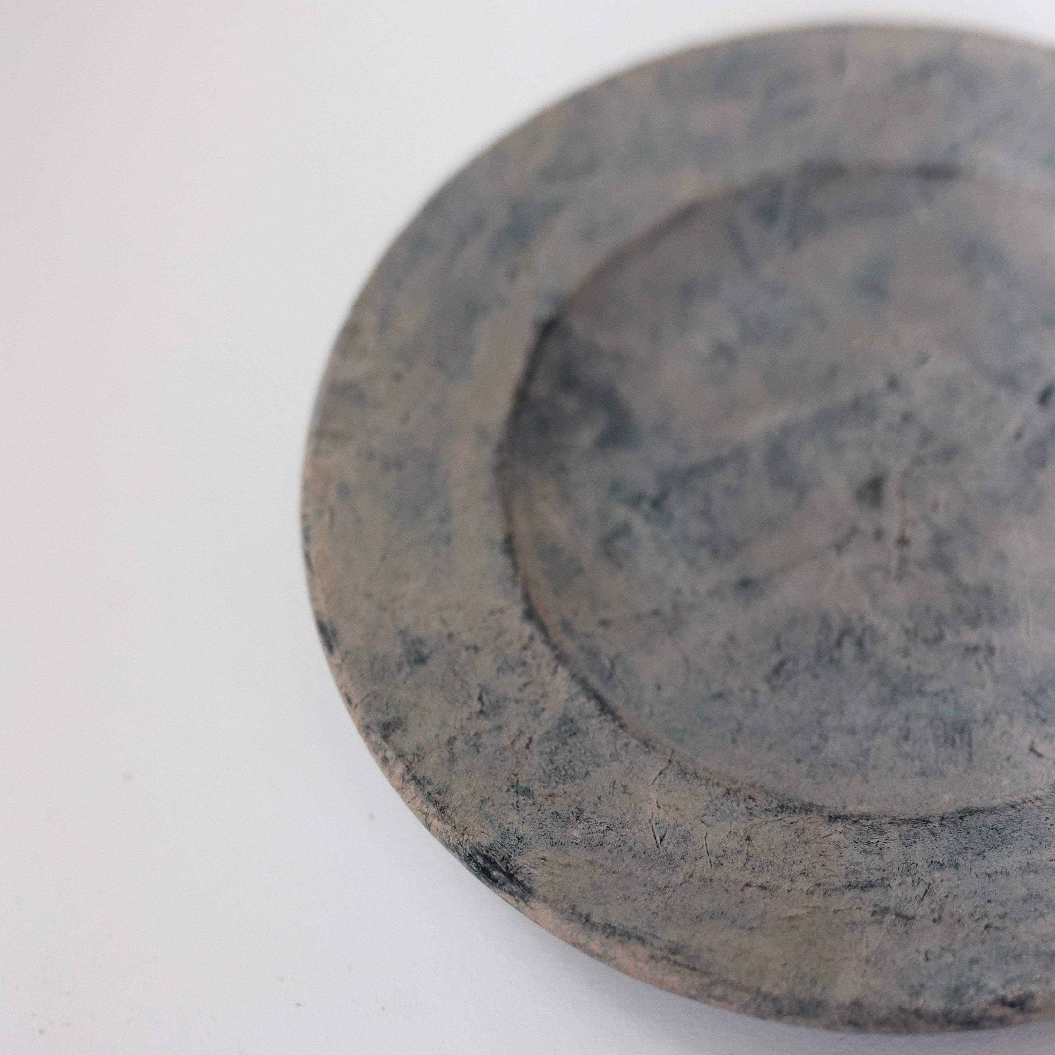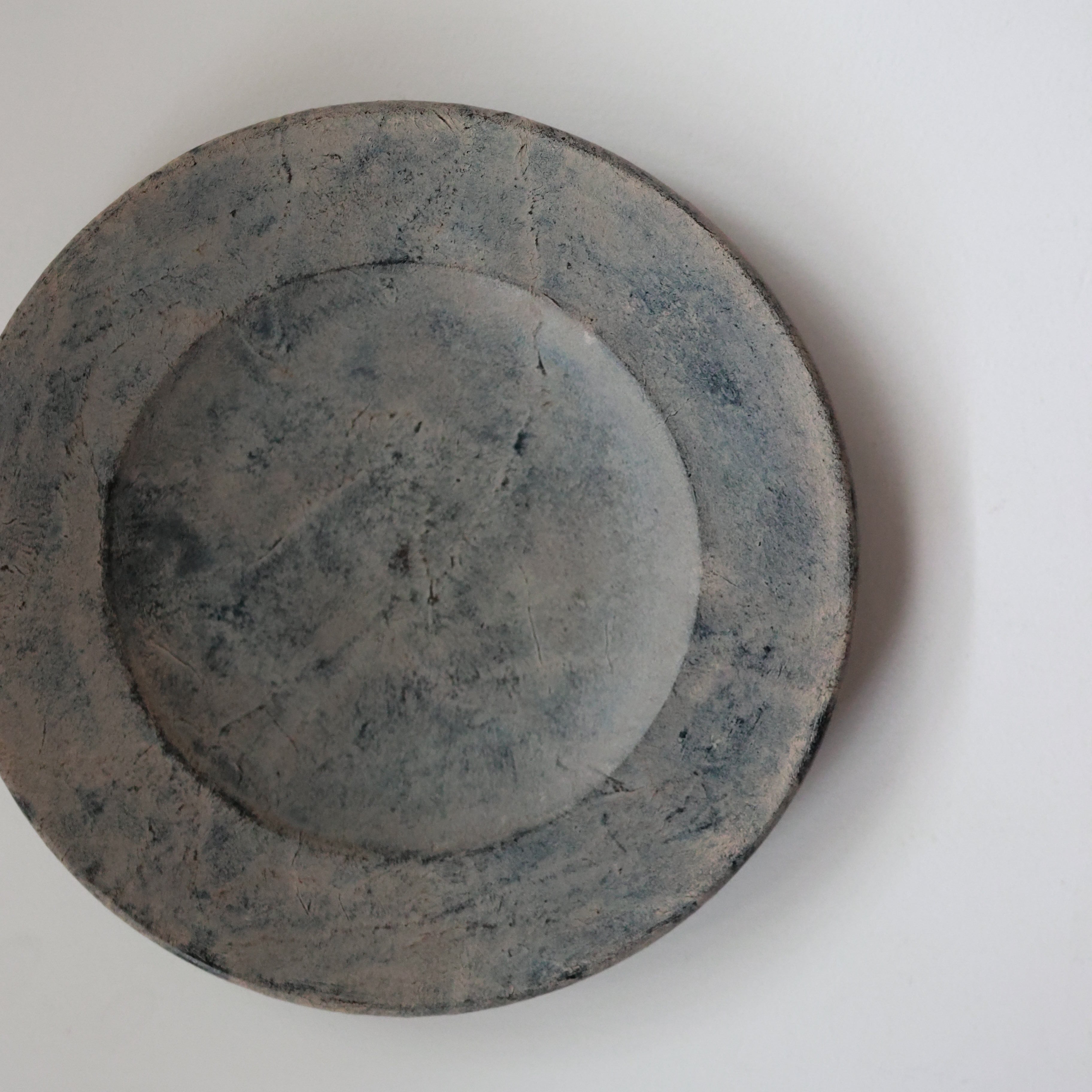荒れた土肌のような表情を持つリム皿