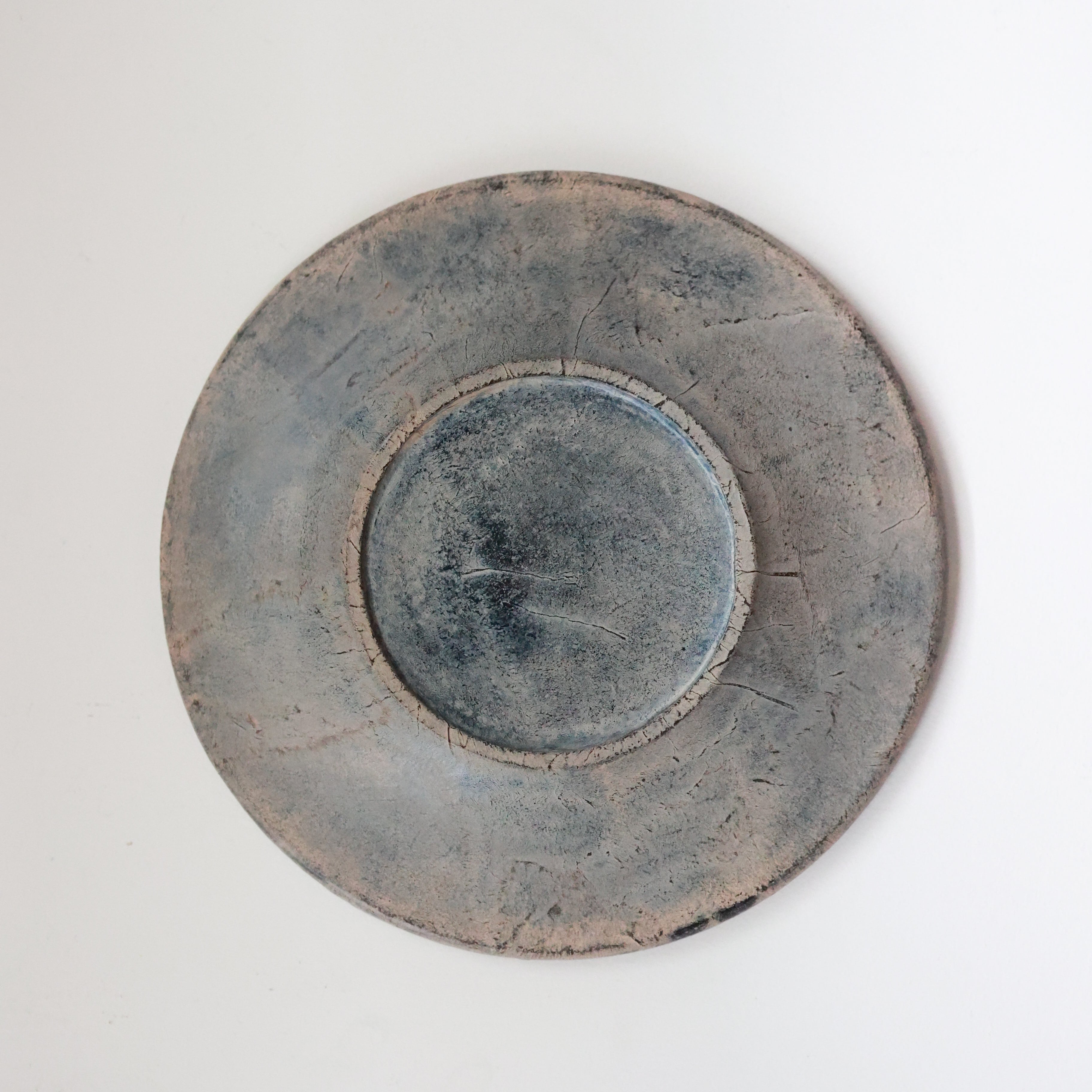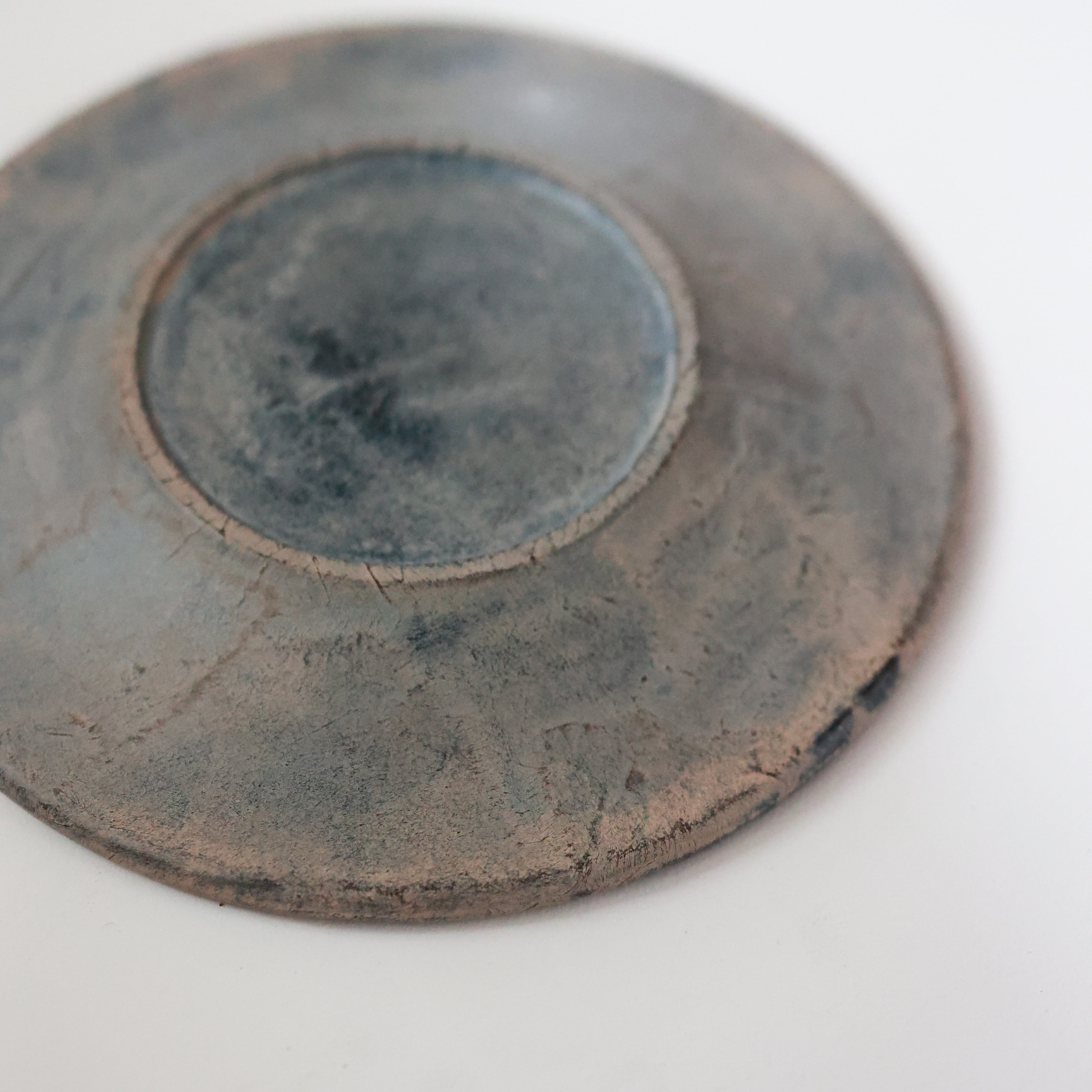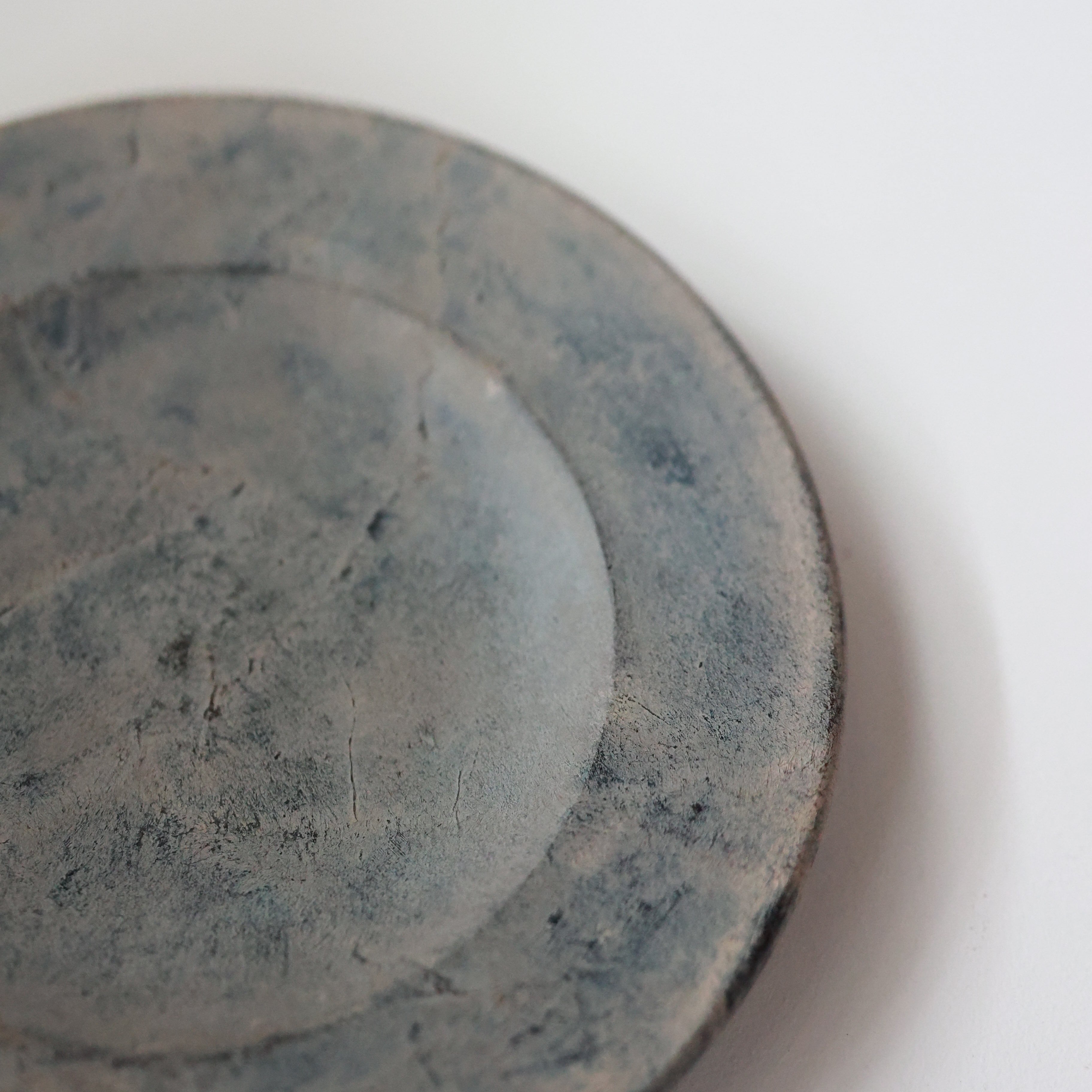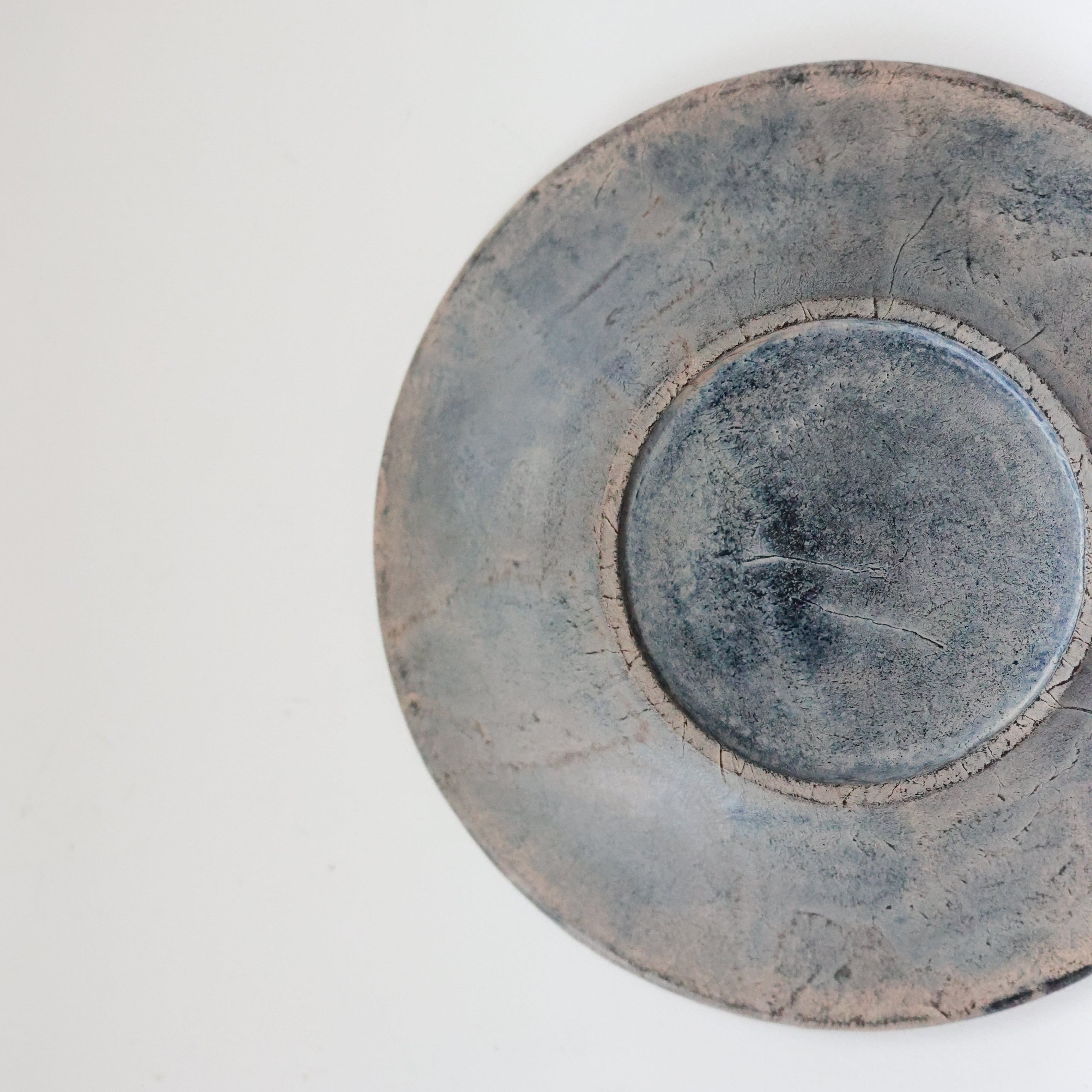 荒れた土肌のような表情を持つリム皿