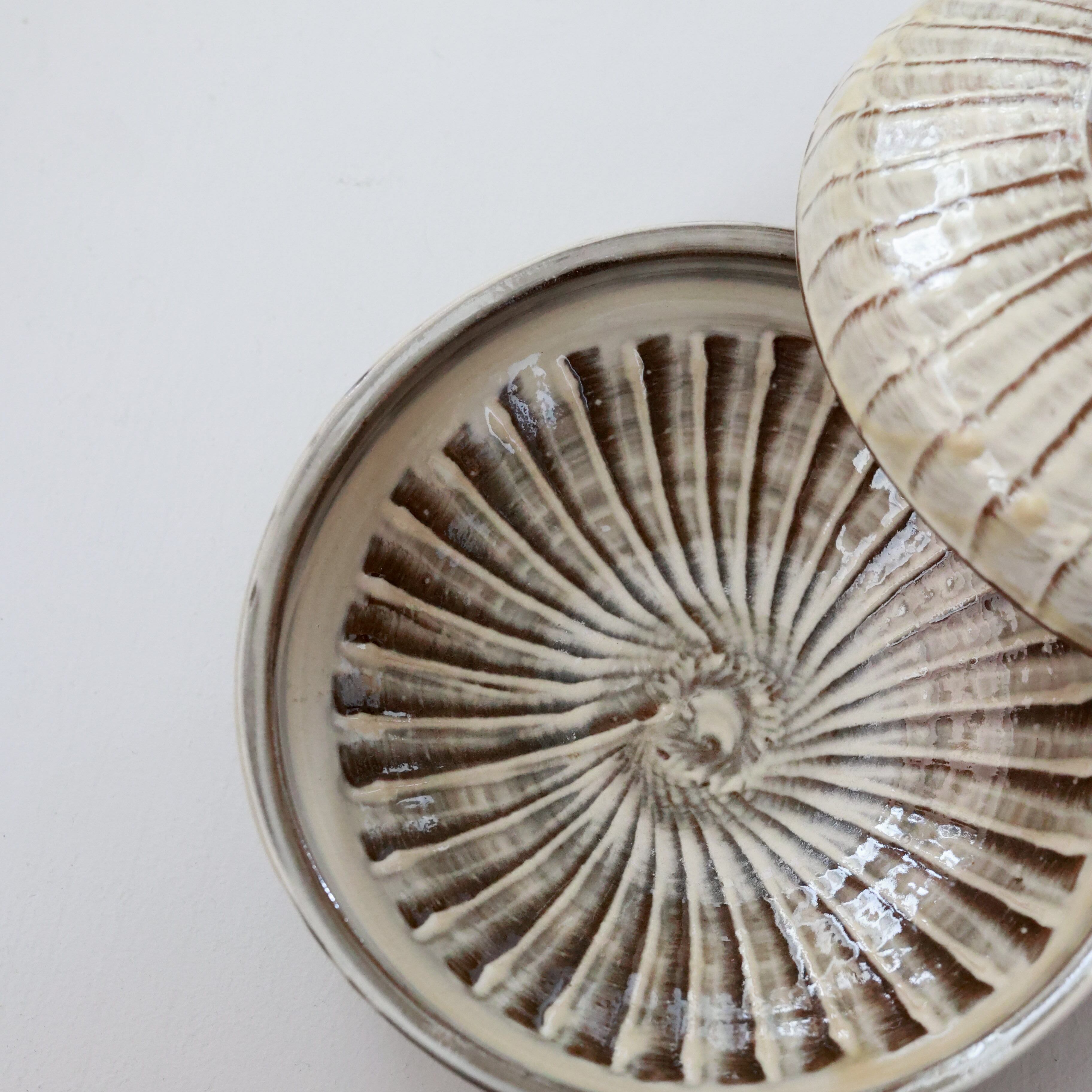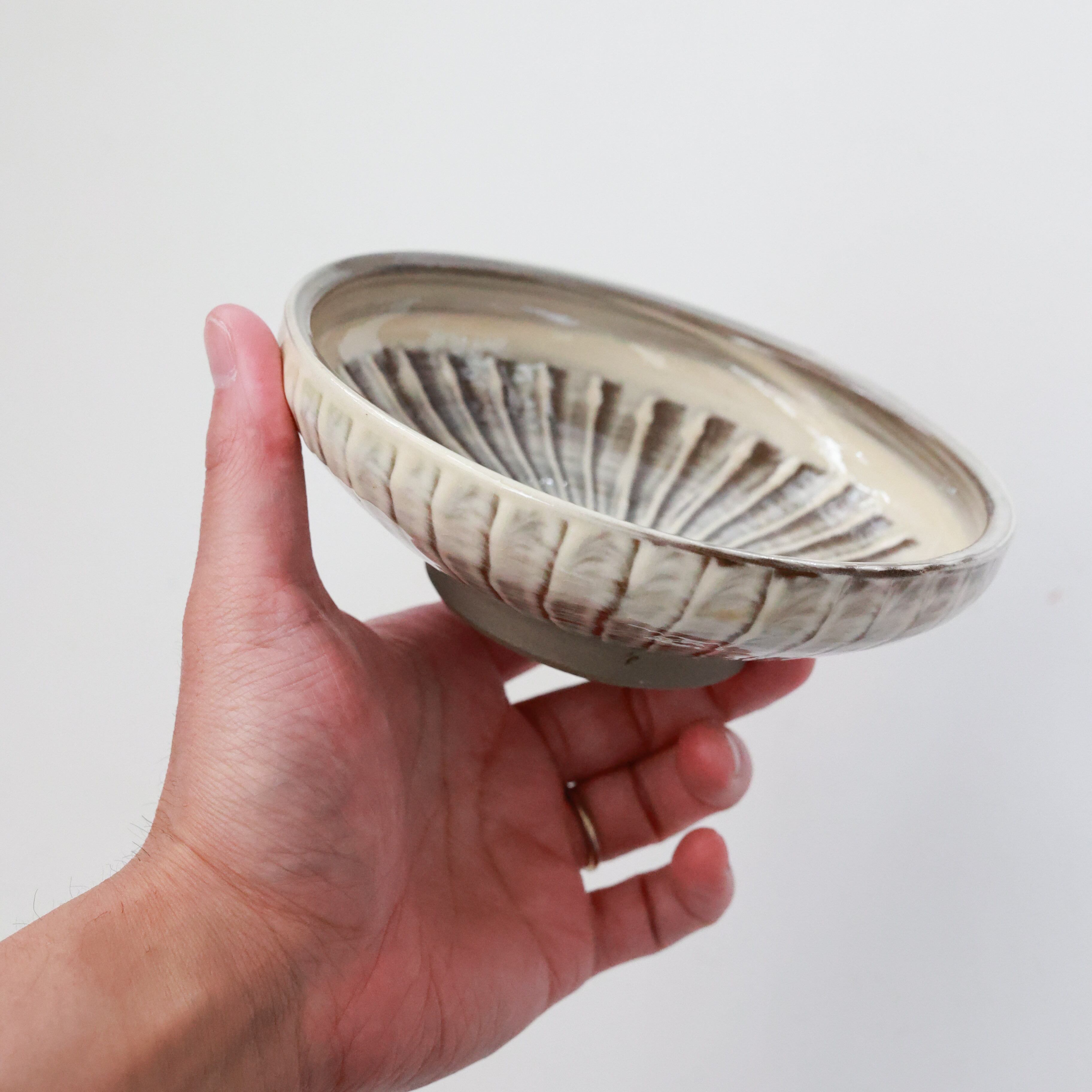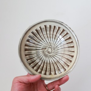 小鹿田焼 - 5寸切り立ち皿 刷毛目 / 白 (made in Japan)