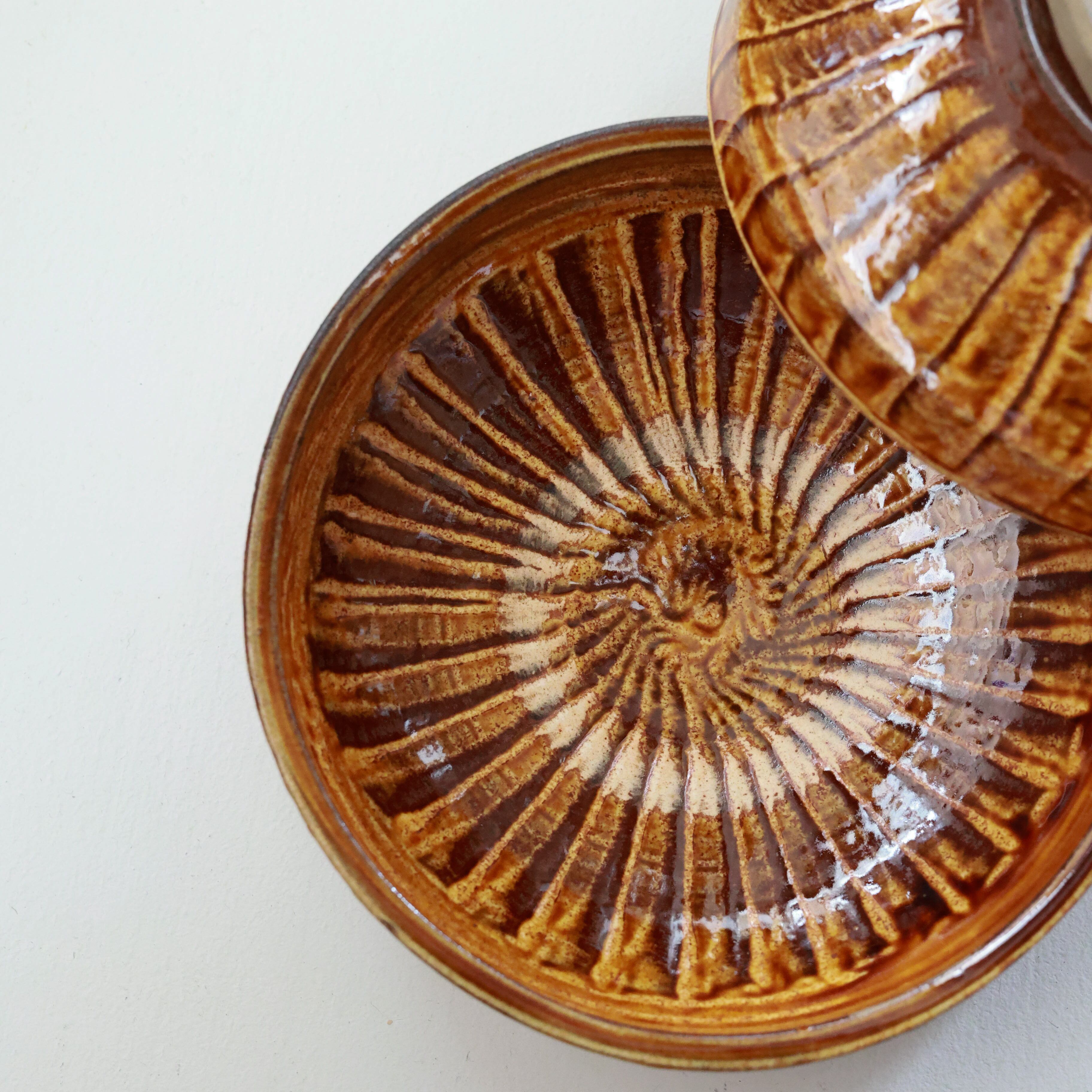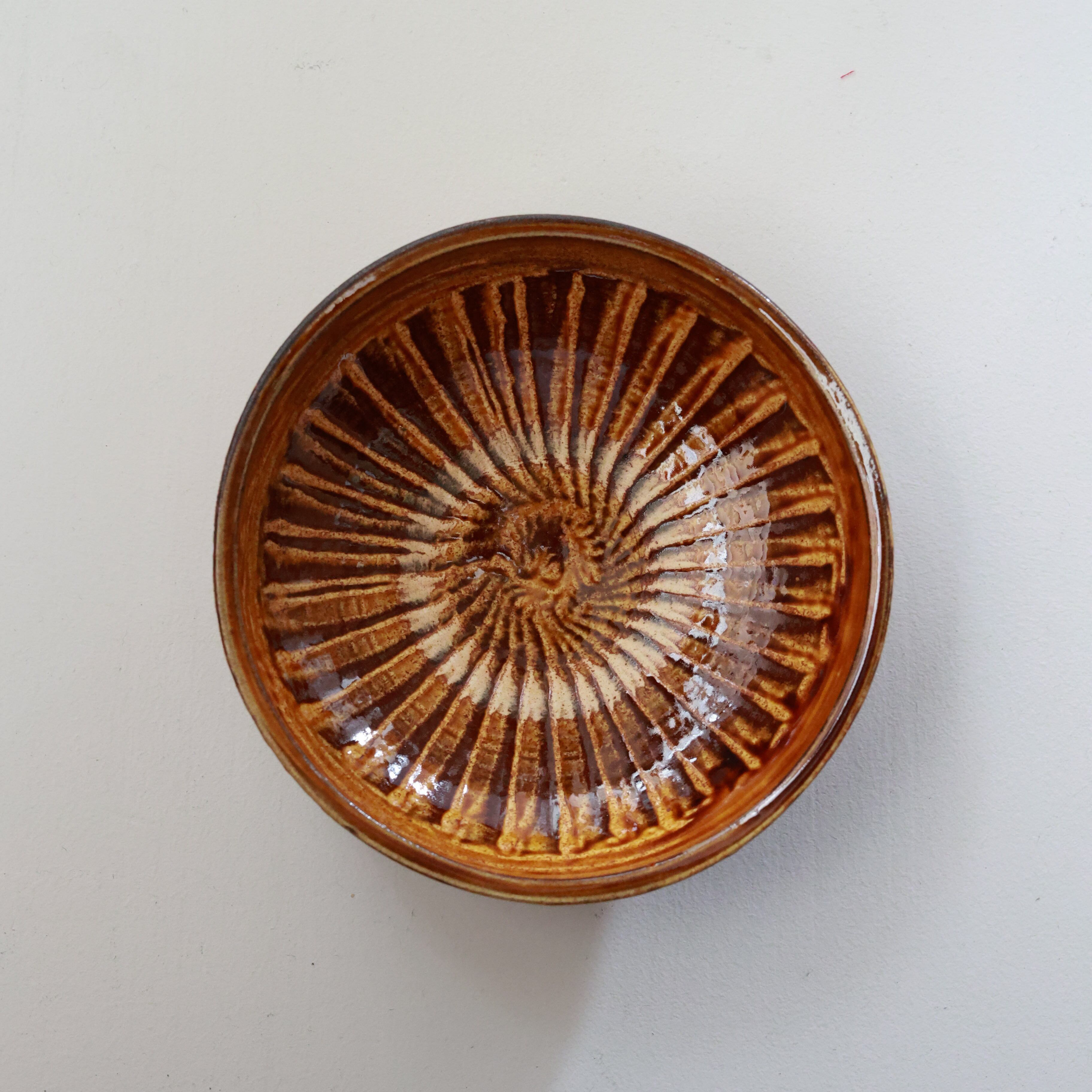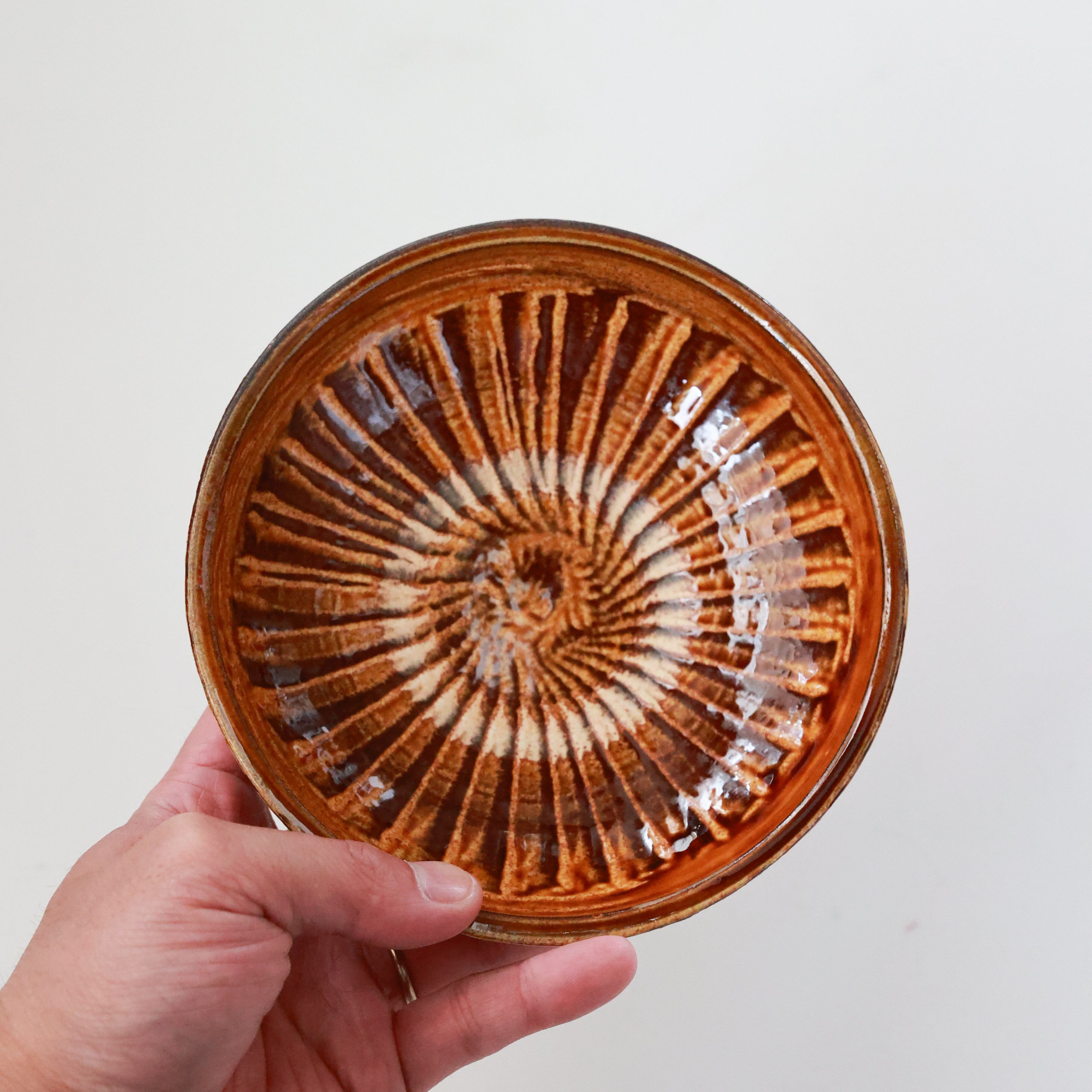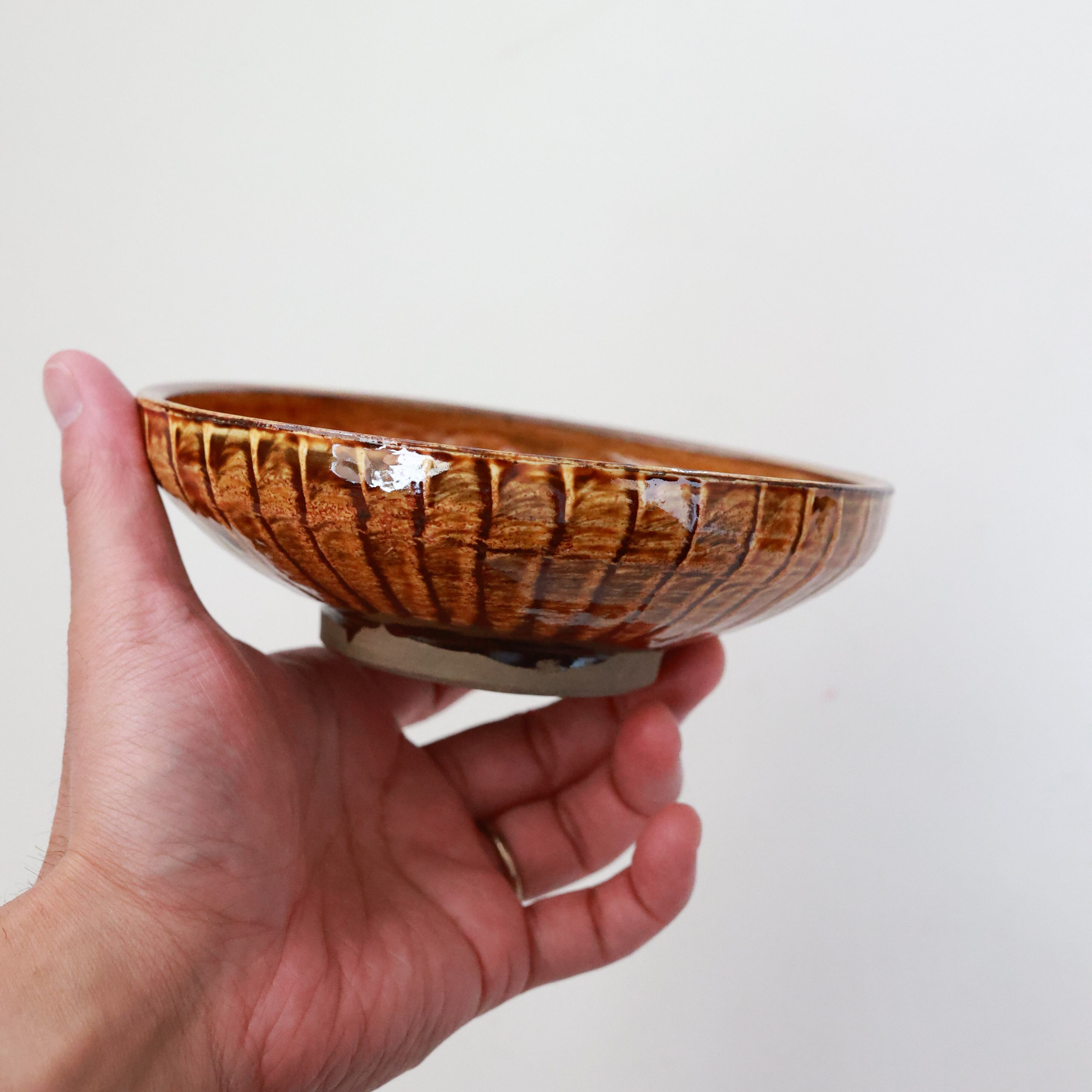 小鹿田焼 - 5寸切り立ち皿 刷毛目 / 飴 (made in Japan)