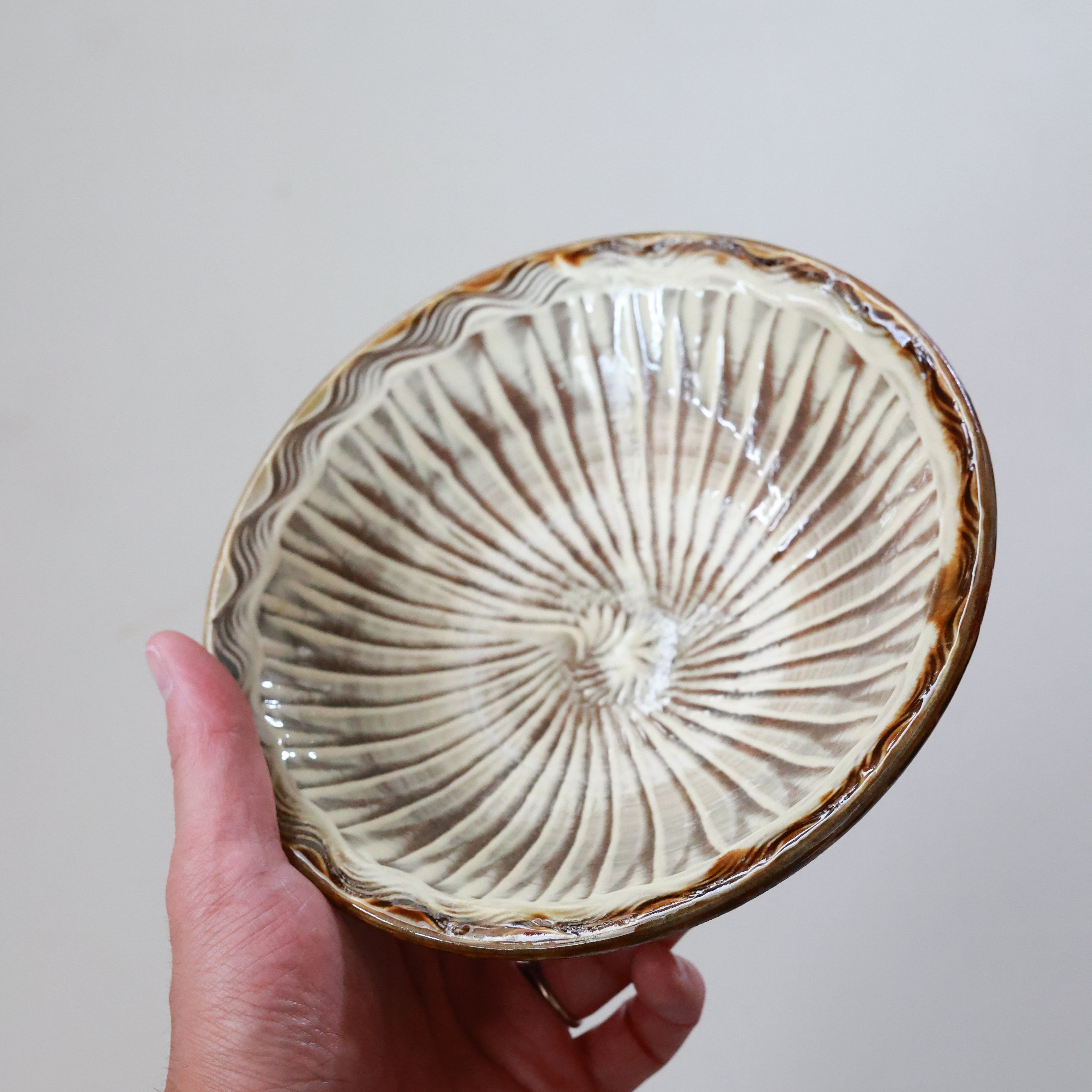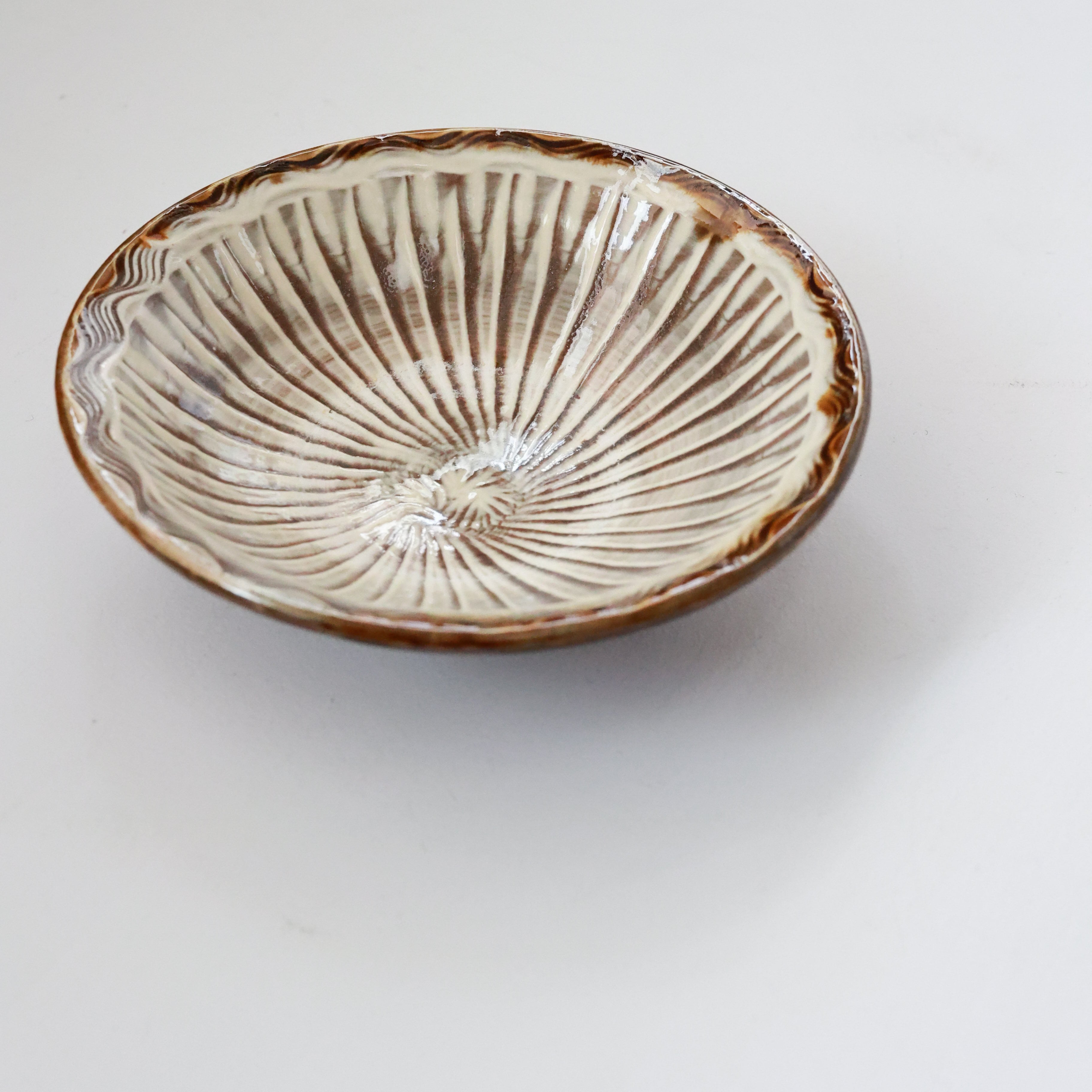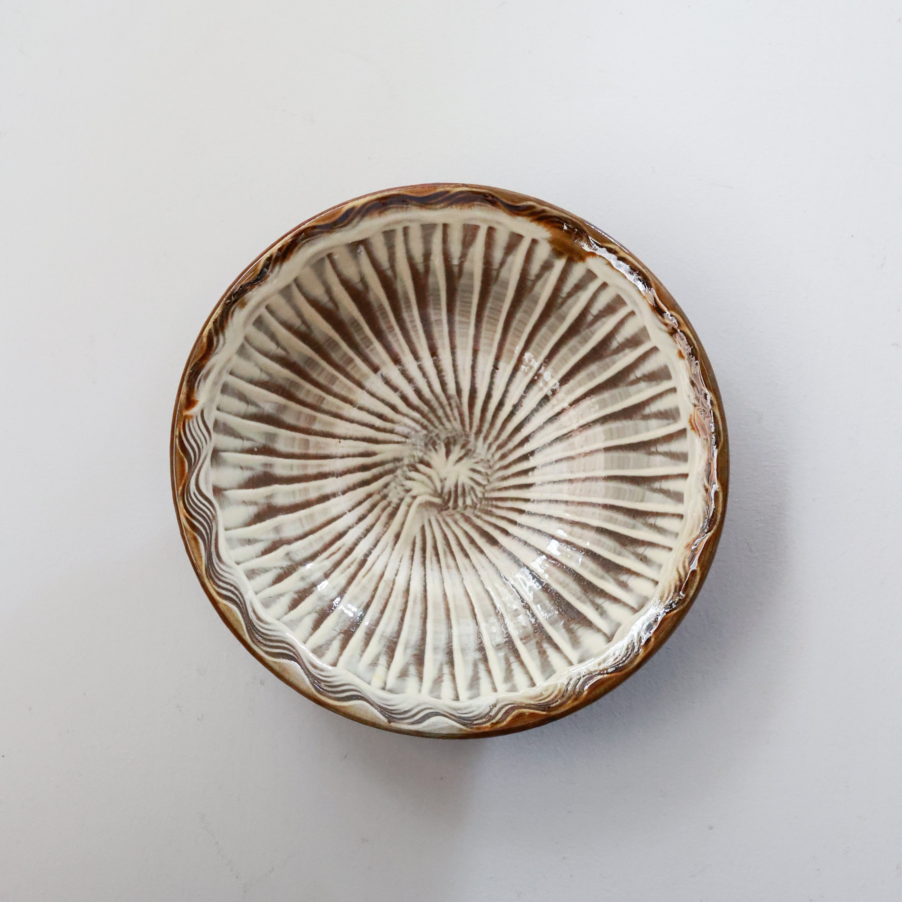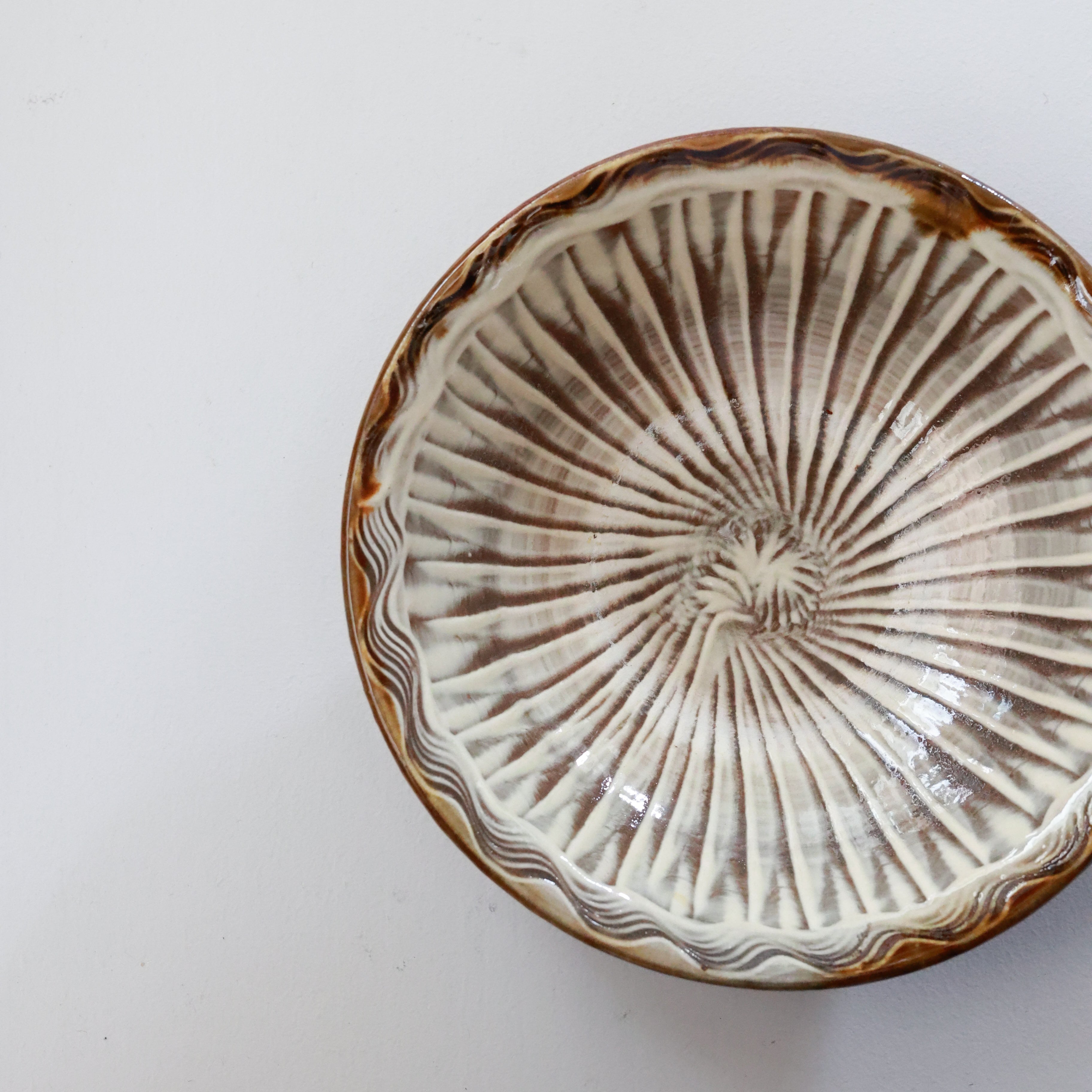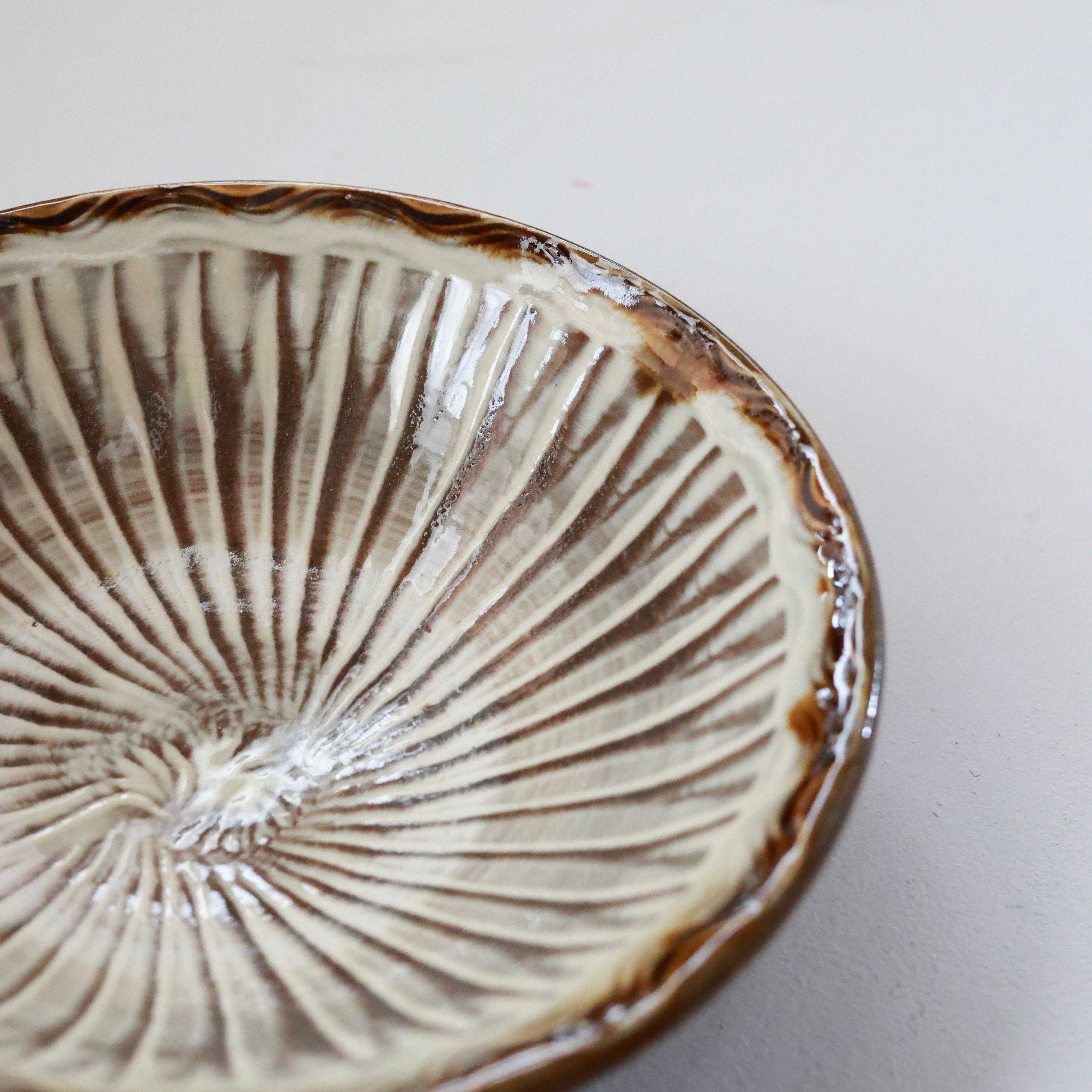 小鹿田焼 - 6寸深皿 櫛描き×刷毛目 / 白 (made in Japan)