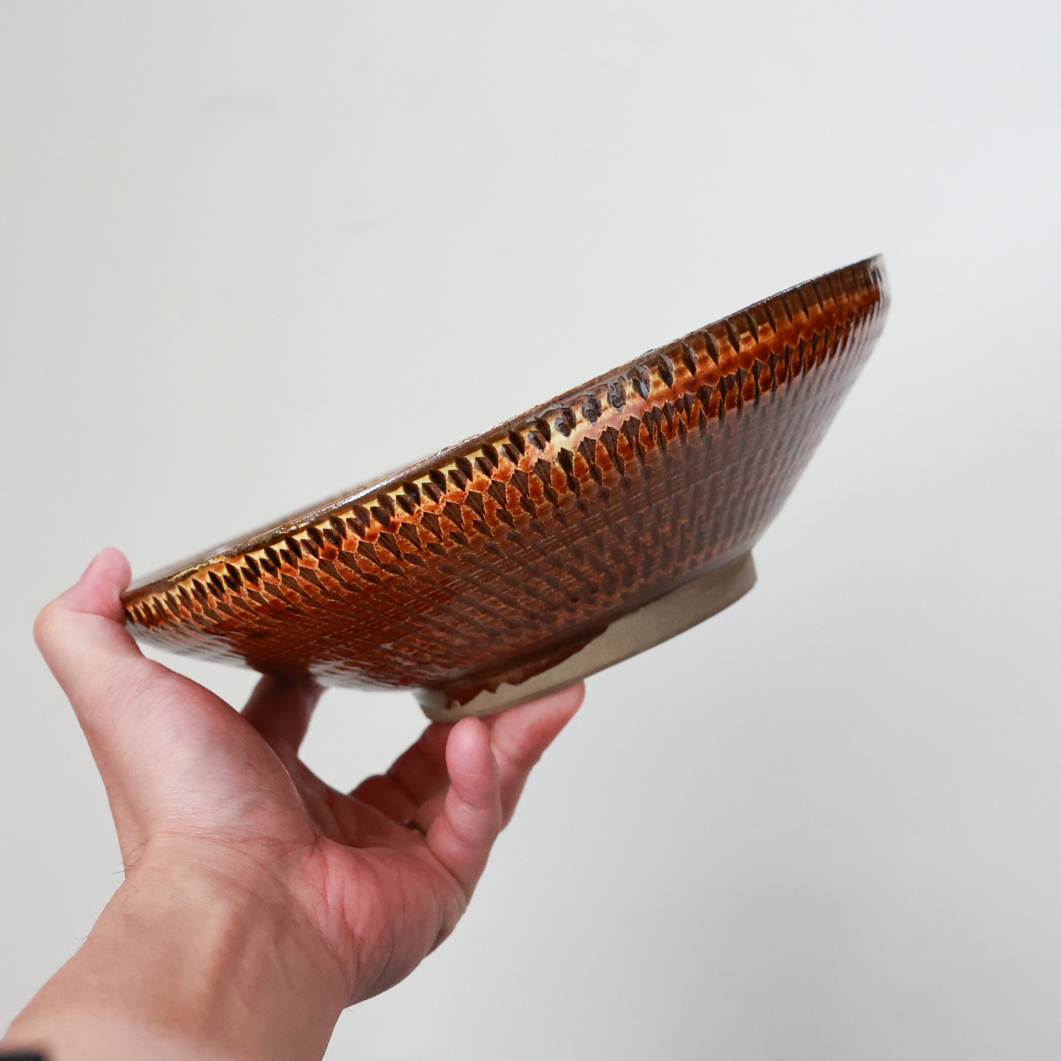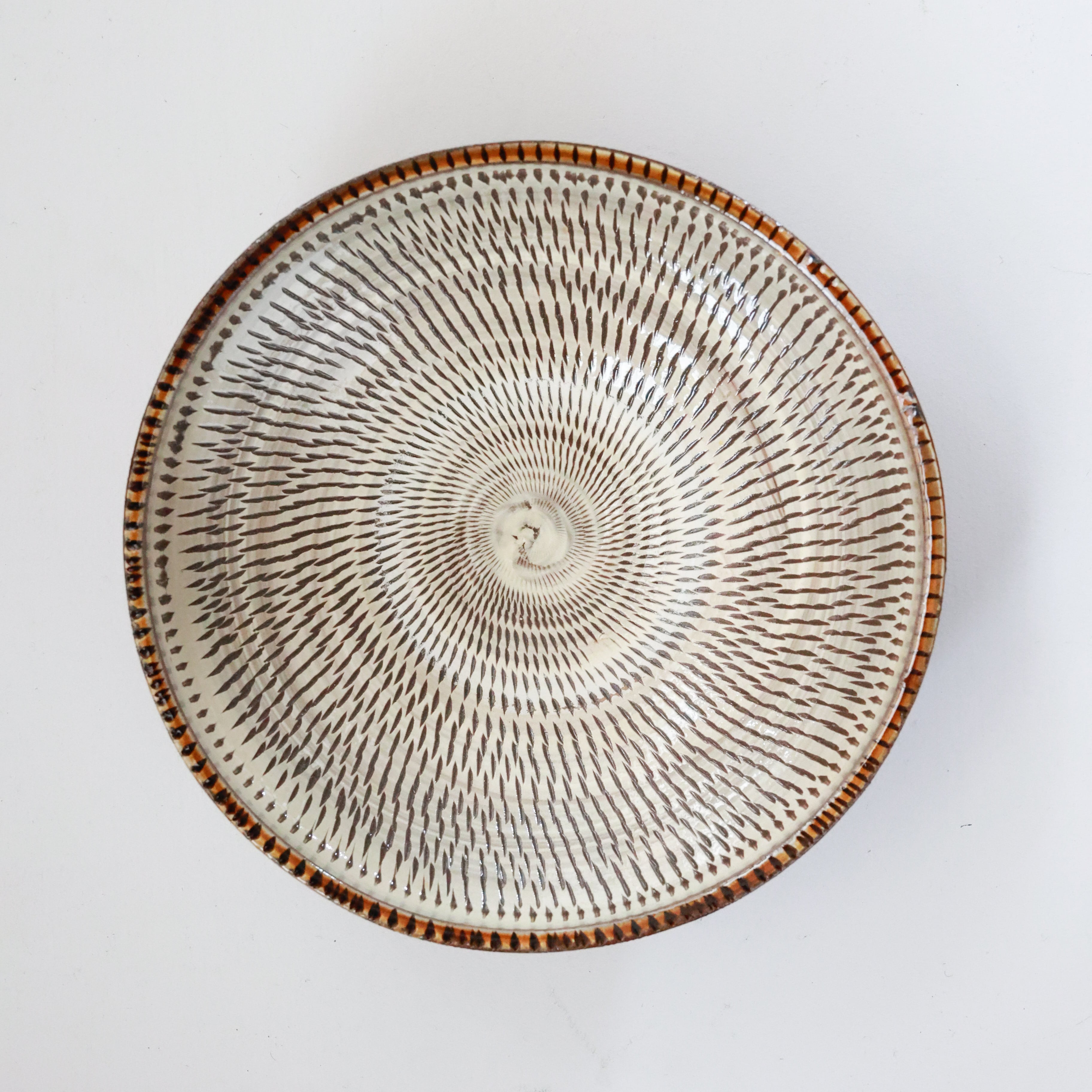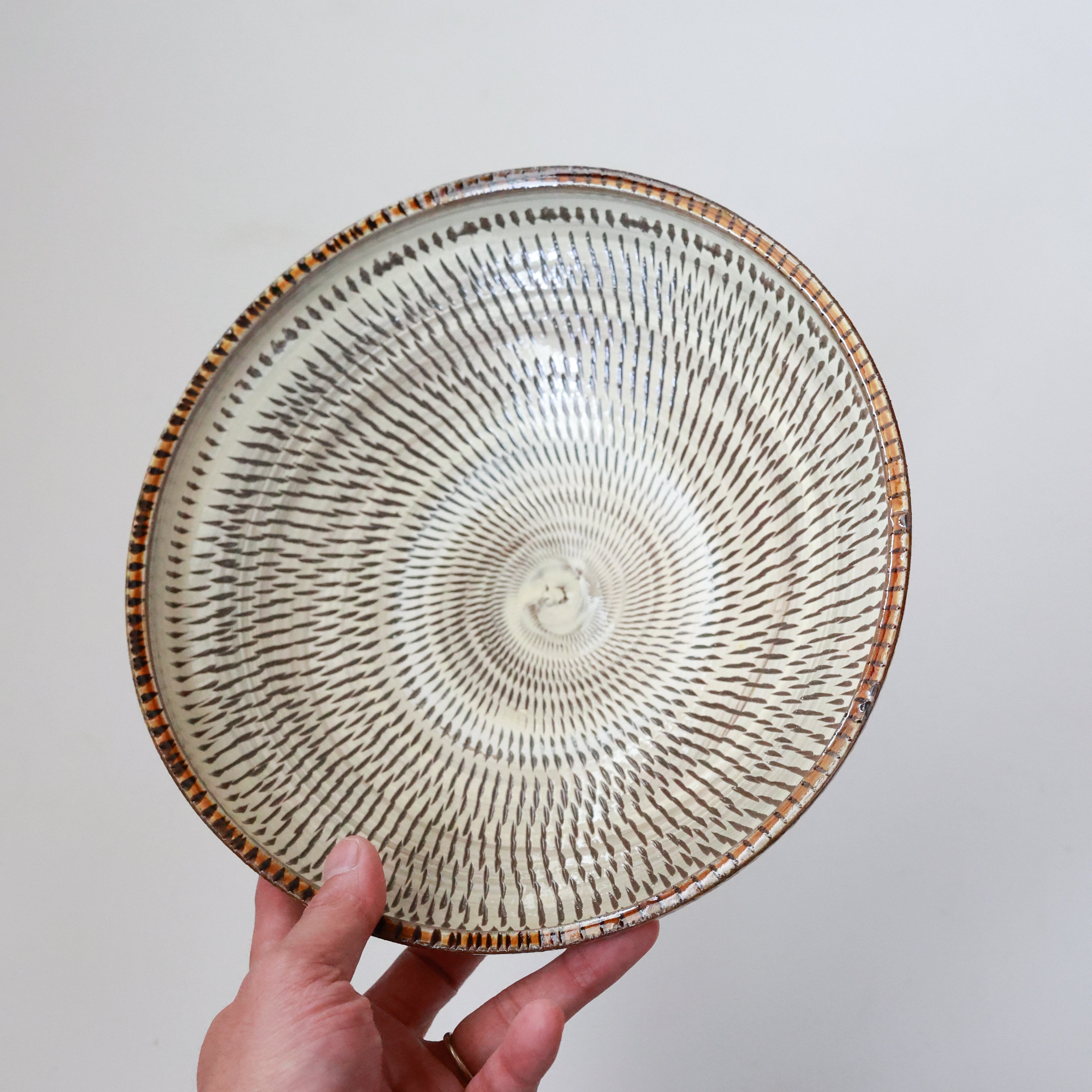 小鹿田焼 - 8寸切り立ち皿 飛び鉋 / 白 (made in Japan)
