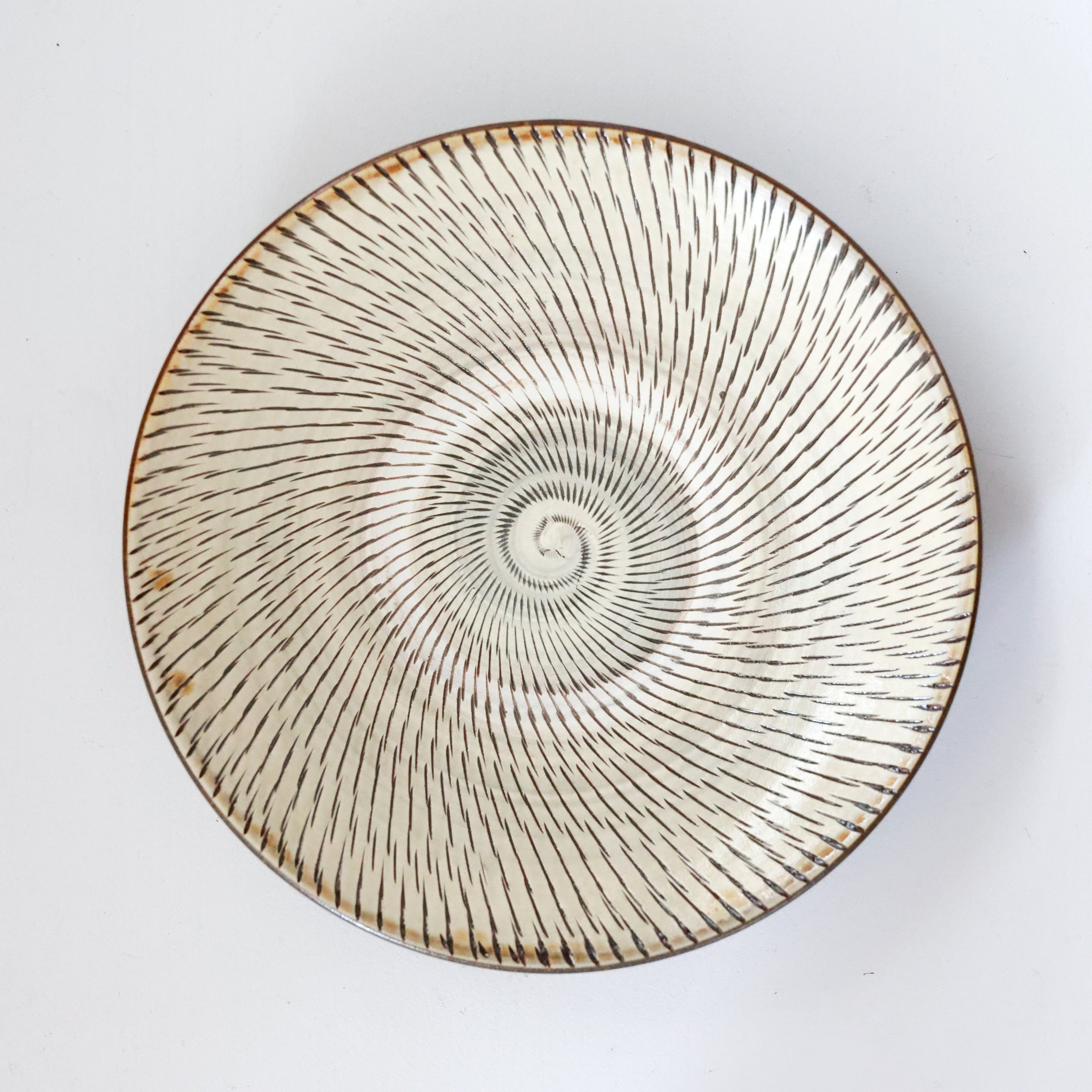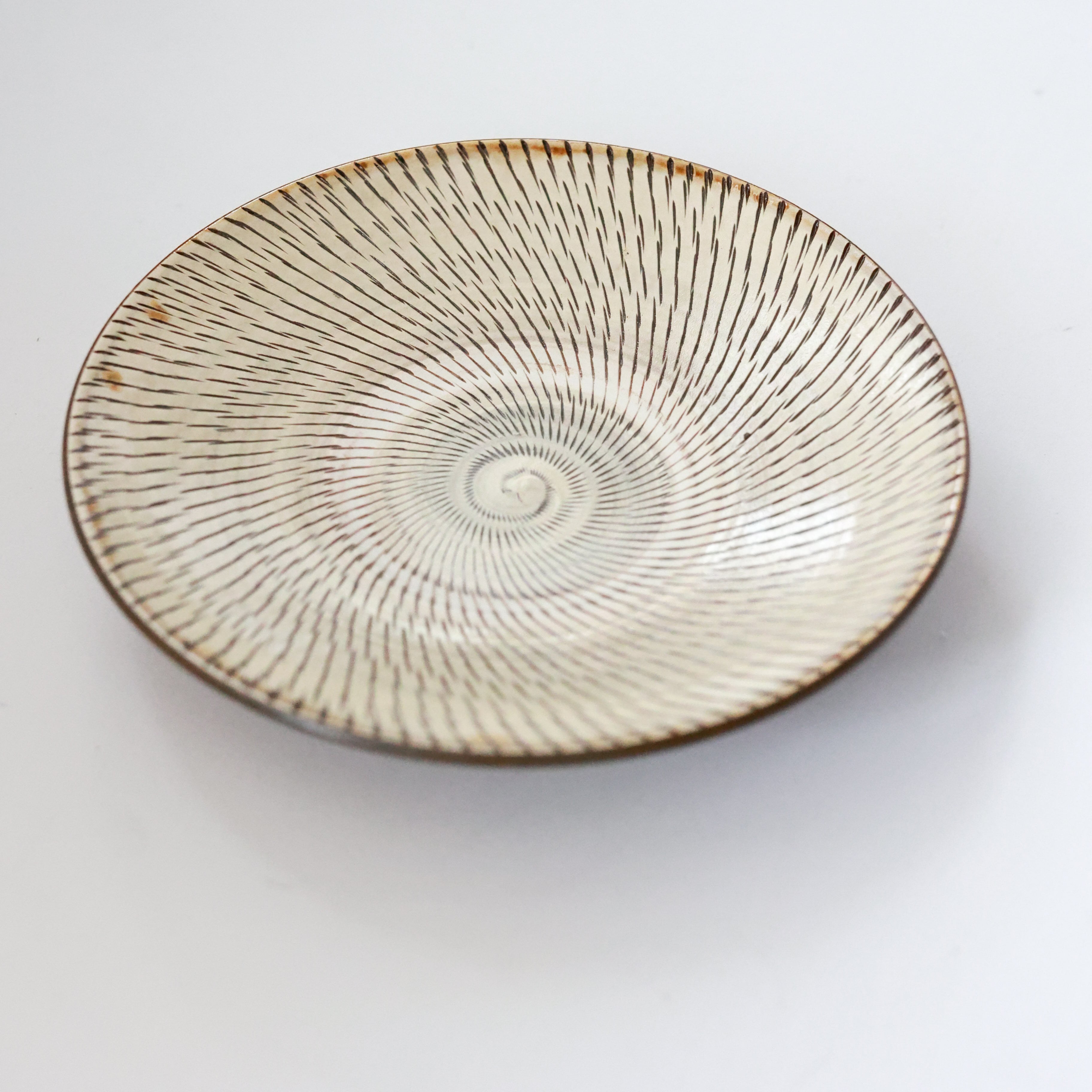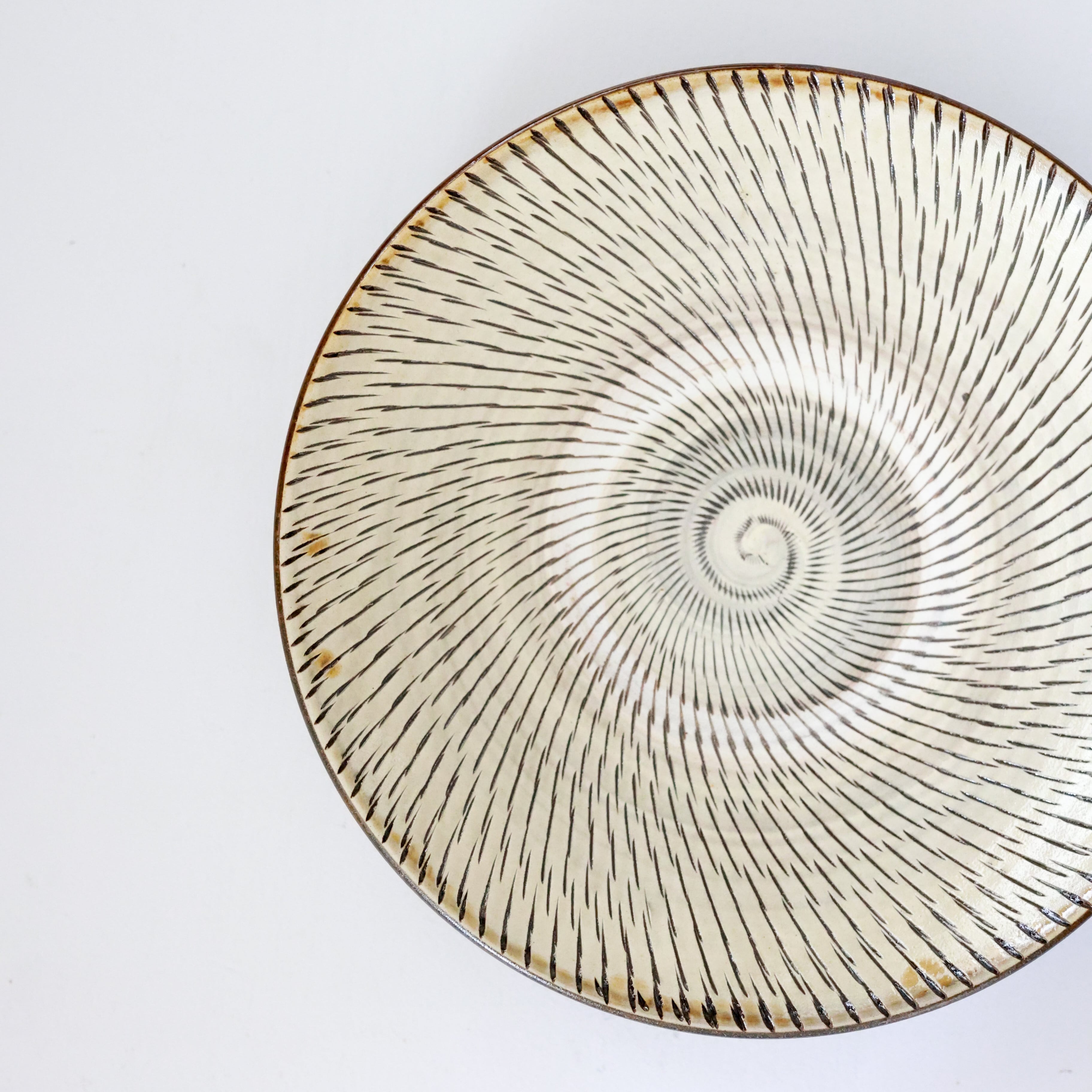 小鹿田焼 - 9寸皿 飛び鉋 / 白 (made in Japan)