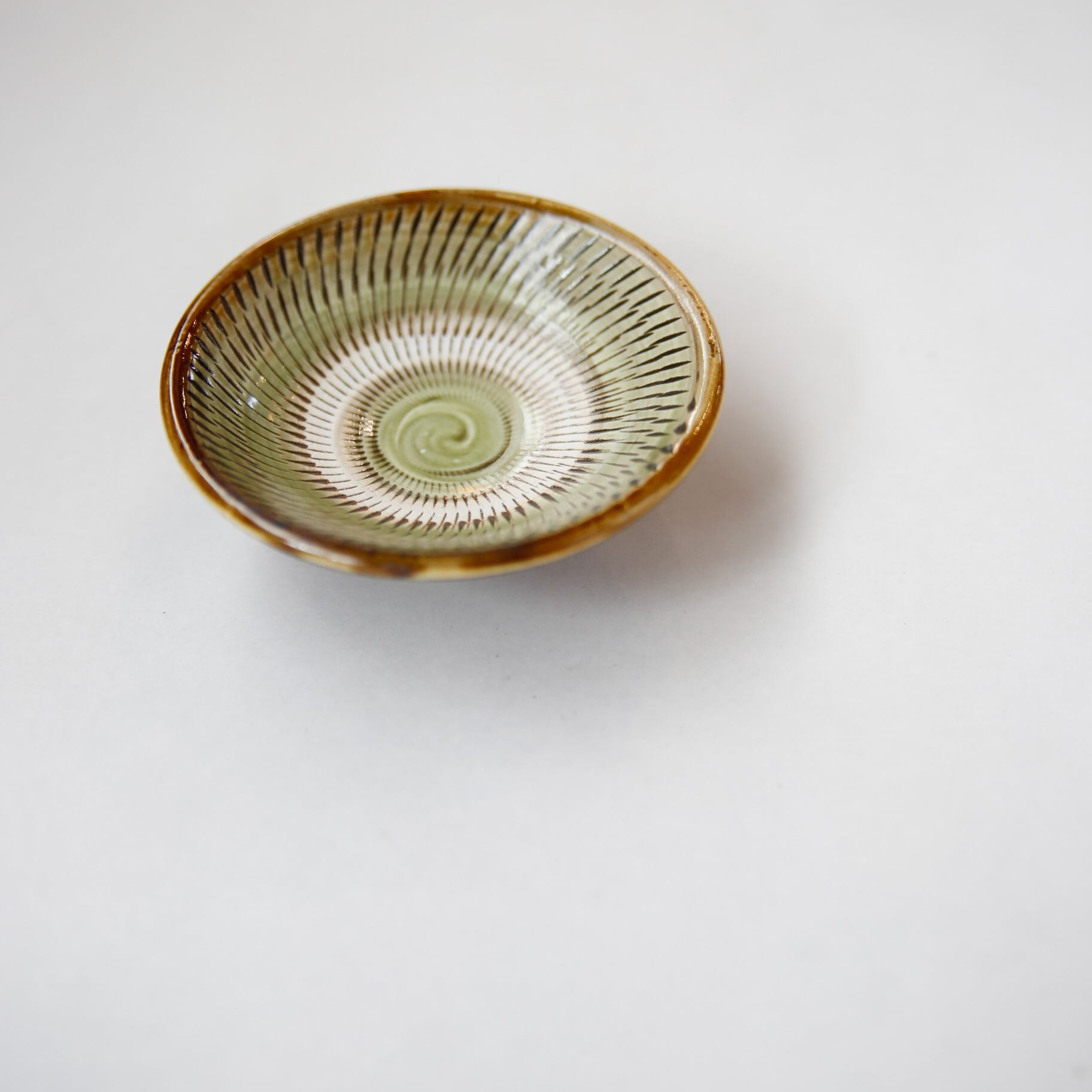 小鹿田焼 - 3寸皿 飛び鉋 / 緑 (made in Japan)