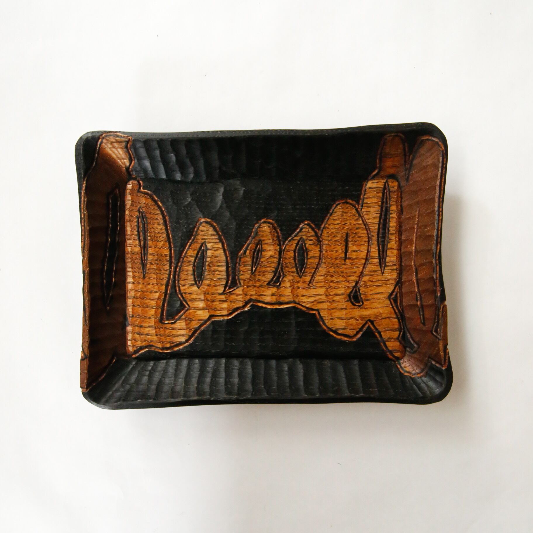 山梨県にて一枚の板から形を彫り出し
