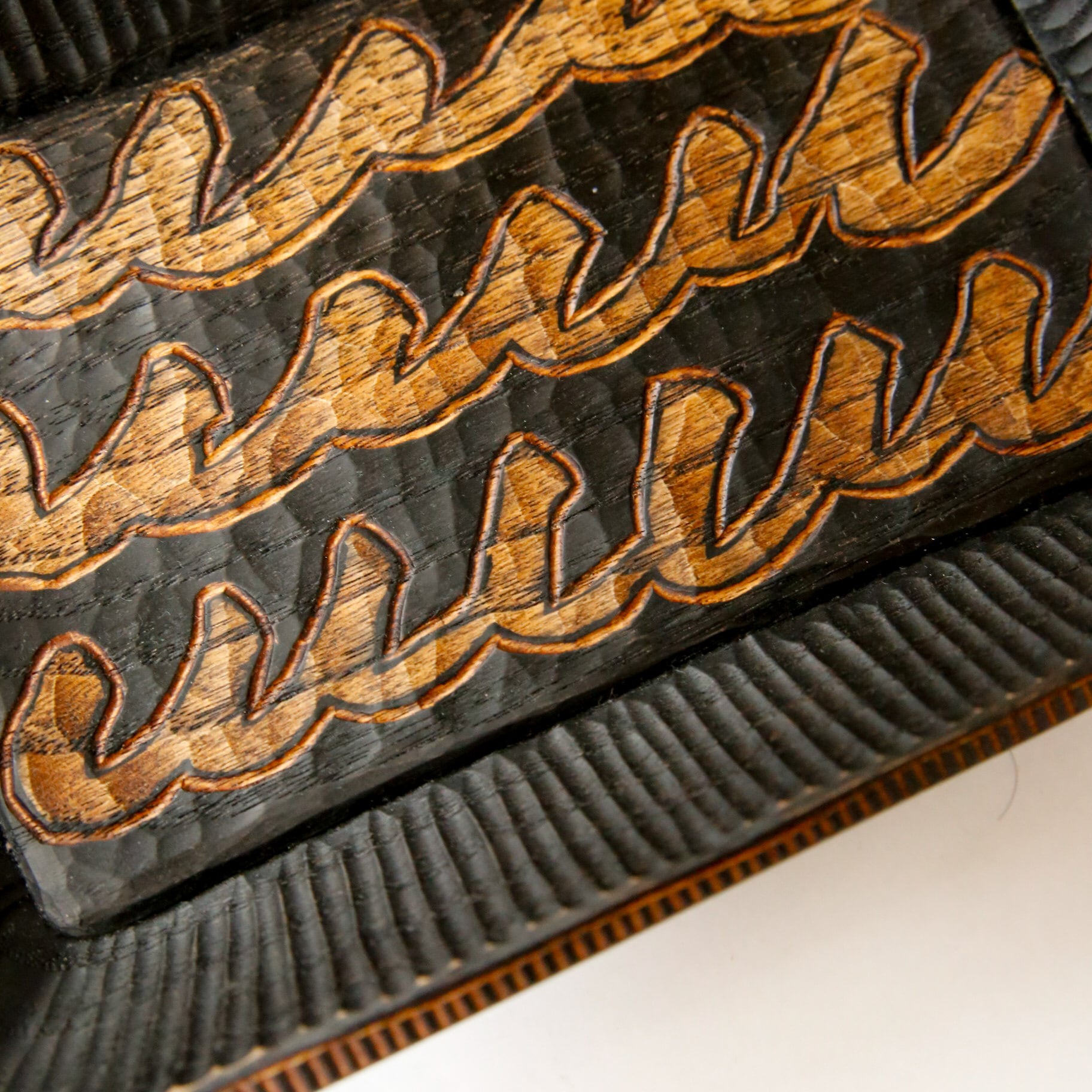 形を掘り出し蜜蝋にて柄を描き
