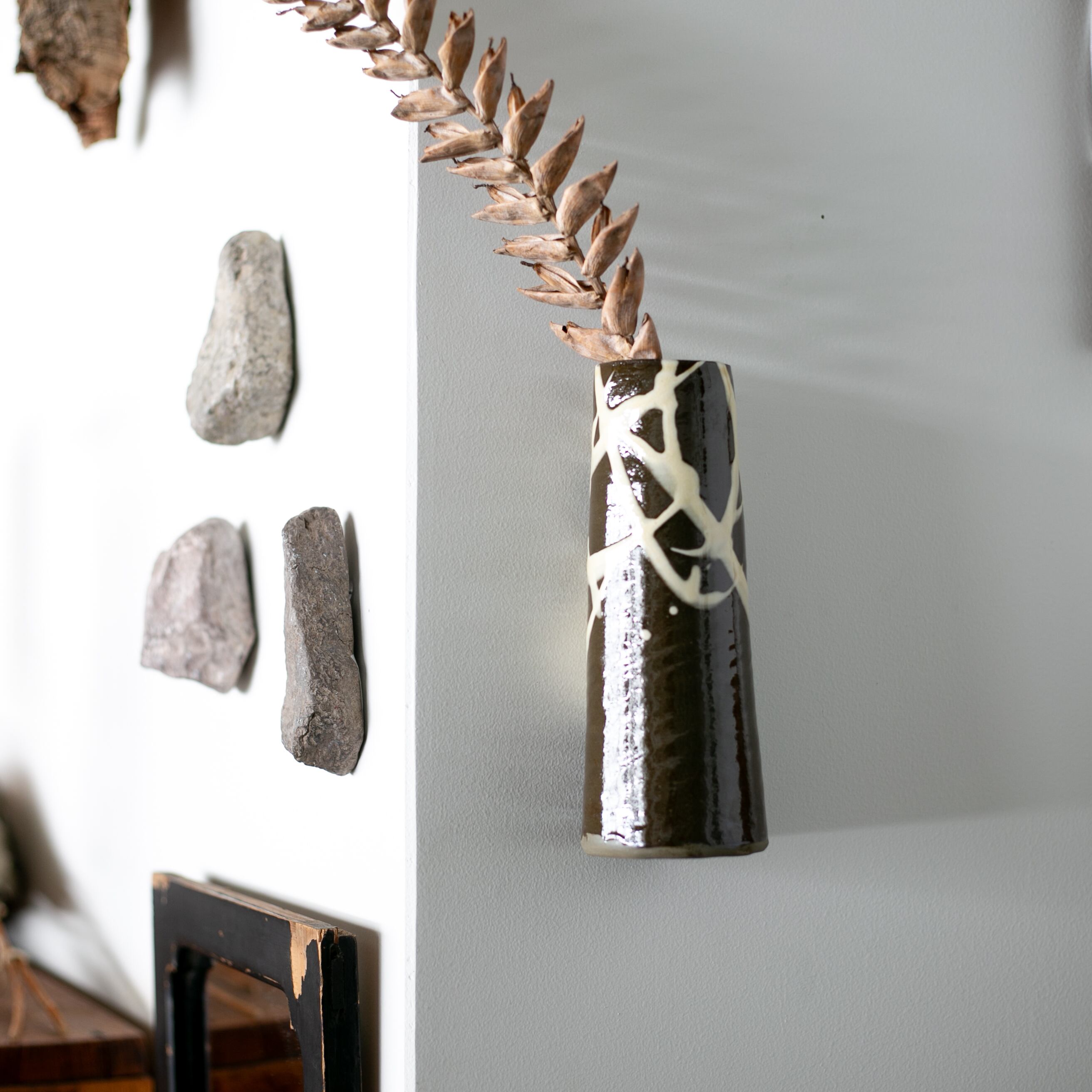 小鹿田焼 - 壁掛け花入れ / 打ち掛け - 白 (made in Japan)